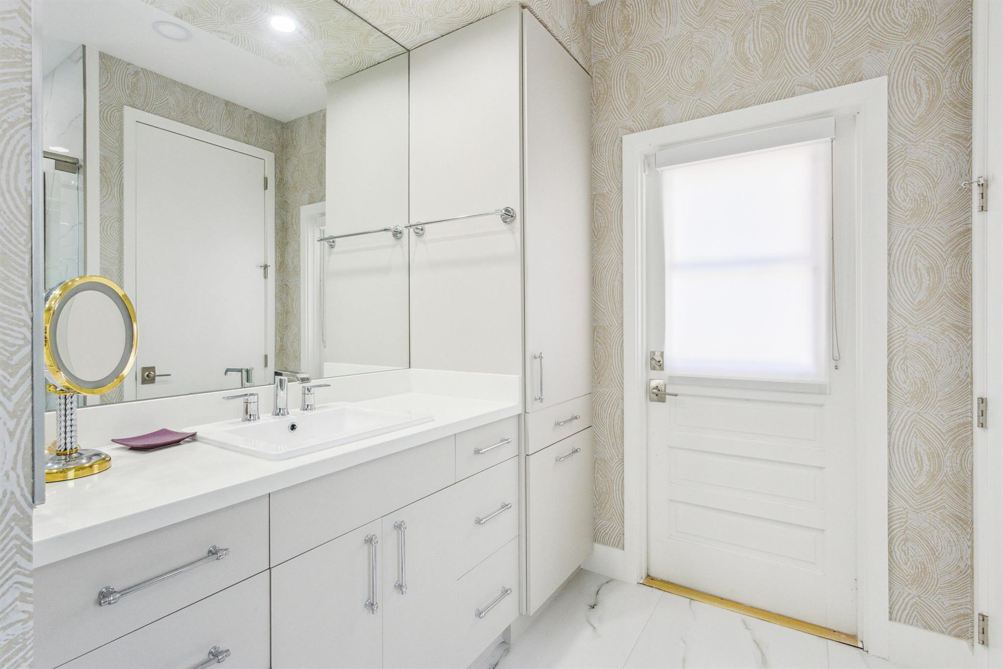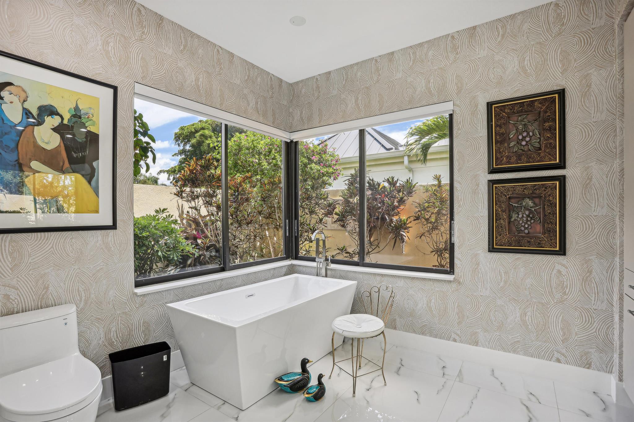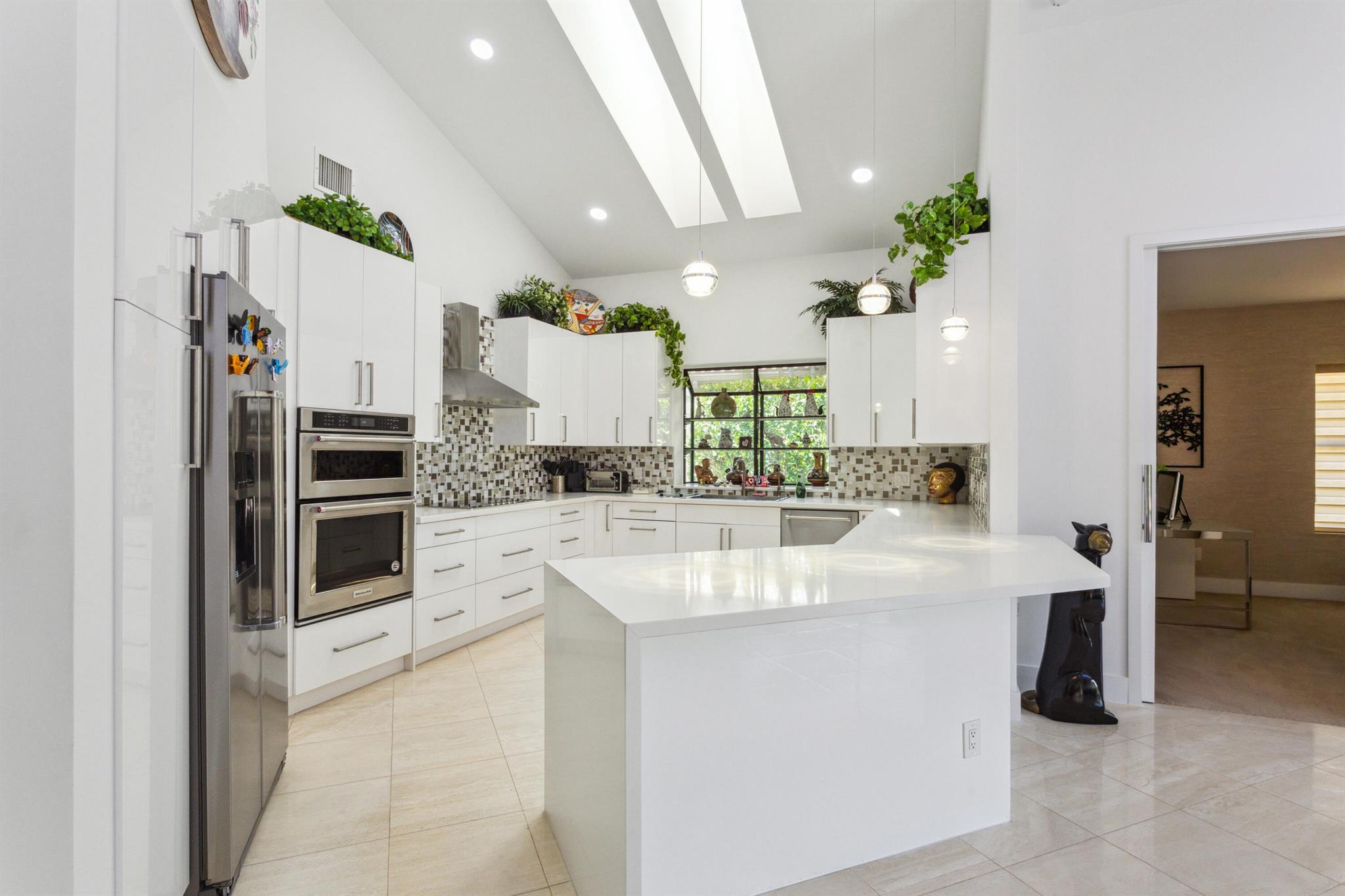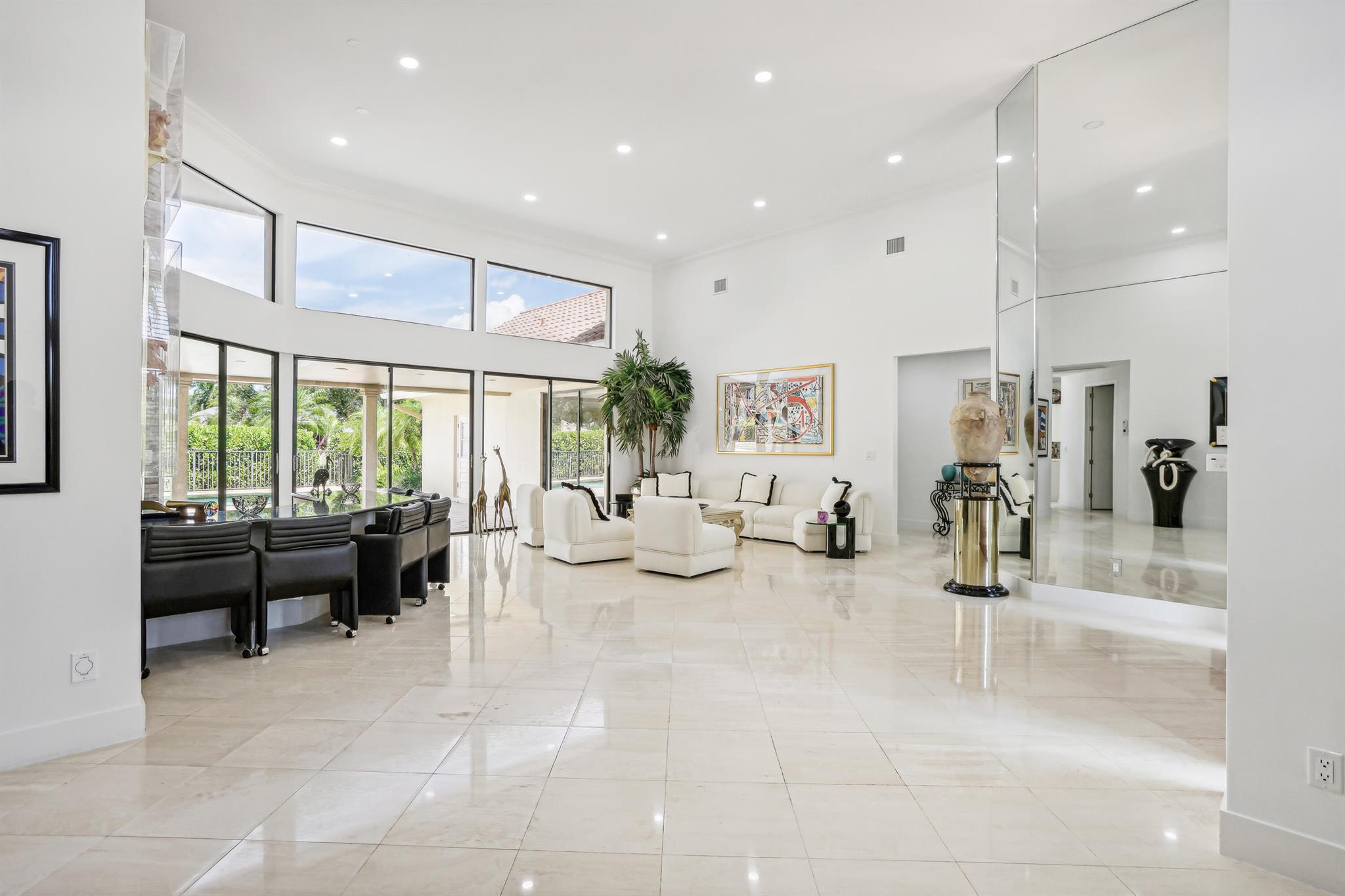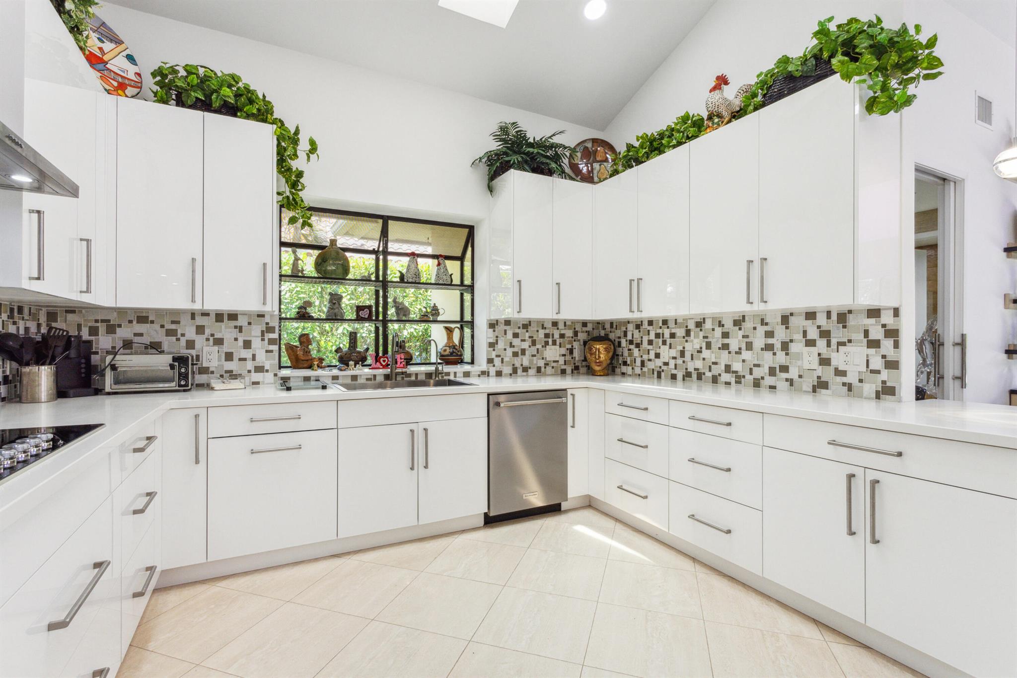 This one-story gem in St. Andrews Country Club offers a unique opportunity to enjoy serene living in a prime location, far from road noises. The home is beautifully and partially renovated, featuring a modern kitchen, a luxurious primary bathroom with separate sinks and commodes, and a stylish wet bar in the living room for entertaining. With no steps to worry about, accessibility is a breeze. The covered patio provides a perfect spot to relax and take in the stunning views of the pool, spa, golf course, and lake. Spanning approximately 3,400 sq ft, with high ceilings and 8ft doors both interior and exterior, the residence includes 3 bedrooms, 3.5 bathrooms, an office, large utility room , a 2-car garage, and a golf cart.