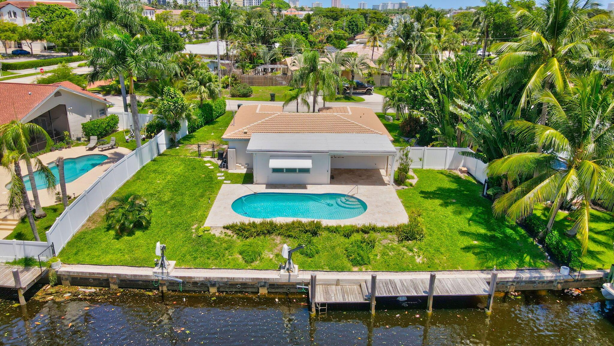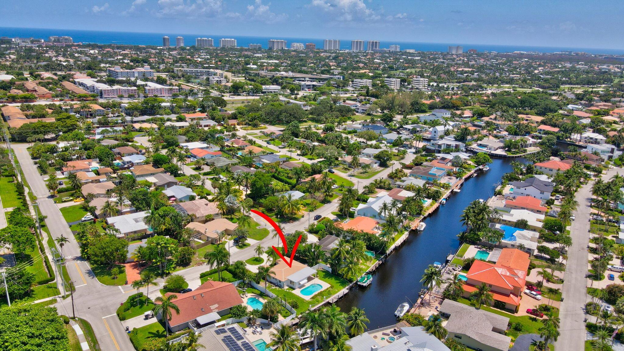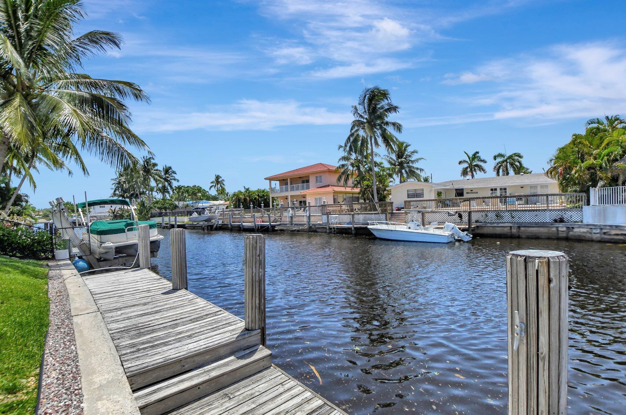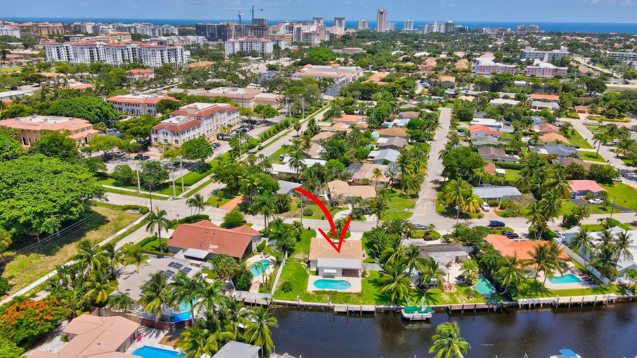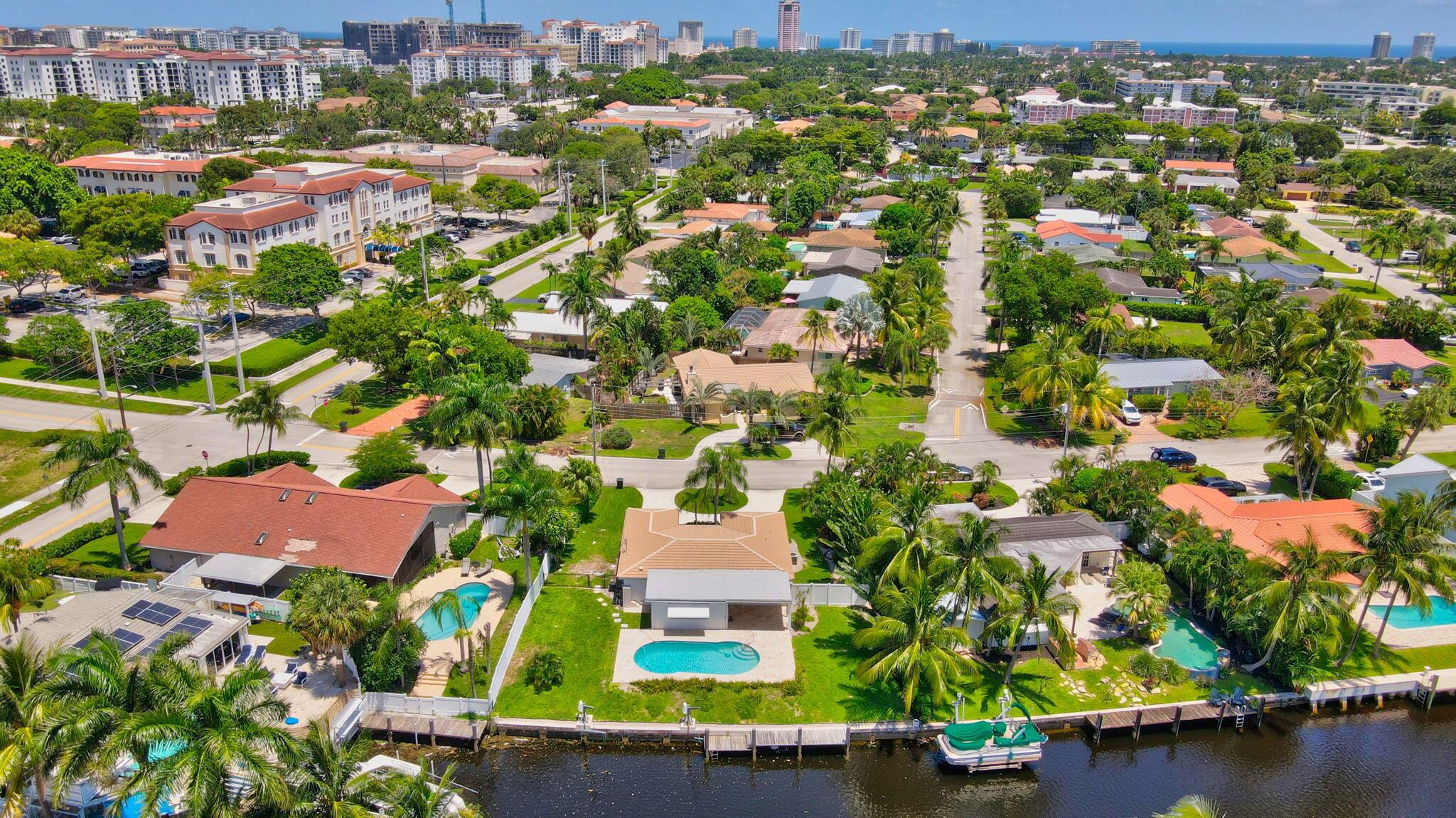 Great opportunity to own this East Boca waterfront home in the highly sought after neighborhood of Boca Islands. The outdoor oasis features a sparkling pool, 90 feet on the water, private dock and lift that accommodates a 30 ft boat, all with ocean access. This home awaits your own personal touches and presents a wonderful opportunity to create a residence that perfectly suits your vision. Located in an A-rated school district and NO HOA fees. Excellent location, just moments away from nearby attractions such as The Fresh Market, Publix, Trader Joe's, Mizner Park, the IPIC Theatre, and Royal Palm Plaza. The new Brightline Station is also just a short walk away, providing easy access to Miami, Fort Lauderdale, and beyond. For beach lovers, Boca's pristine shores are just a quick bike ride