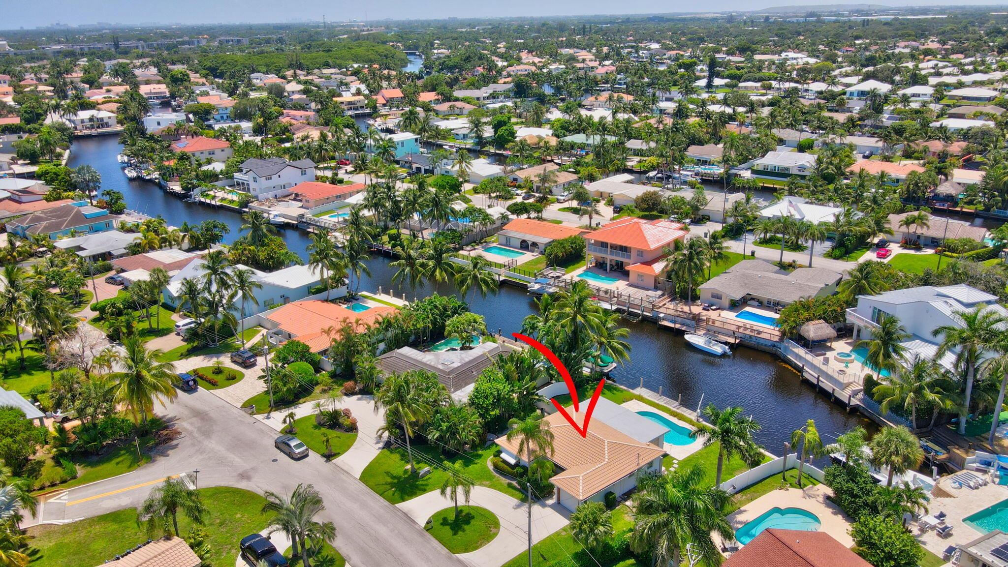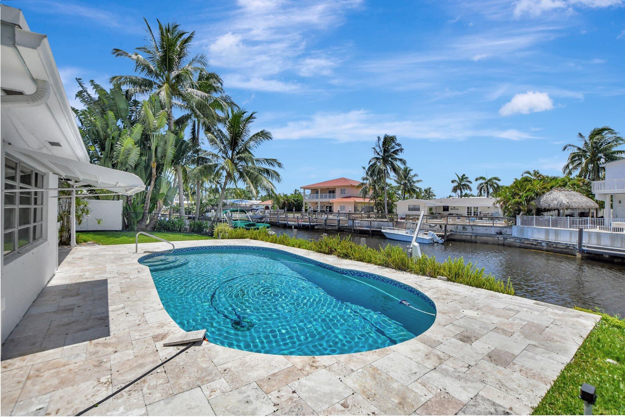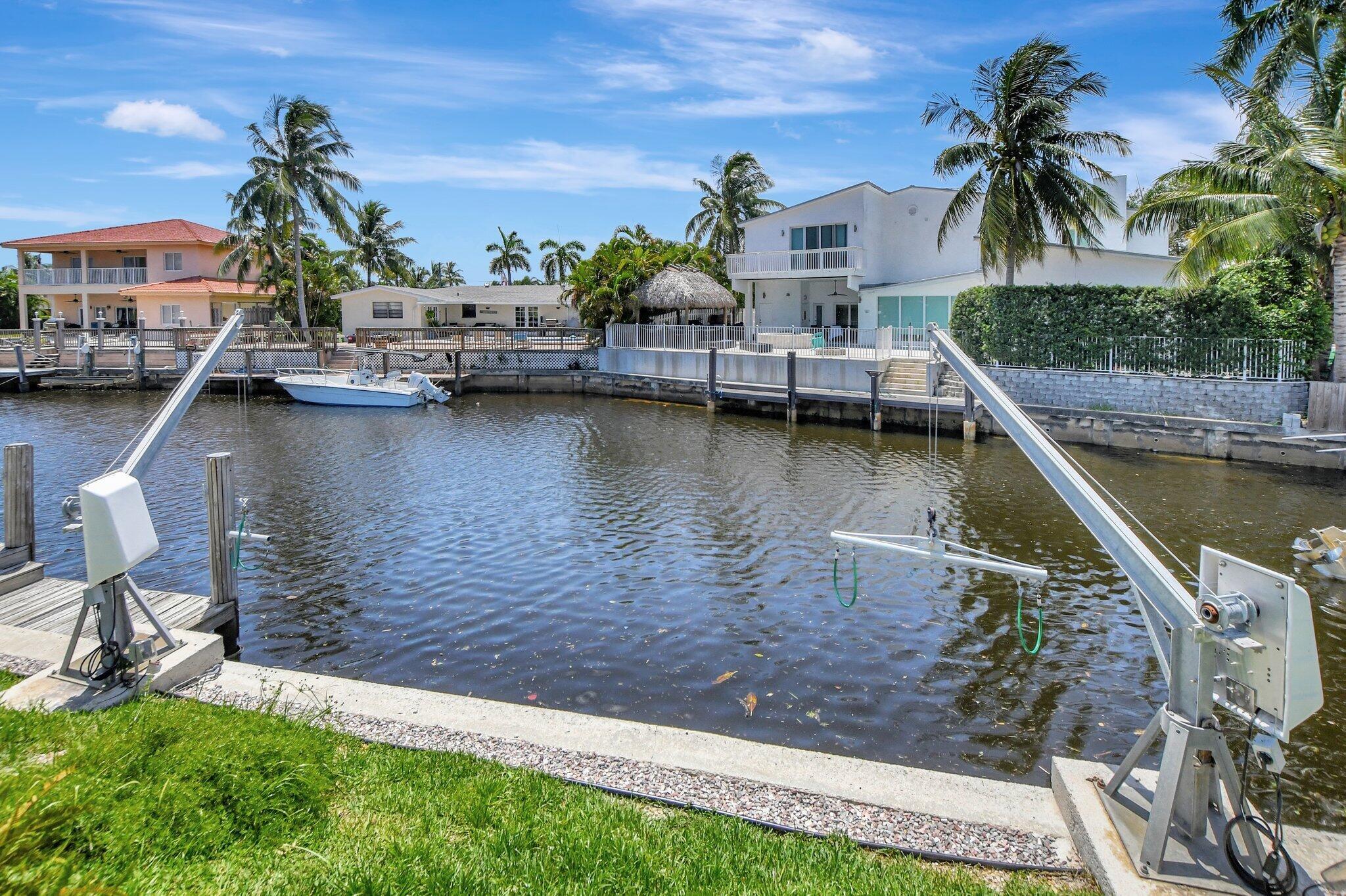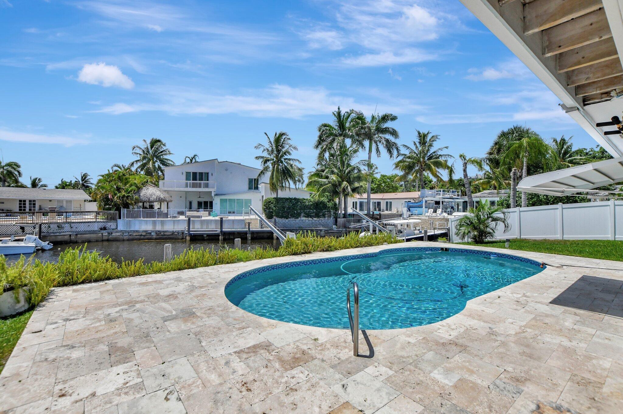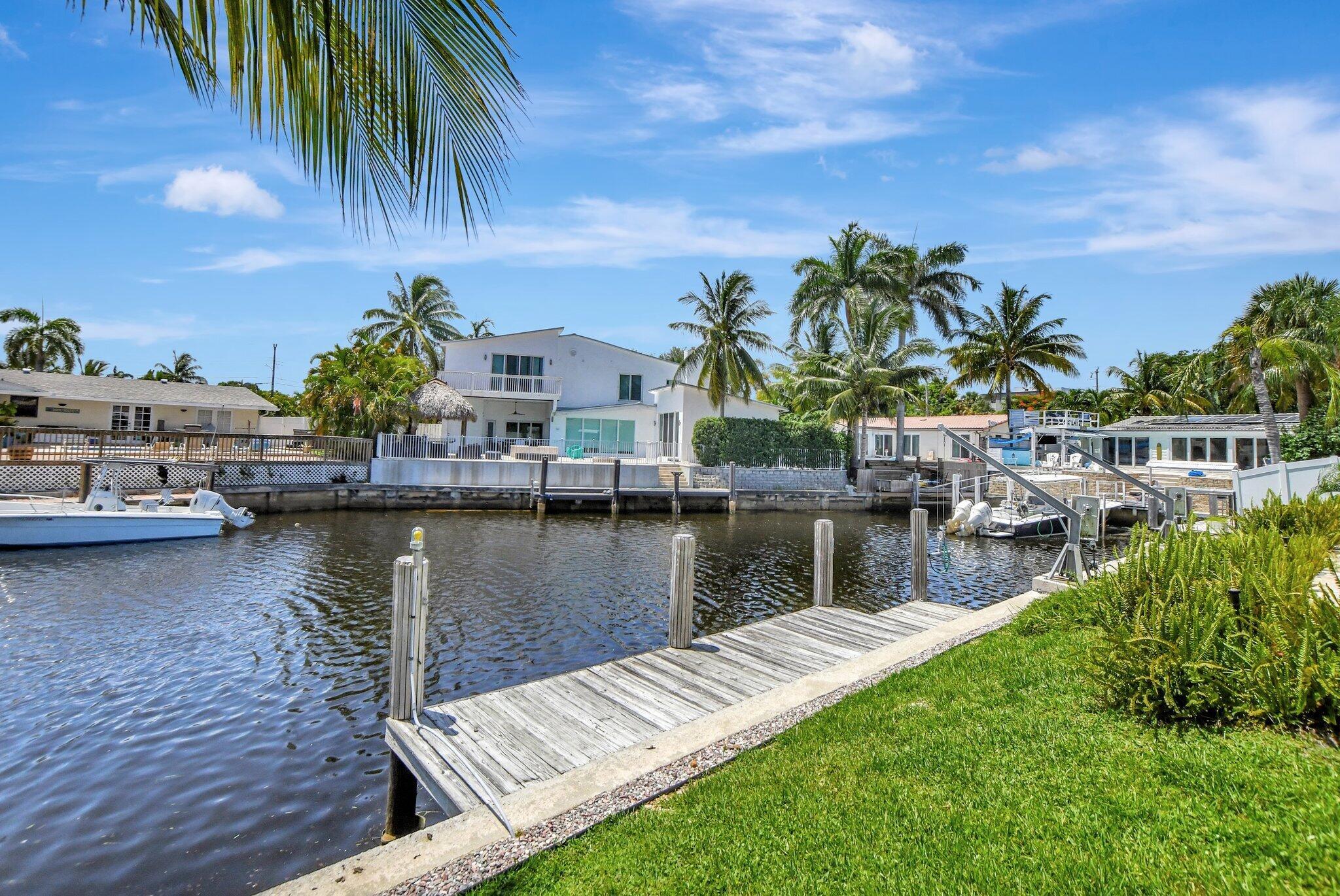 Great opportunity to own this East Boca waterfront home in the highly sought after neighborhood of Boca Islands. The outdoor oasis features a sparkling pool, 90 feet on the water, private dock and lift that accommodates a 30 ft boat, all with ocean access. This home awaits your own personal touches and presents a wonderful opportunity to create a residence that perfectly suits your vision. Located in an A-rated school district and NO HOA fees. Excellent location, just moments away from nearby attractions such as The Fresh Market, Publix, Trader Joe's, Mizner Park, the IPIC Theatre, and Royal Palm Plaza. The new Brightline Station is also just a short walk away, providing easy access to Miami, Fort Lauderdale, and beyond. For beach lovers, Boca's pristine shores are just a quick bike ride