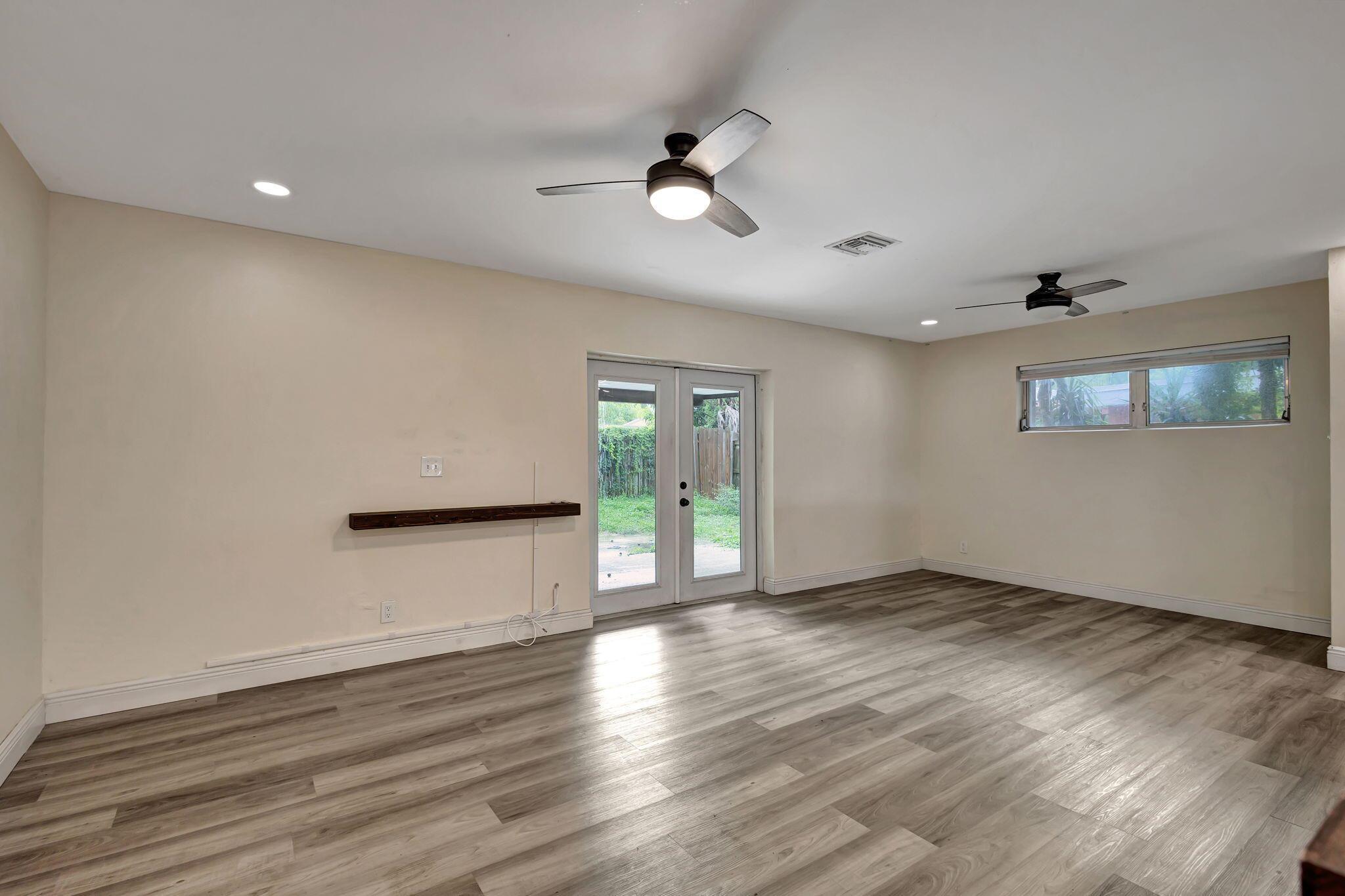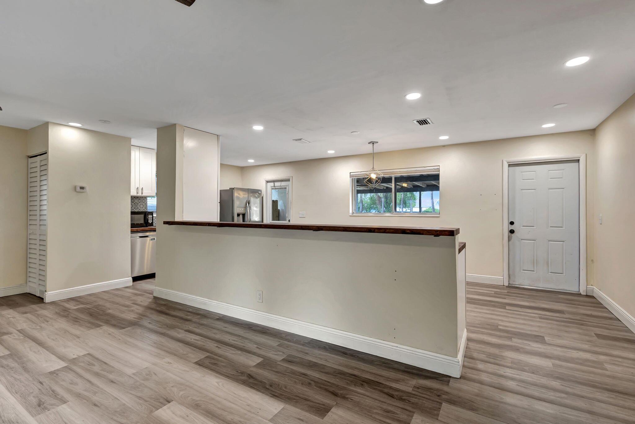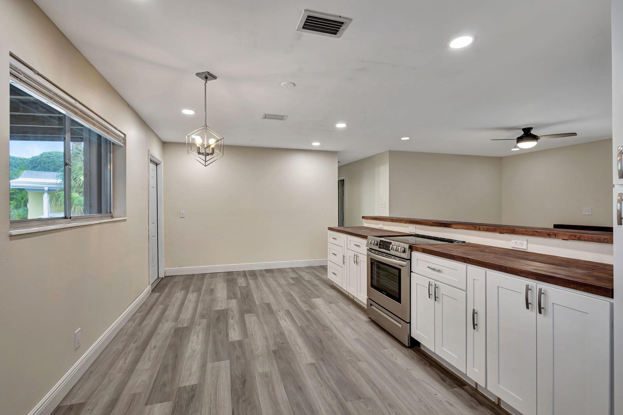 Welcome to this delightful 3-bedroom, 2-bath home in the heart of West Palm Beach, where comfort meets convenience. Situated just a short stroll from Dreher Park, this residence offers a prime location. As you enter, you'll be greeted by a spacious and open kitchen that's truly the heart of the home. The kitchen boasts white, soft close cabinetry, extensive butcher block counters and a large picture window that floods the space with natural light. This inviting area is perfect for both everyday meals and entertaining guests. The home features durable waterproof flooring throughout. The bathrooms have been updated, offering a fresh and modern feel. LED lighting throughout the home enhances its brightness and energy efficiency. Roof, A/C, water heater, baths, appliances,