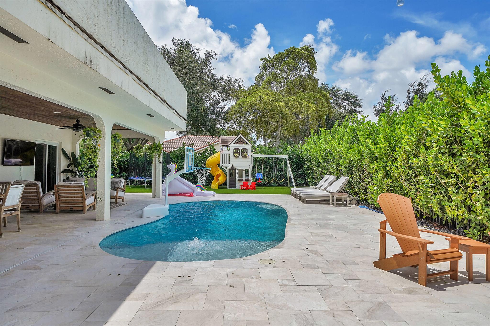 Located in the prestigious New Floresta neighborhood, this newly remodeled home has a Wine Room, large walk-in pantry, full outdoor kitchen with a pizza oven and a large pool patio great for entertaining. On a corner lot, this house has all the comforts and privacy.Great neighborhood conveniently located near prime shopping, great private and public schools , minutes from the ocean and golf courses.
