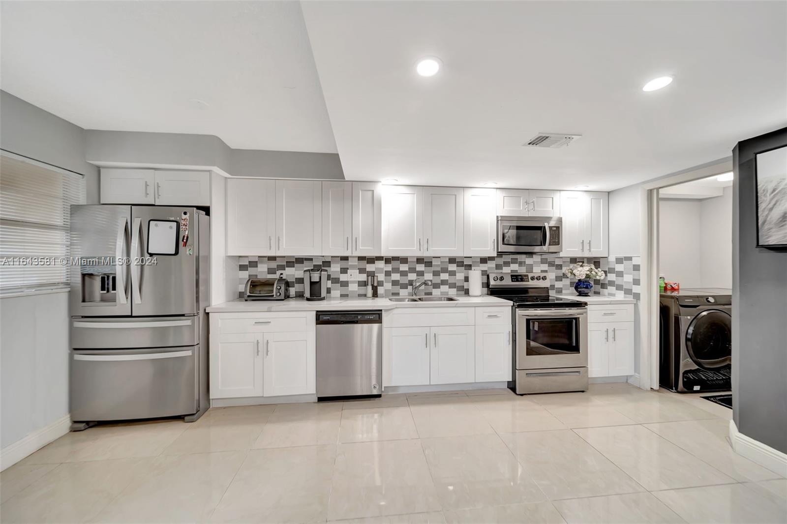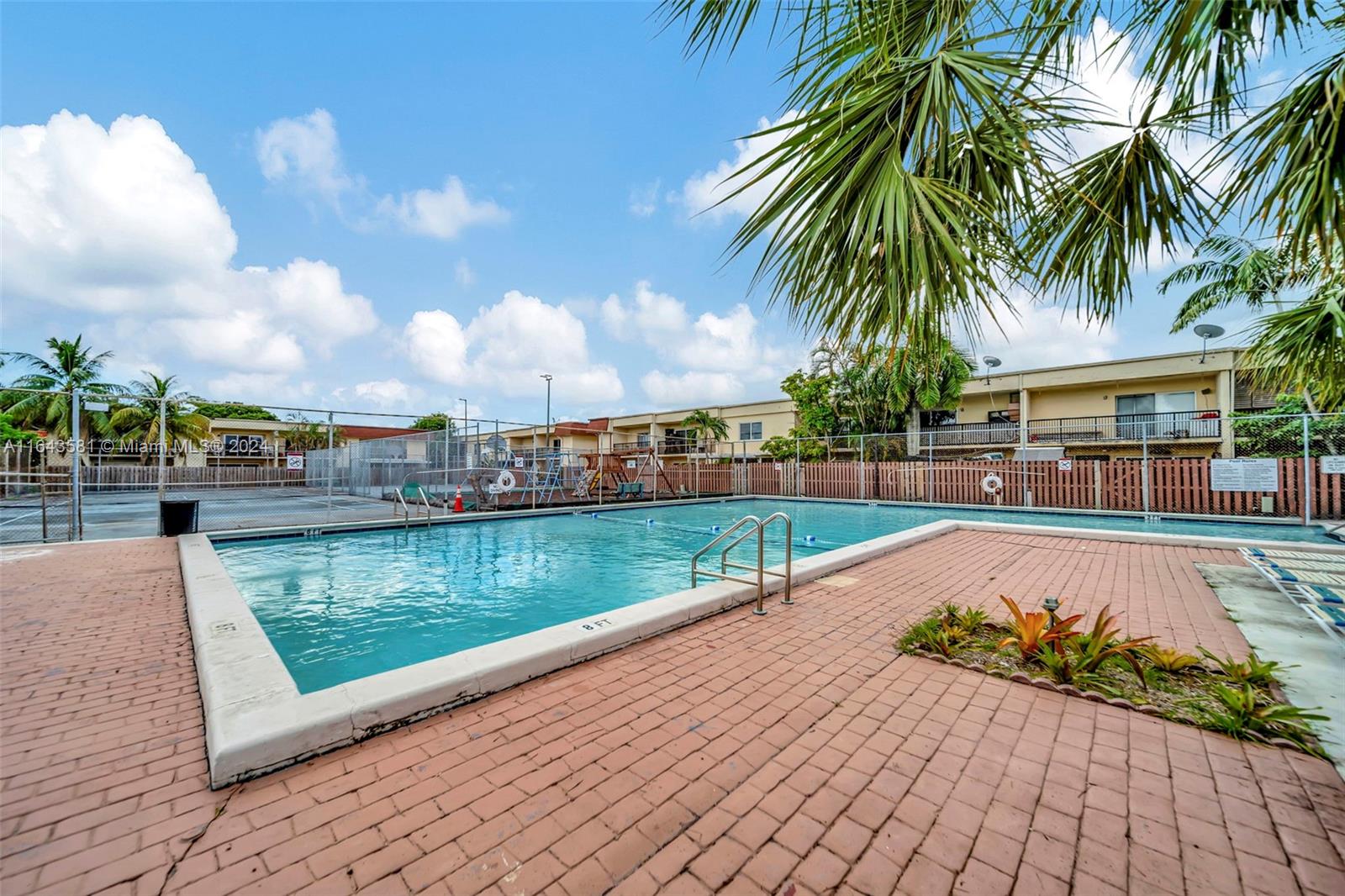3 bed, 2.5 bath townhouse in the heart of Davie where pets are welcome! Enjoy a bright kitchen with like-new white shaker cabinets, stainless steel appliances, & French door/2-drawer refrigerator. The huge eat-in kitchen & dining area are perfect for gatherings and meal prep. Separate laundry room conveniently located off the kitchen. Living spaces downstairs, bedrooms upstairs. The primary suite boasts a private balcony overlooking a patio with a tropical view of the mango trees. Enjoy BBQ's & time outside w/the private fenced in patio area out back. New A/C in 2023. Conveniently located near highways, NSU, BC, hospitals, shopping, dining, and worship. Two assigned parking spaces. Community amenities include a pool, pickleball/tennis, basketball, playground, & clubhouse.