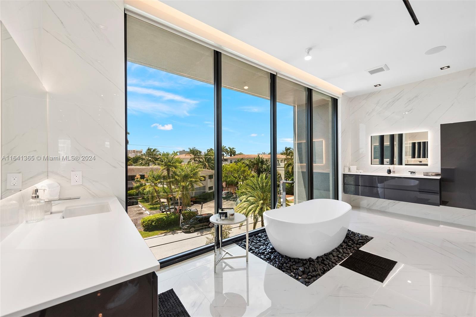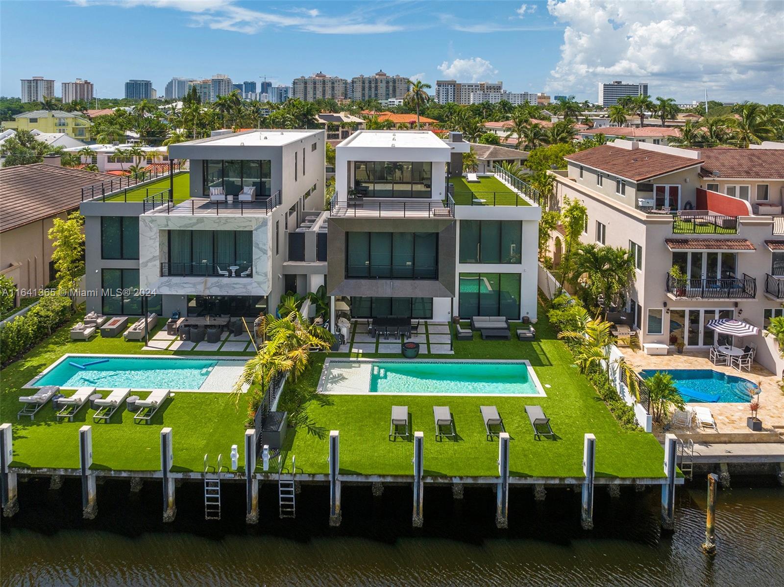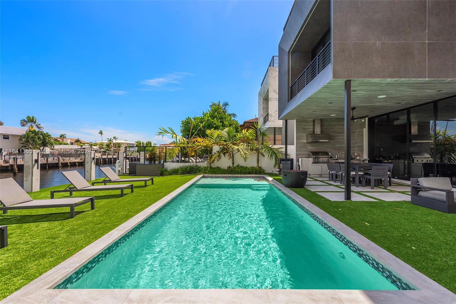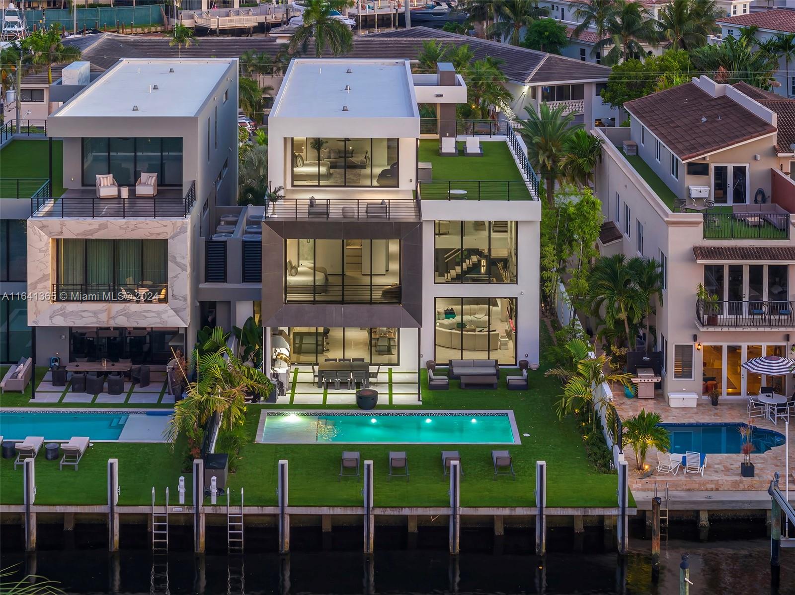 Discover unparalleled luxury in Coral Ridge with this exquisite canal-front residence in Ft. Lauderdale. This three-story home features a private elevator, a saltwater pool, and a covered summer kitchen perfect for entertaining. Enjoy panoramic views from the rooftop deck, or dock your boat at the 50ft slip. Inside, find four bedrooms plus a loft office, four full baths, and a guest bath. The Italian kitchen boasts high-end appliances, complemented by a floating steel and wood staircase, a master suite with boutique closets and a wet bar. Complete with window treatments, private entry gates, and deep-water access, this home offers both exclusivity and convenience, just minutes from the Intracoastal.