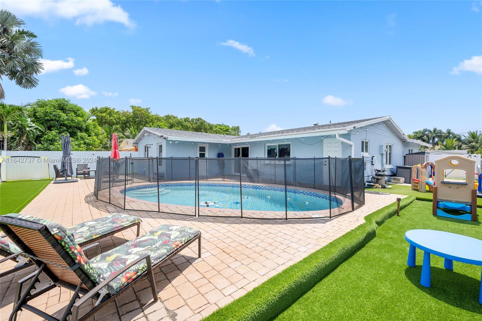Beautiful Property 3/2 in mint conditions ready to move home. featuring: impact windows/doors/garage door, 2018 roof, 2016 HVAC, 2019 water heater, fully updated kitchen (2022) and baths, tile flooring, freshly painted interior & exterior, fully- updated fenced private yard, 2017 patio & resurfaced pool, 2022 updated to salt water pool! 2-car garage & more! There is nothing for you to do here! Easy access to many shops, restaurants & major highways. Brand new A/C.