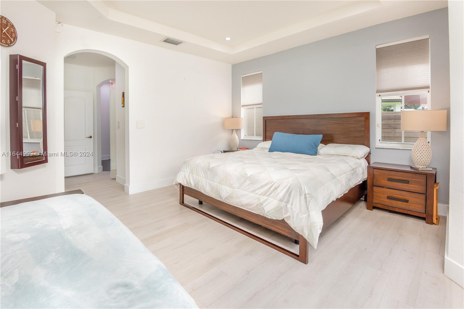 No other House like this one. . Very Desirable One Story Totally upgraded, Open concept, Single Family Home in Doral. Move-in ready. Huge lot with almost 7,000 Sq Ft perfect for a pool and entertainment. Very private home with Doral Legacy Park on the back. 4 Beds, 3 Full Baths, 2 Car Garage + 2 spaces on the driveway with an electric car station. Gourmet Kitchen with a big island, quartz countertop, black SS appliances with separate glass stove and oven, waterproof laminated floor in living area, bedrooms and kitchen, porcelain floor on the bathrooms. Custom-made closets in all the bedrooms, almost new Air Conditioner. High hat led lights in all the house. Front-loaded washer and dryer. Buyer has to pay $ 3,600 for Title Transfer to the Associations at Closing.