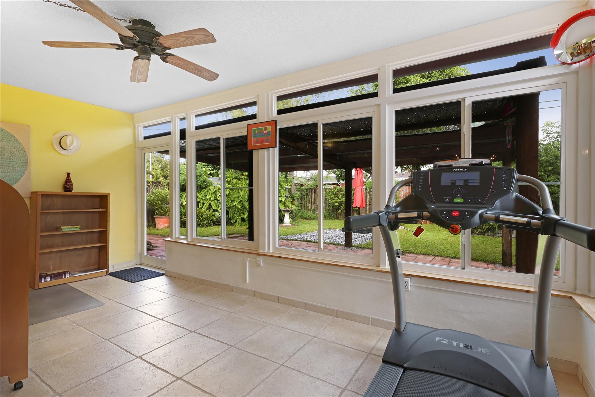 Welcome to this delightful two-bedroom, one-bathroom home in the desirable Sunrise Golf Village. This property features an updated kitchen with sleek quartz countertops and abundant cabinet space, perfect for both cooking and storage. The inviting Florida room, equipped with impact windows, offers a bright and airy space to relax while enjoying serene views of the fenced backyard. Additional highlights include a one-car garage and a convenient circular driveway, providing ample parking. The home has been meticulously maintained with key updates: a new roof in 2018, an AC unit replaced in 2019, and updated electrical in 2016. Located in a prime area, this home is just minutes away from Publix and a variety of popular restaurants, ensuring easy access to all your daily needs. TURNKEY!