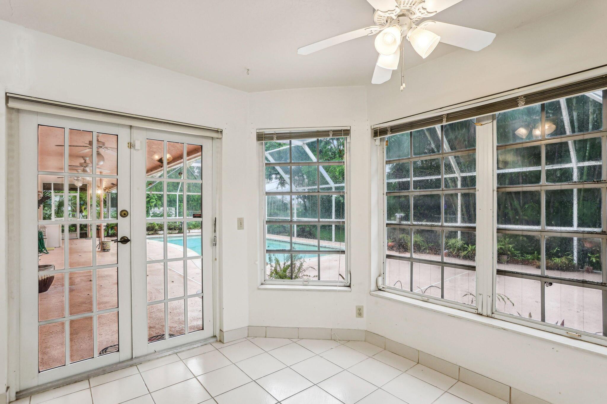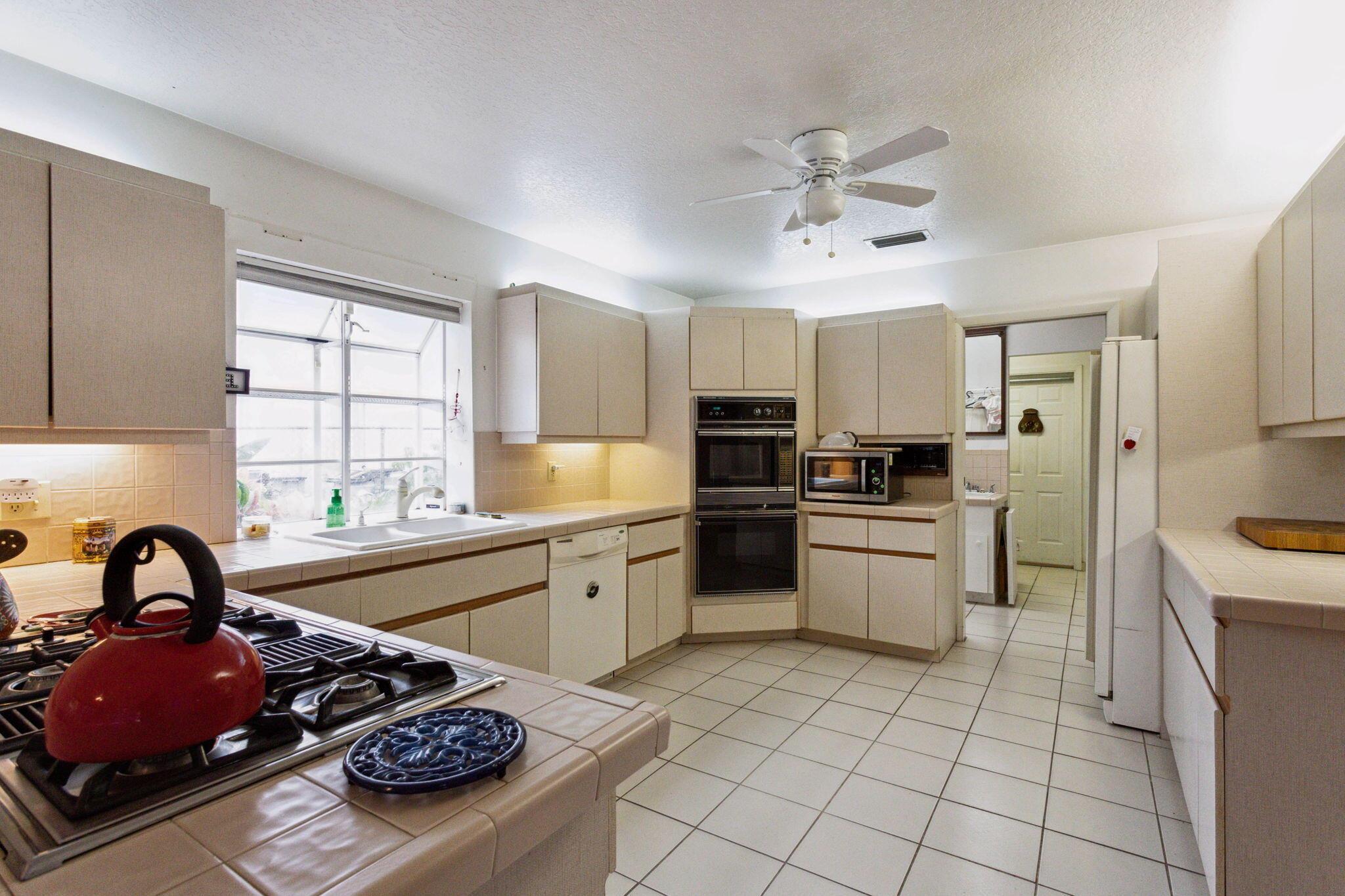 Discover a one-of-a-kind Spanish-style residence set on a nearly 1/3 acre lot in the prestigious Hidden Valley of East Boca. This private retreat offers unparalleled seclusion with no neighbors at the front or back. Enjoy the freedom of NO HOA rules! The expansive great room features vaulted ceilings with skylights, one bedroom with a second convertable den, one bathroom and chefs kitchen. The kitchen is equipped with a gas stove, perfect for culinary enthusiasts. A beautiful oak door welcomes you into the home. Upstairs, the generous master suite boasts a large walk-in closet, a luxurious whirlpool bath, and a private balcony ideal for watching breathtaking sunsets. The home also includes a two-car garage for convenience.