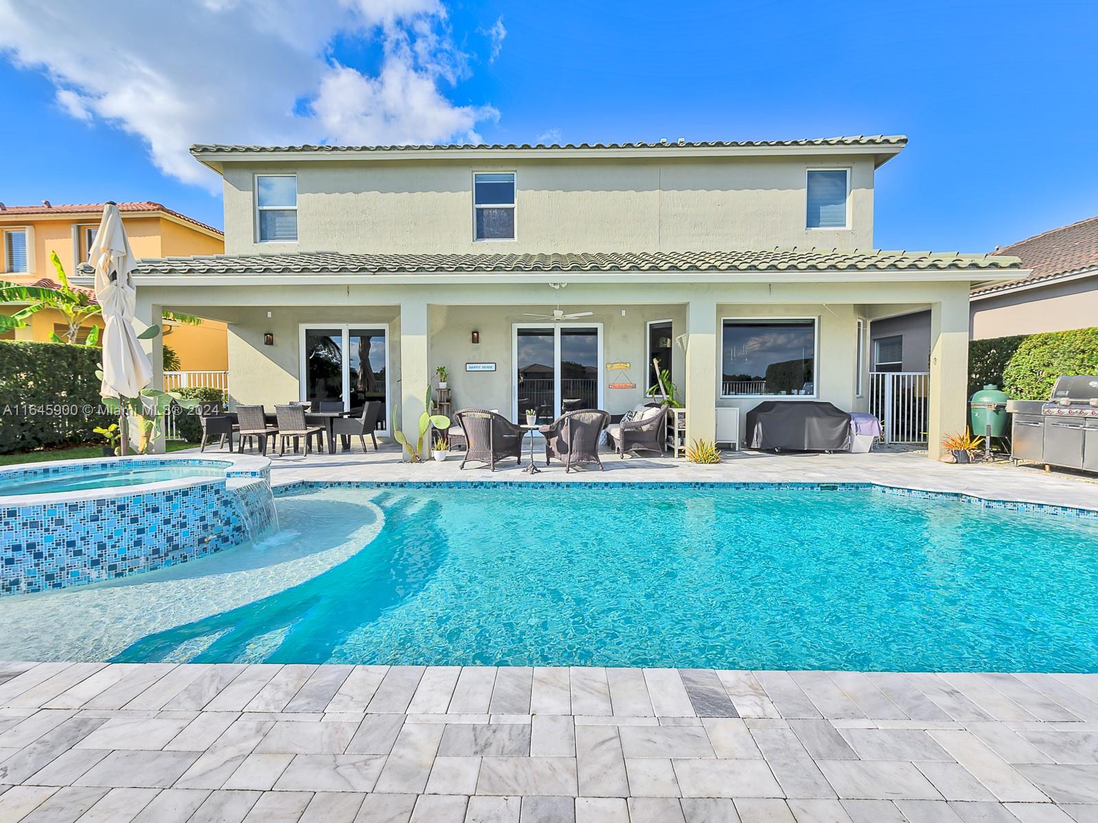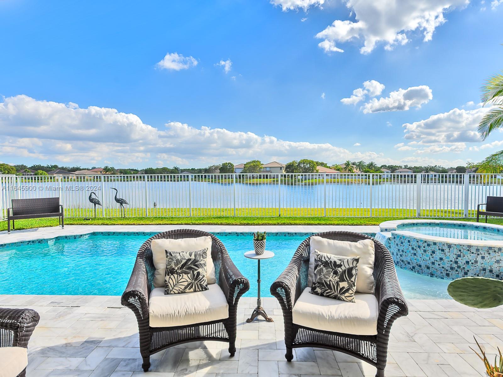 Stunning completely remodeled waterfront two-story home in the desirable Isles at Weston. Inside this home a stunning striking glass staircase welcomes you and beautiful Spanish porcelain floors, the gourmet kitchen features appliances: Sub-Zero, Miele, Wolf, U-Lin, 5Bd/4Ba completely remodeled w modern finishes. 5th bedroom has been converted to a master closet. The property features two newer A/C, vinyl flooring on the 2nd floor, high-impact windows & doors. Outside features an upgraded pool w jacuzzi, to enjoy the panoramic serene lake views. The community offers resort-style amenities including a gym, basketball court, beach volleyball, pool, & a clubhouse. Conveniently located minutes away from A+ rated schools, restaurants, shopping centers, highways, and 30-min away from the beach.