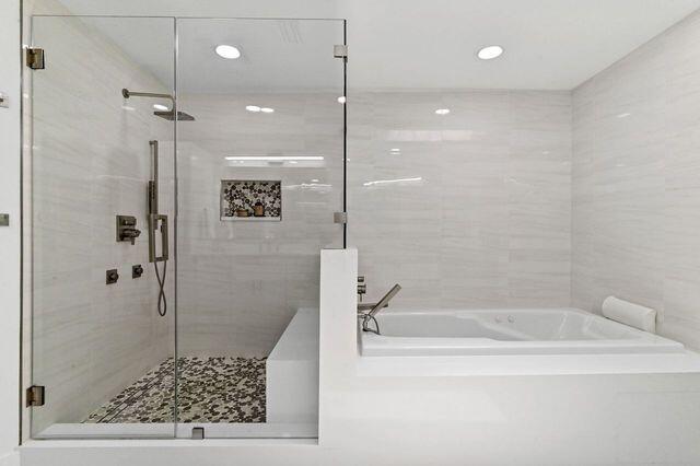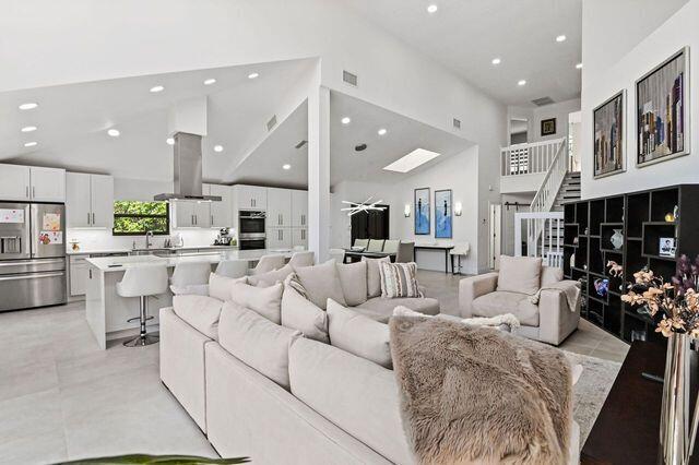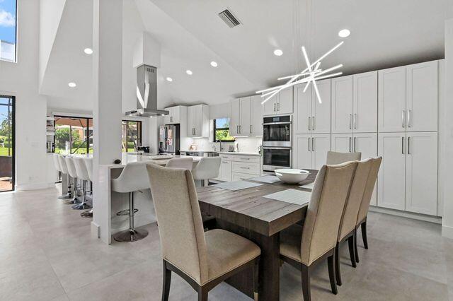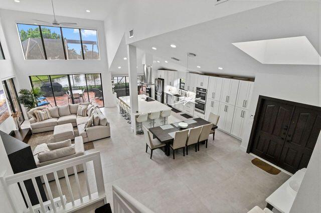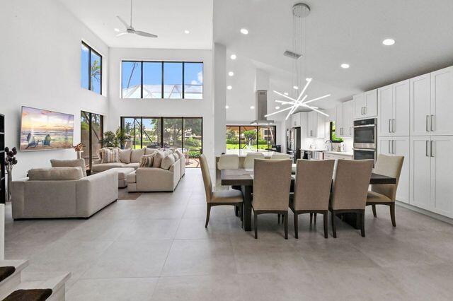 OPEN HOUSE CANCELLED -EXECUTED CONTRACT 9/13/24This stunning, lake-front, 3,165 total SF home in Boca Pointe has been completely transformed, gutted to the studs, and move-in ready! Everything is brand new! Featuring 4 bedrooms and 3 full baths, this beautiful property boasts porcelain floors, an open cook's kitchen with an 11FT quartz island, all Bluetooth-enabled appliances, soft-close cabinets, satin nickel hardware, separate beverage fridge, purified water system, electric/remote control blinds, and custom closets throughout.The luxurious master suite is on the main floor and includes a Whirlpool tub and separate shower, both with jets and also a private office. The upper level offers 2 spacious bedrooms and a bath. Come see this spectacular home
