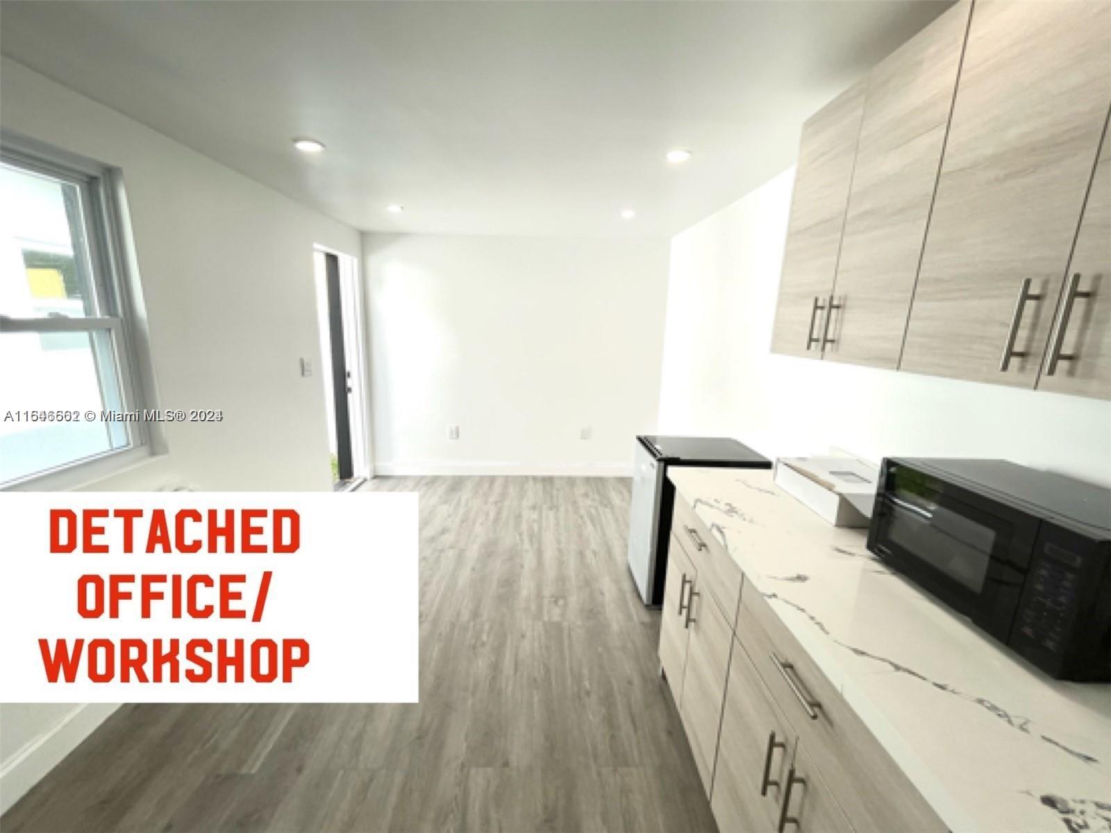 Calling all investors! 2/1 + detached workshop room. Remodeled kitchen with new cabinets, quartz countertops, and a huge island, new stainless steel appliances. beautiful vinyl flooring throughout, and a renovated bathroom with a soaking tub, glass shower, new sink, and toilet. The bathroom is attached to the main bedroom and also opens to the hallway. Accent wall in the living room. Laundry room. Home shows like a model. Outback large 23'x12' workshop that can be used as a home office or room & can maybe be rented separately. Separate yard with Front porch that is PVC fenced. New Roof and A/C. Close to dining, shopping, beaches, airport and more. Easy to show!