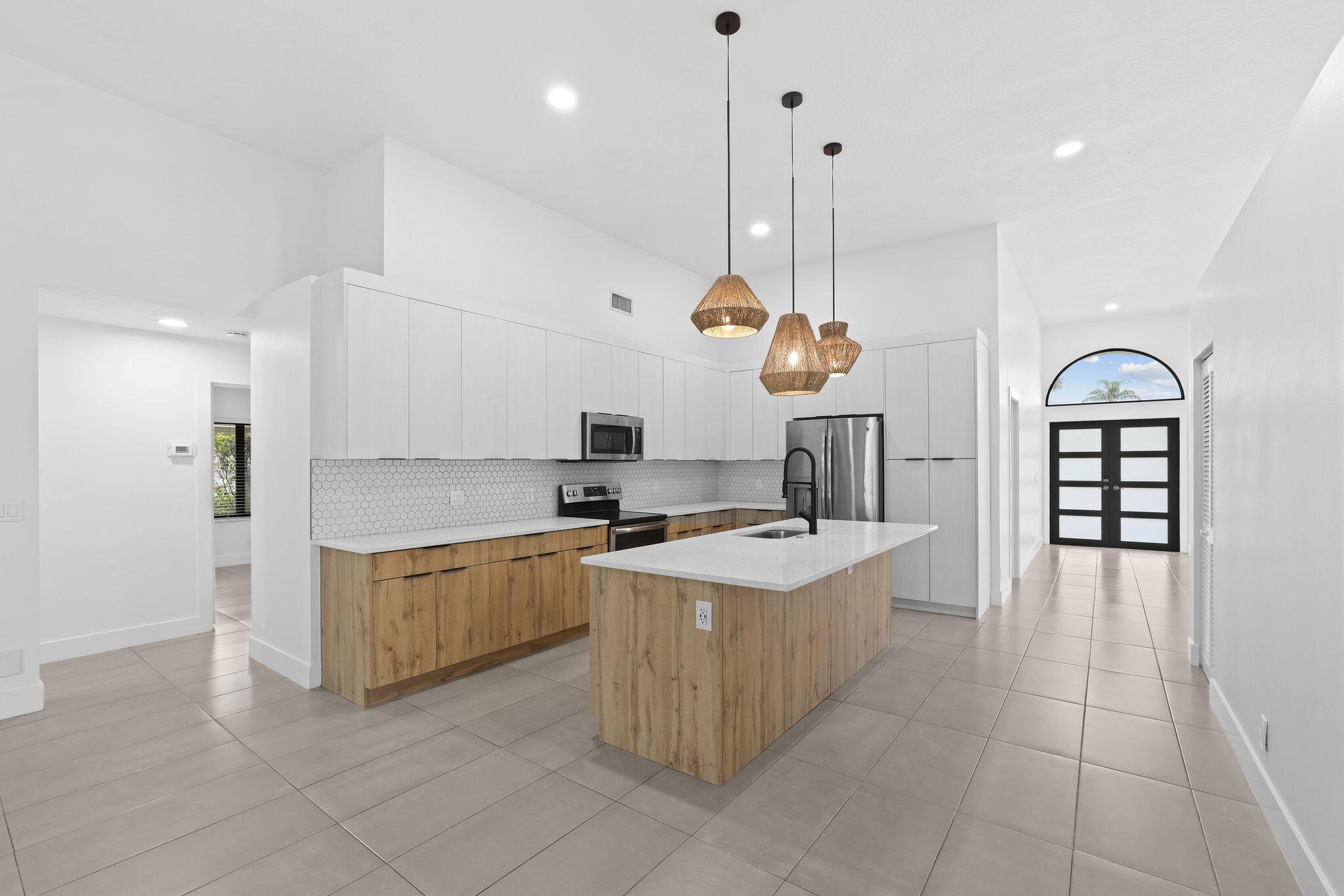 PRICED TO SELL! Exceptional 4br, 2ba single-story modern home on cul-de-sac in Boca Isles. Reconfigured open kitchen features high ceilings, hurricane impact windows/doors, hurricane garage door, tankless instant hot water system, stunning fireplace, updated cabinetry, appliances, vanities, quartz counters and ceramic plank-style floors wall to wall. Completely repainted interior/exterior. Central vacuum. Finished garage. Professionally landscaped with decorative driveway. Master suite has own wing away from bedrooms. Spacious master bathroom features double-sink vanity, walk-in shower and standalone tub. Boca Isles is a manned guard gated & patrolled community. Exceptional recently updated clubhouse featuring resort-style pool, tennis courts, playground, fitness, billiards & much more!
