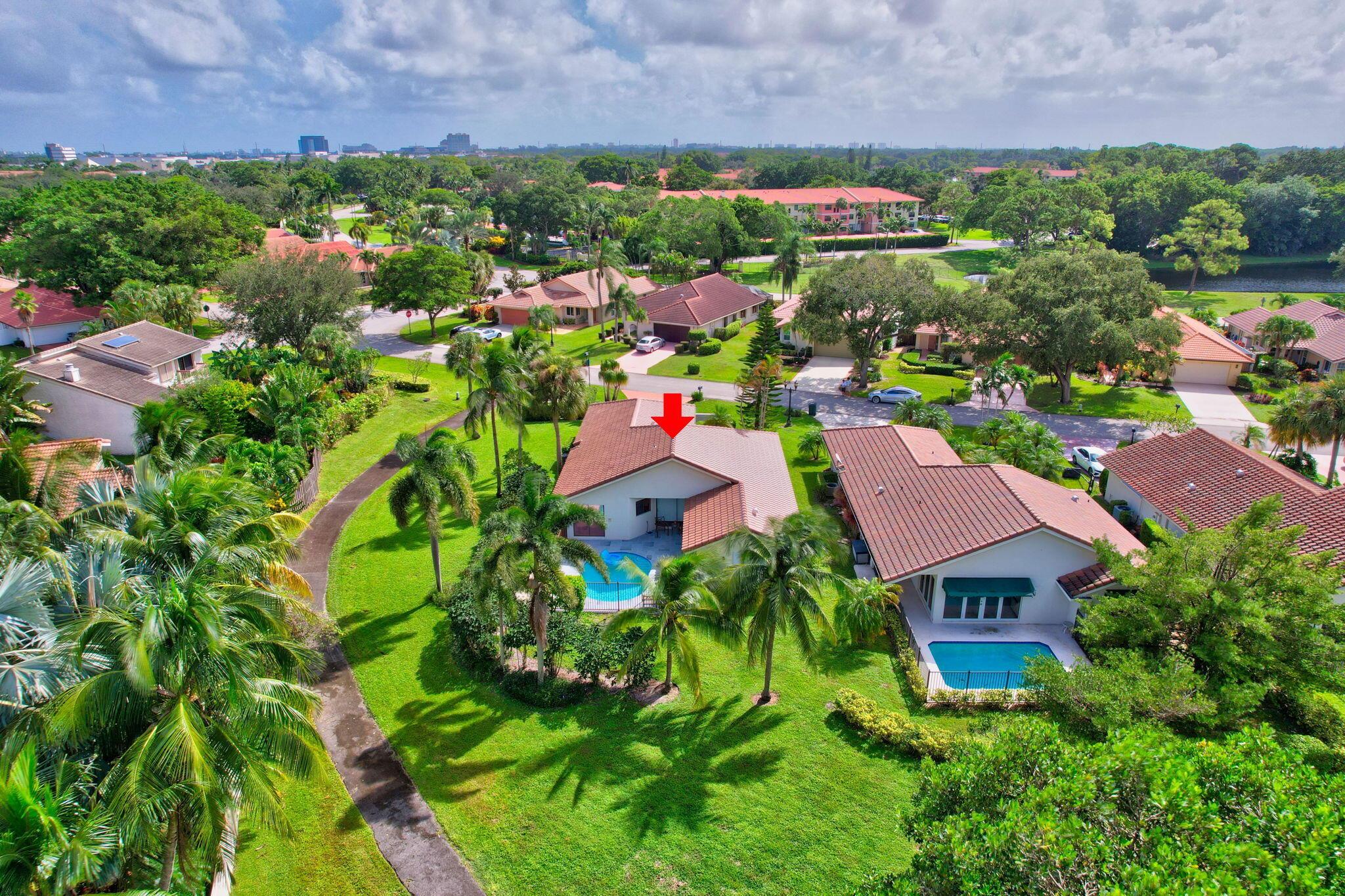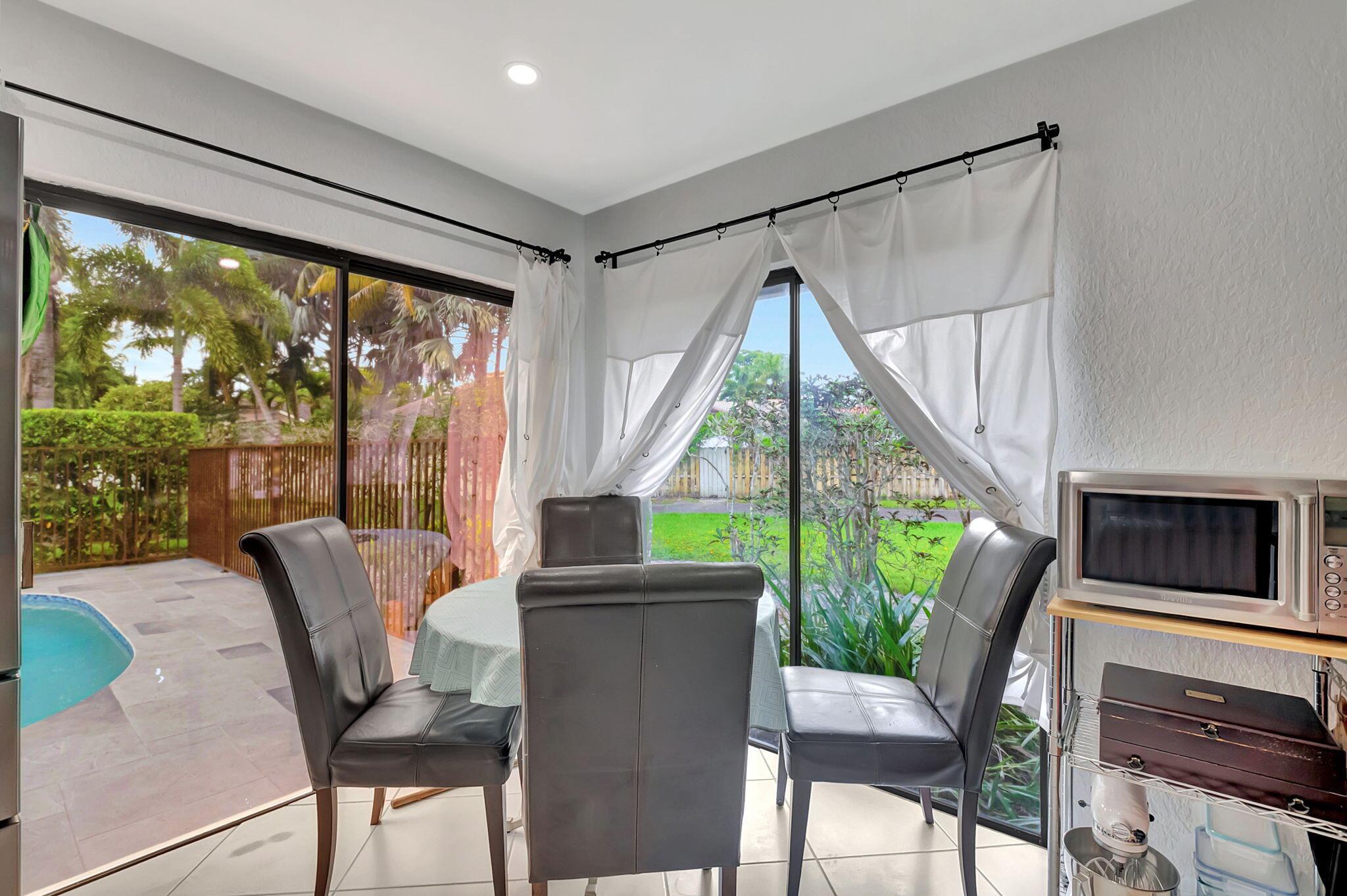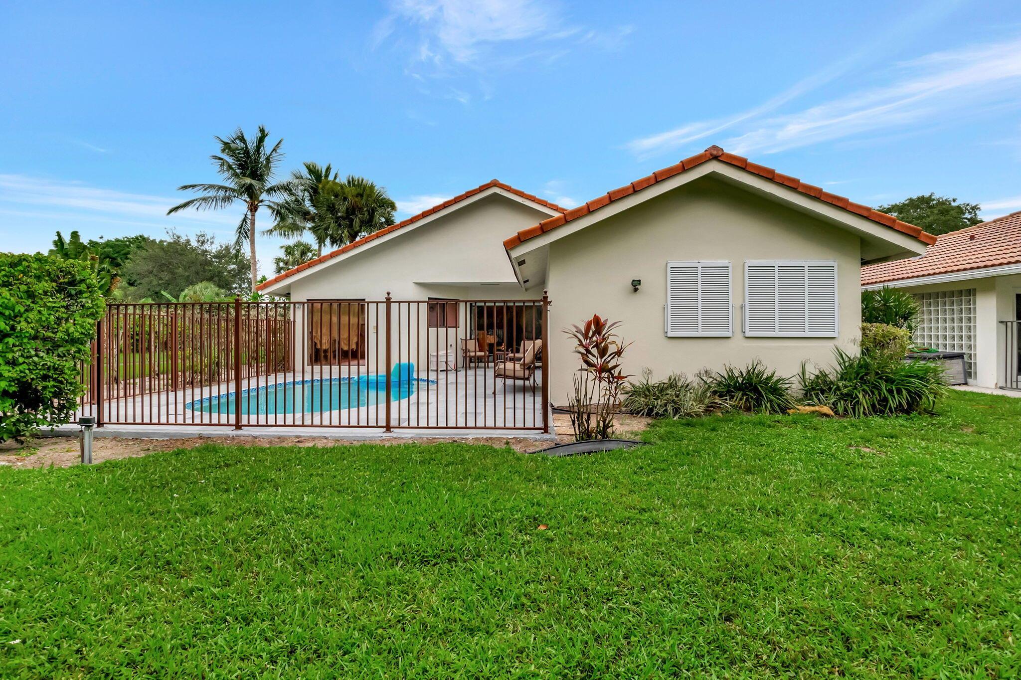 Welcome to this charming gem nestled on a desirable corner lot in Central Boca Raton! This rarely available home boasts a private, tranquil setting with a sparkling pool and ample outdoor space, including spacious back & side yards. NEW ROOF INSTALLED Oct. 2024. The inviting 3-bedroom, 2-bathroom residence features a 2-car garage with an extra-long driveway for added convenience. Inside, you'll find a blend of neutral tile & cherry wood flooring throughout, creating a warm and stylish ambiance. The kitchen, equipped with sleek S/S Samsung appliances, offers a cozy eat-in area. Vaulted ceilings & an open, split floor plan enhance the sense of space. The living/dining room, master bedroom, & kitchen all offer picturesque views of the fenced-in pool area, ideal for relaxation & entertaining