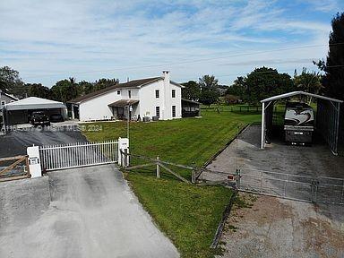 Casual country 2 story 3bed 2bath loft home - 2 car garage w/electric opener, add’l 30’ X 20’ 4-car garage w/hydraulic pole lift & 3 roll up doors; 30’ X 18’ canopy for 3 more cars; 40’ X 20’ canopy for boat PLUS 200 mph rated alum/metal 55’ X 20’ X 16’ RV bldg w/50 amp power; 2 sheds. Fully fenced, pool; monitored security; dual zone A/C units; central vac; wood-burning fireplace; warm wood accents; hurricane shutters; shingled-roof screened patio. Quiet community; pets/horses welcome. New washer/dryer/dishwasher; 2023 new pool pump & filtration system; military 40 KW diesel generator; city water. 3 gates one is electric; tankless water heater. Fiber optics wifi AT&T fast internet; Direct TV ready satellite dish; Comcast ready cable TV. Night security lights entire property.
