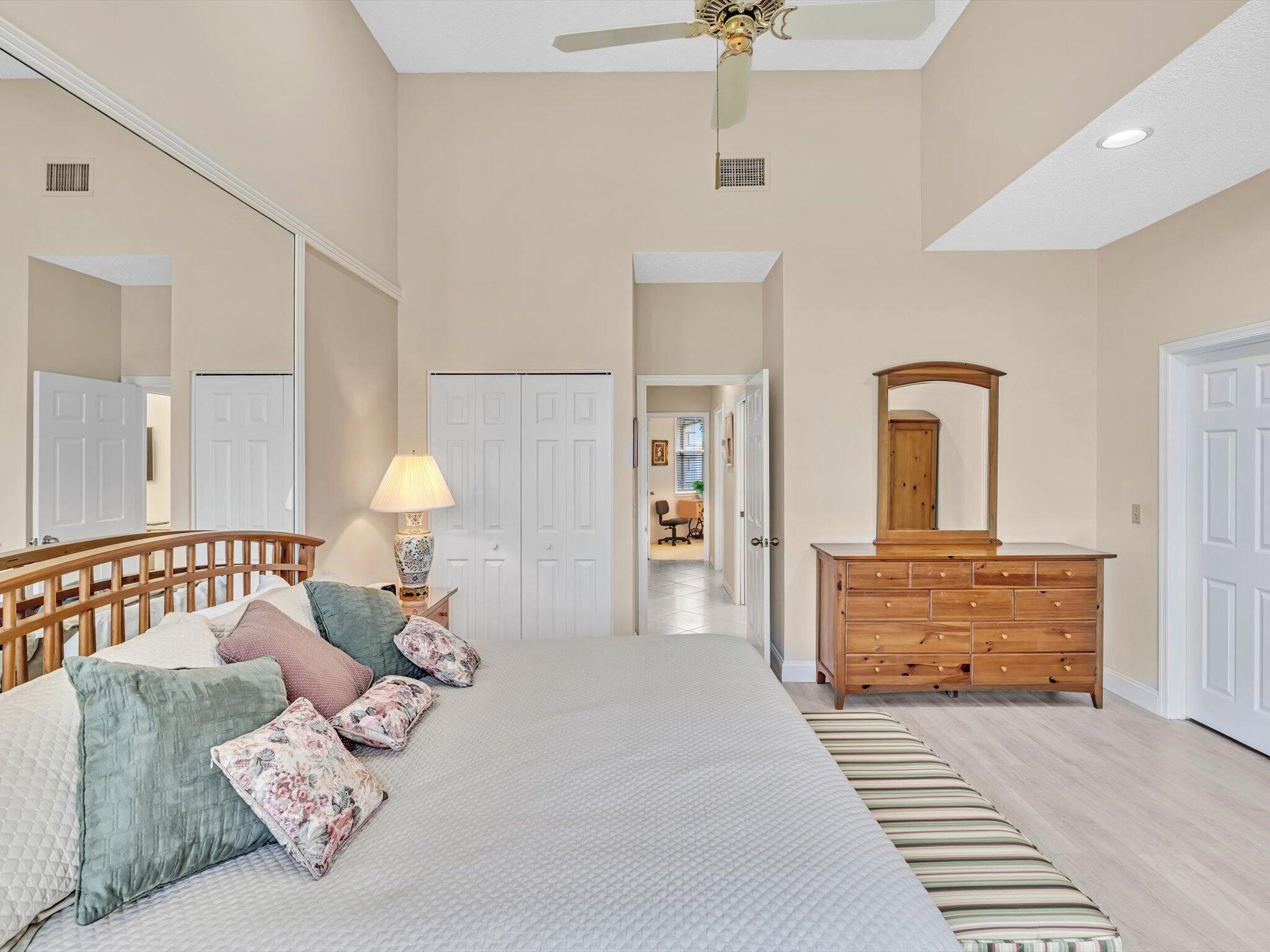 BRING OFFERS MOTIVATED SELLERS!Luxurious living with spectacular lake views! Welcome to your dream home in the prestigious Boca Pointe community! This exquisite single-family home boasts two spacious bedrooms plus an open den that can easily be converted into an additional bedroom. The two full bathrooms have been remodeled with stand alone showers in each & a separate soaking tub in the primary bathroom. The eat-in kitchen is light & bright and a true highlight, it leads to the formal dining room & living room. Step outside on to a huge screened patio and take in the tranquil lake views, an ideal spot for enjoying morning coffee or evening sunsets.Situated on a tree lined cut-de-sac in the Palms at BOCA POINTE.2 car garage providing plenty of space for storage & parking.