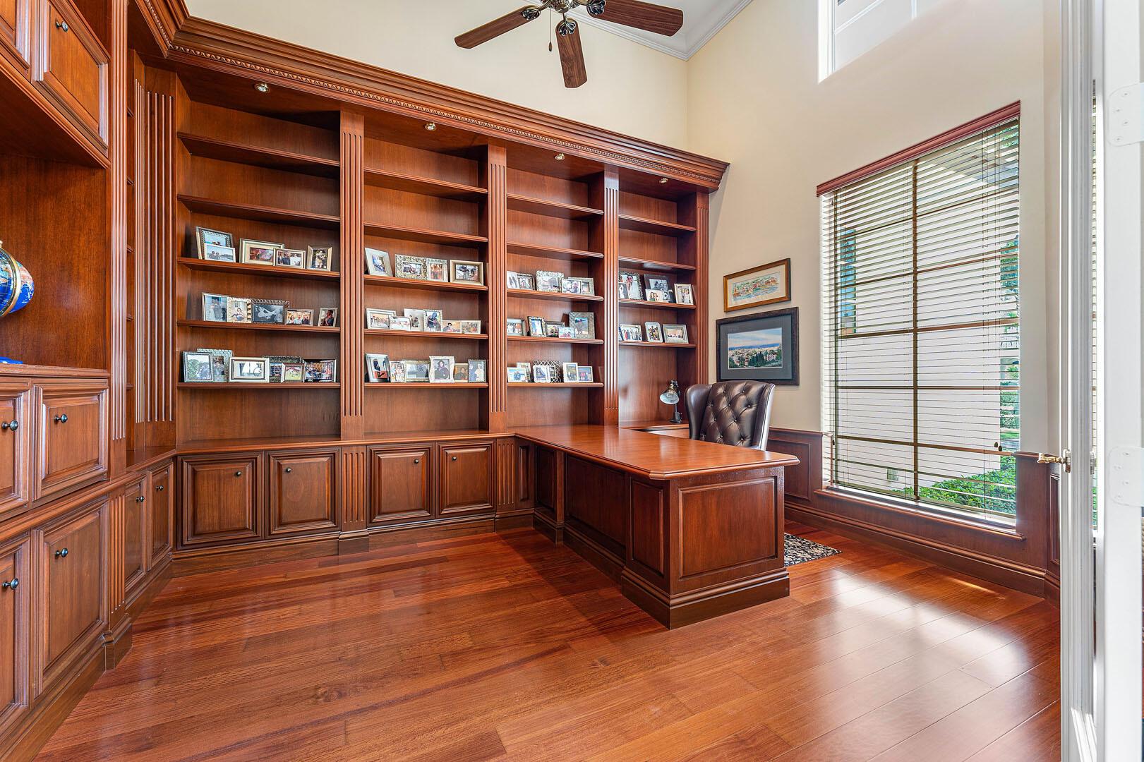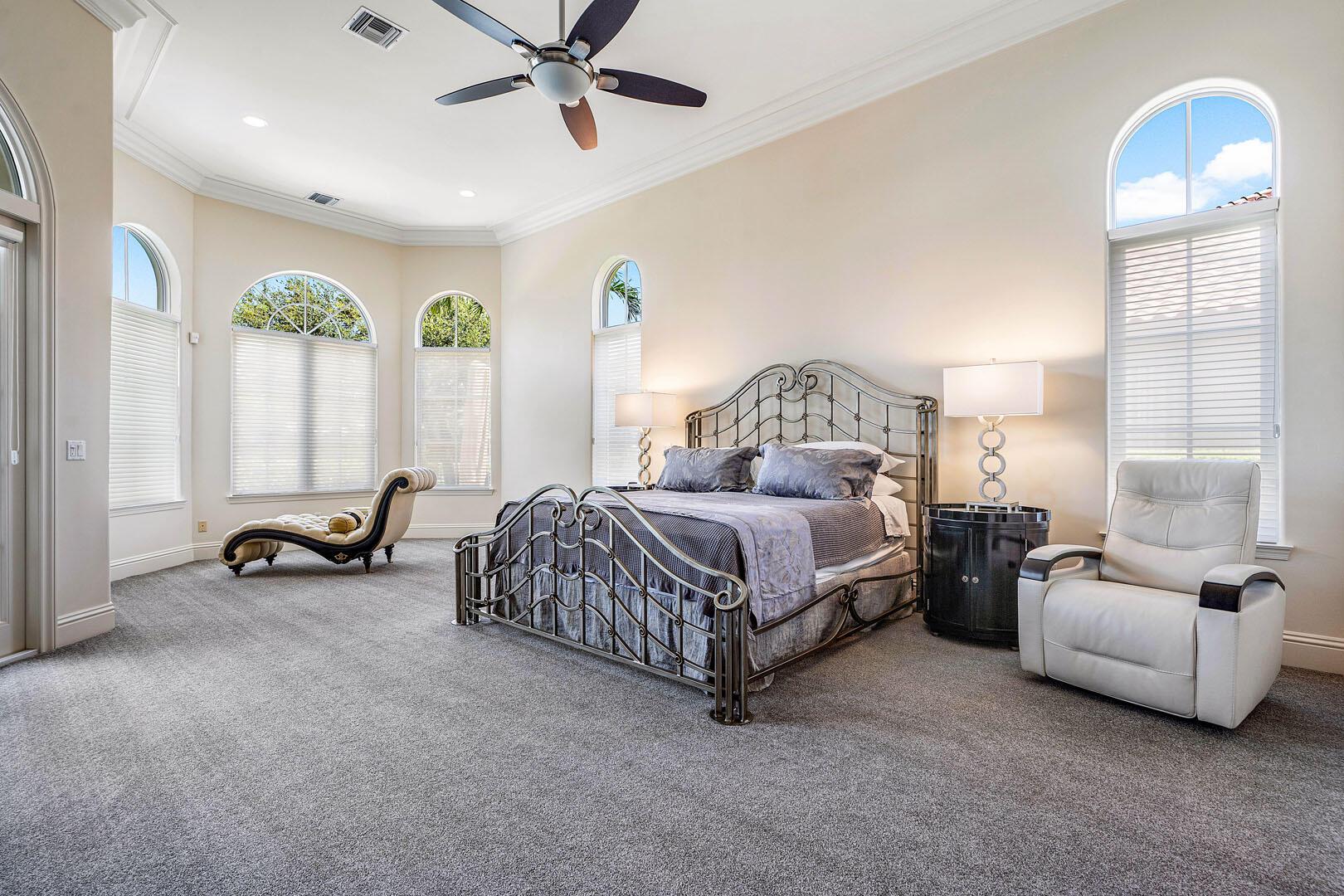 Situated in the exclusive Royal Palm Yacht & Country Club, this exquisite 6,279 sq ft estate offers a harmonious blend of sophistication and comfort. With 112 feet of prime golf course frontage and sun-filled north exposure, this 5-bedroom plus office residence is a meticulously maintained sanctuary for those who appreciate the finer things in life. Step into a world of refined craftsmanship as you enter the grand foyer, leading to a spacious living area with panoramic views of the 10th hole of the Jack Nicklaus Signature Course at RPYCC. The gourmet eat-in kitchen features a large island, premium appliances, and a butler's pantry, ideal for hosting. For those who love to entertain, the temperature-controlled wine room with custom wood racking adds a sophisticated touch.
