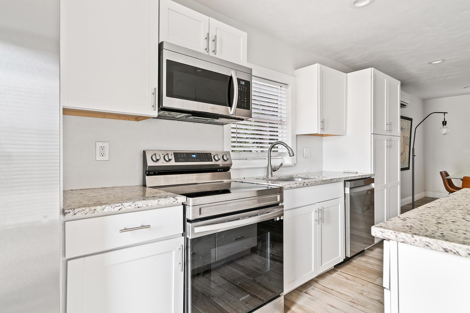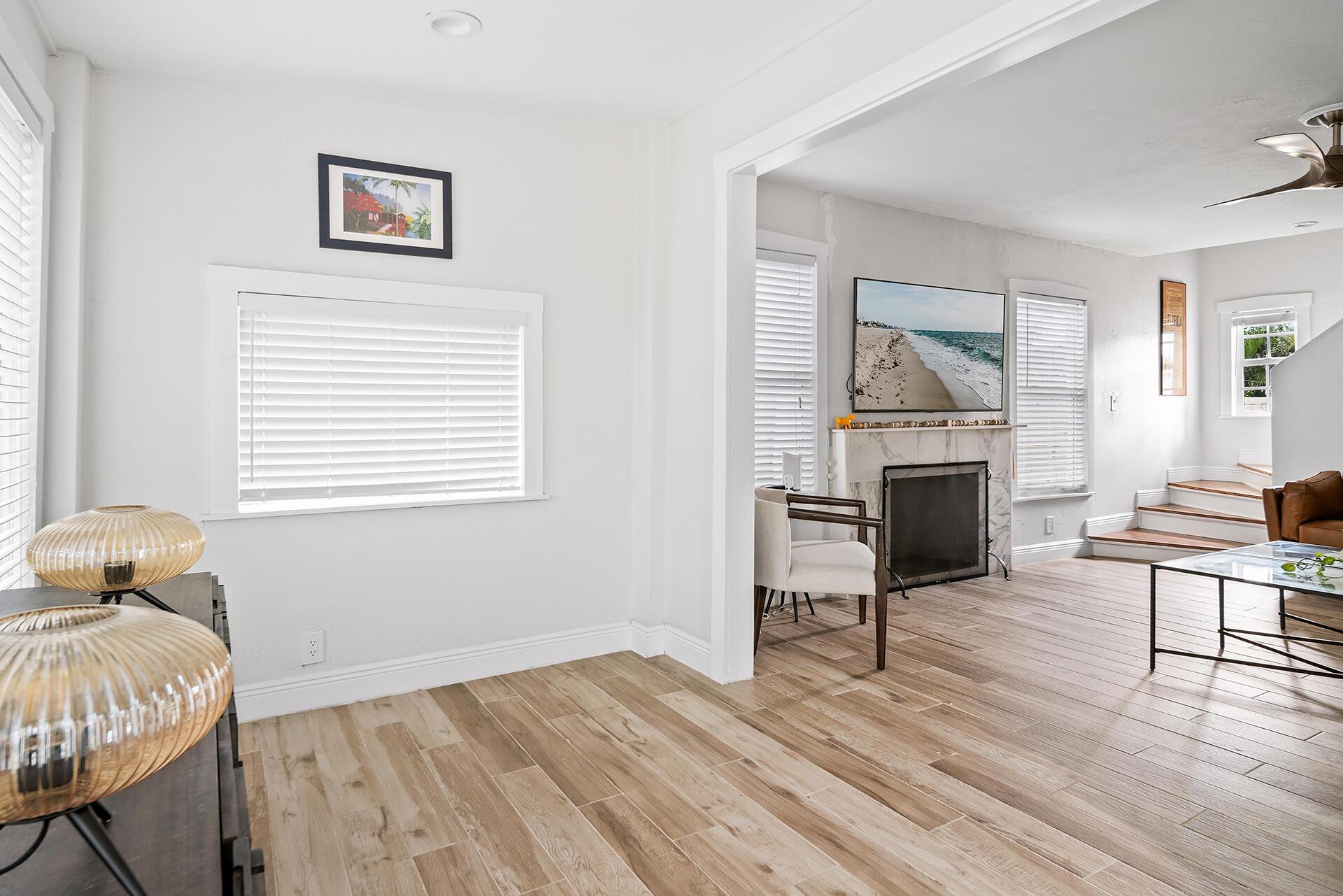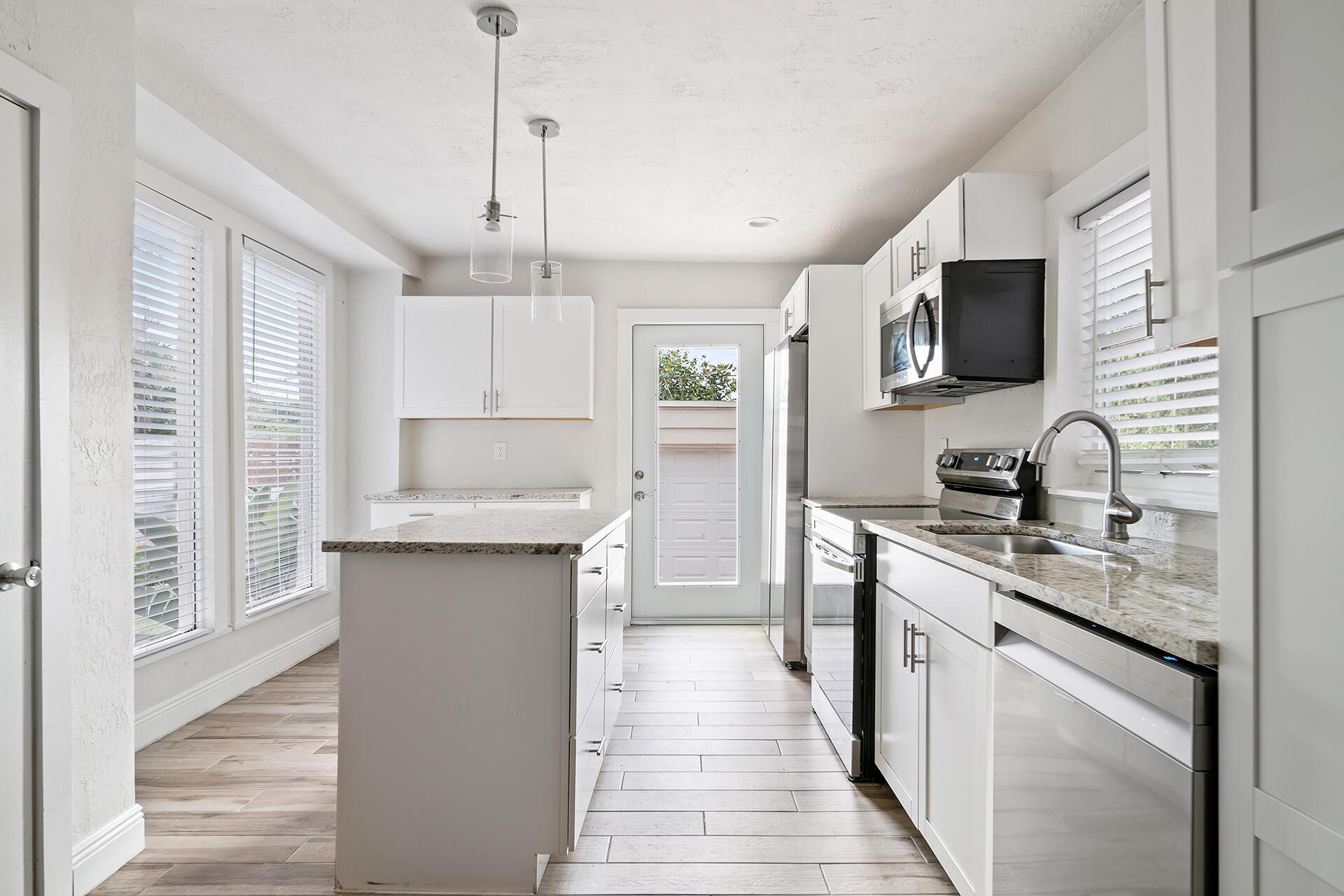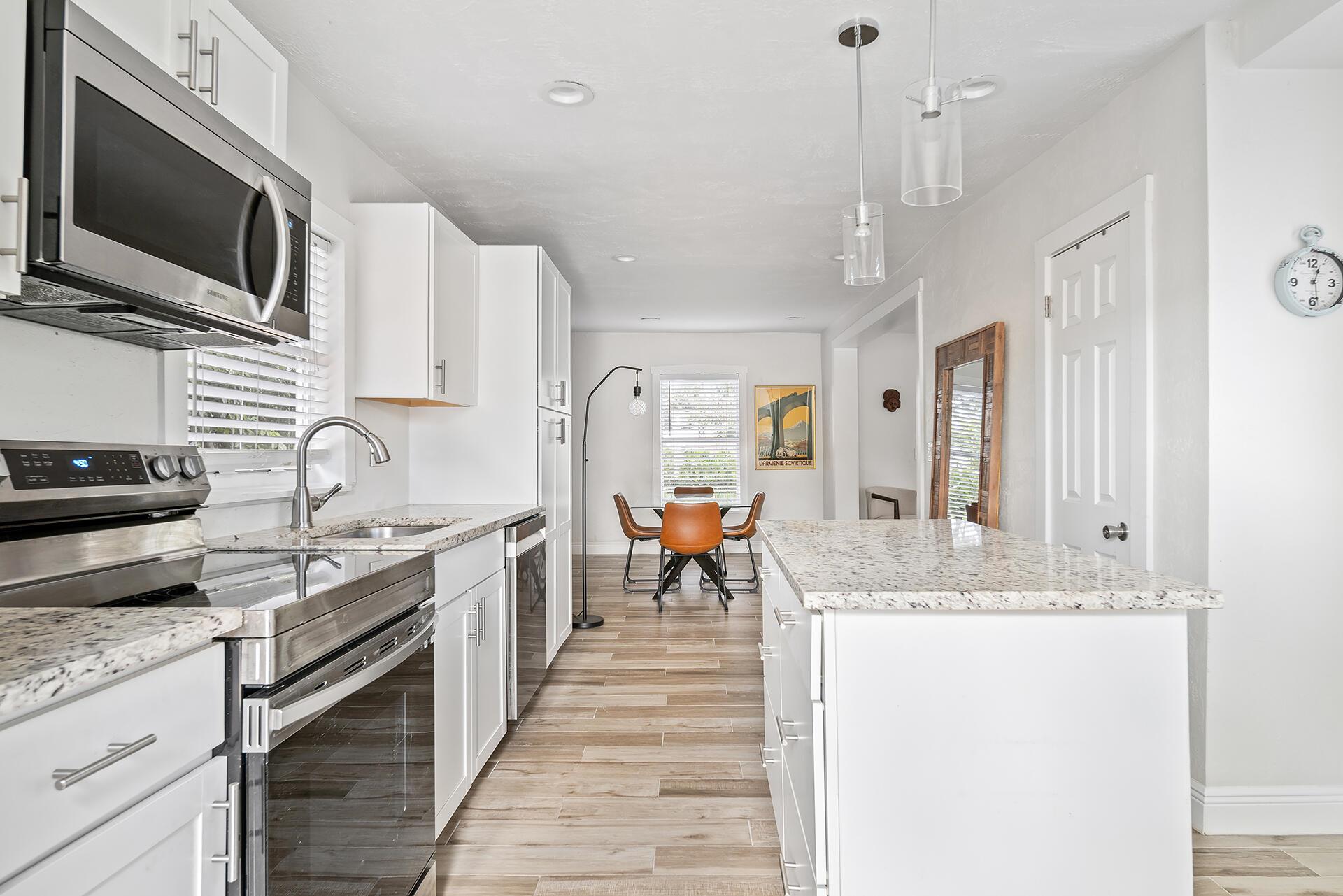 Classic 1920s Spanish Mission home high up in Northwood Hills. Living areas are light and bright. This home enjoys updates including tile flooring, modern fixtures and a gorgeous kitchen with white cabinetry, stainless steel appliances, granite countertops and an island with pendant lighting. There is an updated powder room on the main level for convenience. Upstairs, there are three bedrooms with laminate flooring, floating shelves and new ceiling fans. The bathroom boasts an updated vanity, combination tub and shower with marble surround and glass enclosure. The primary bedroom opens up to a second story balcony.Very rare for a 1920s home, this property has an over-sized two car garage that was added later and provides space for cars and more storage.