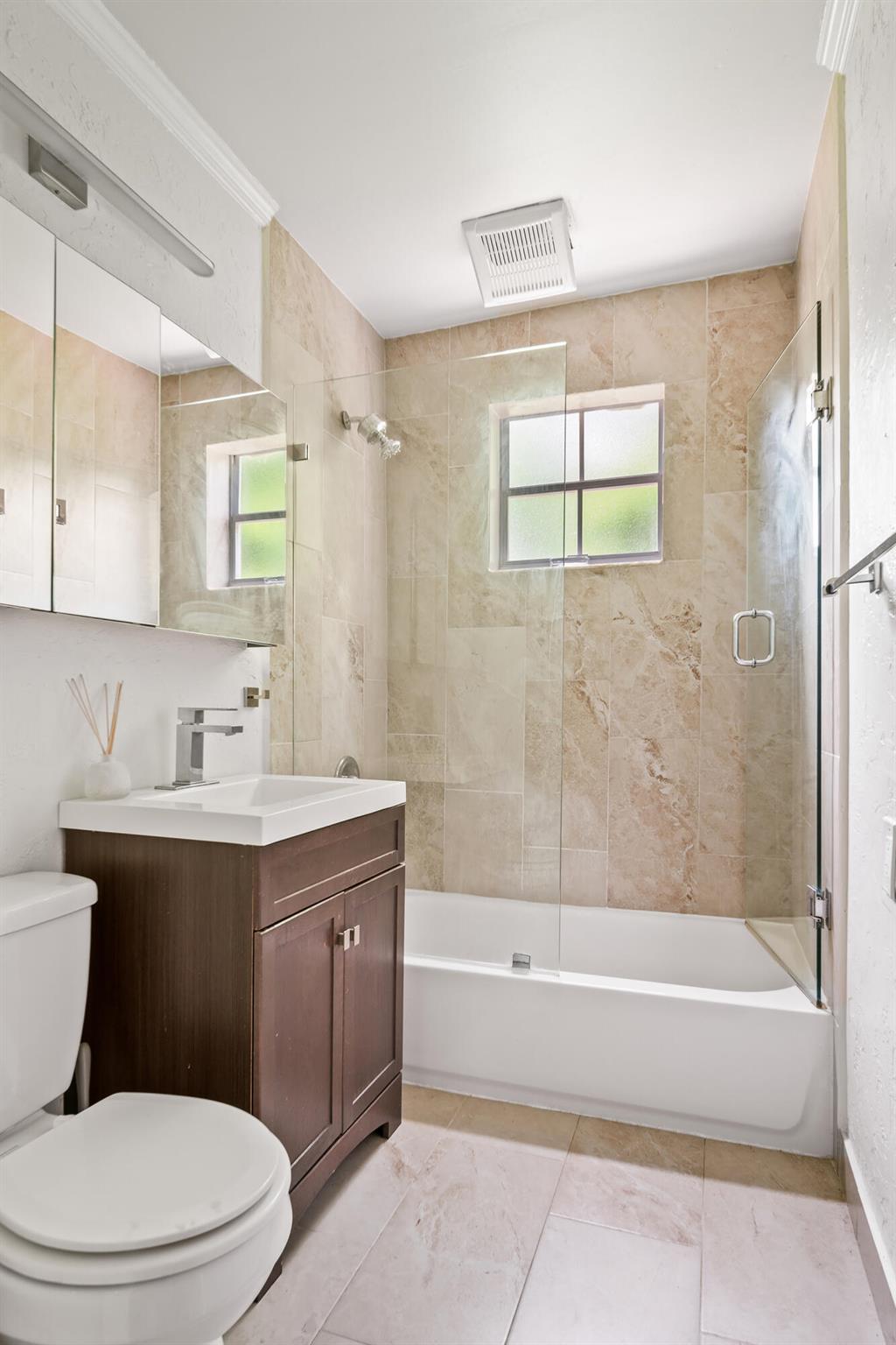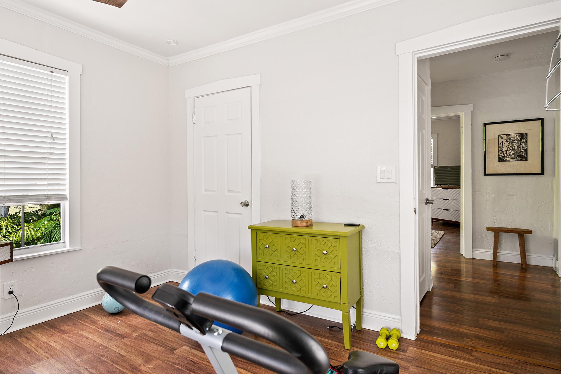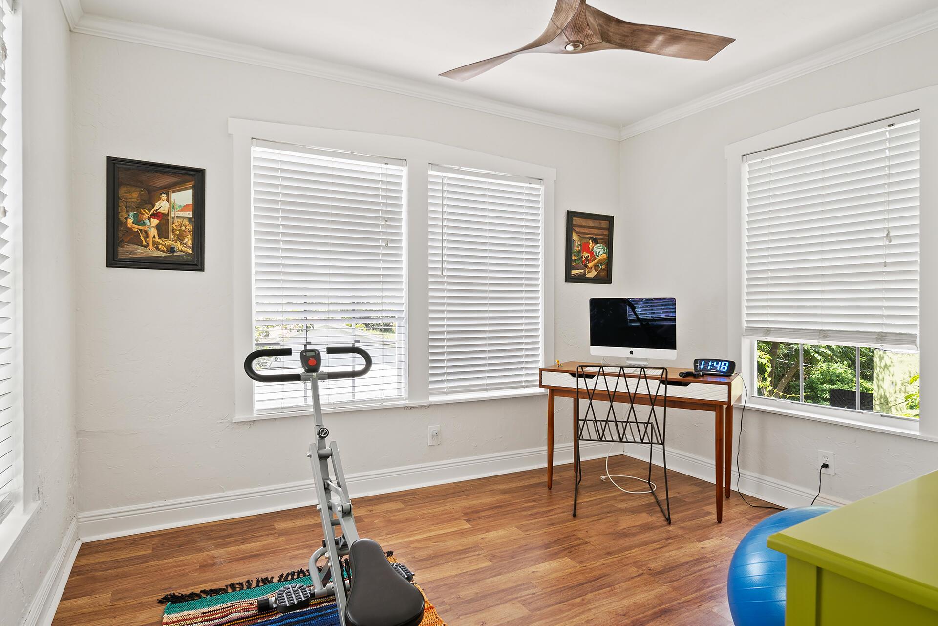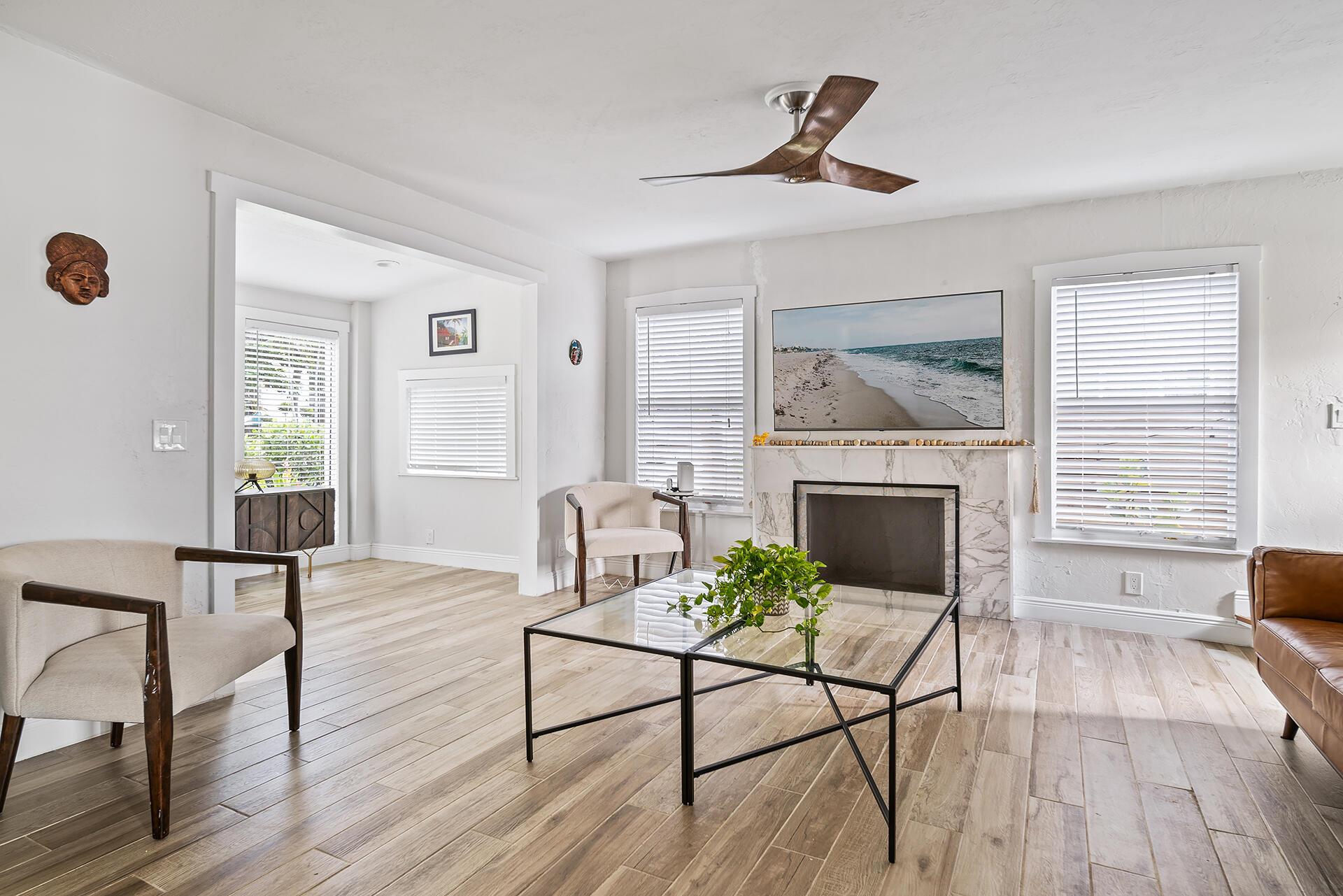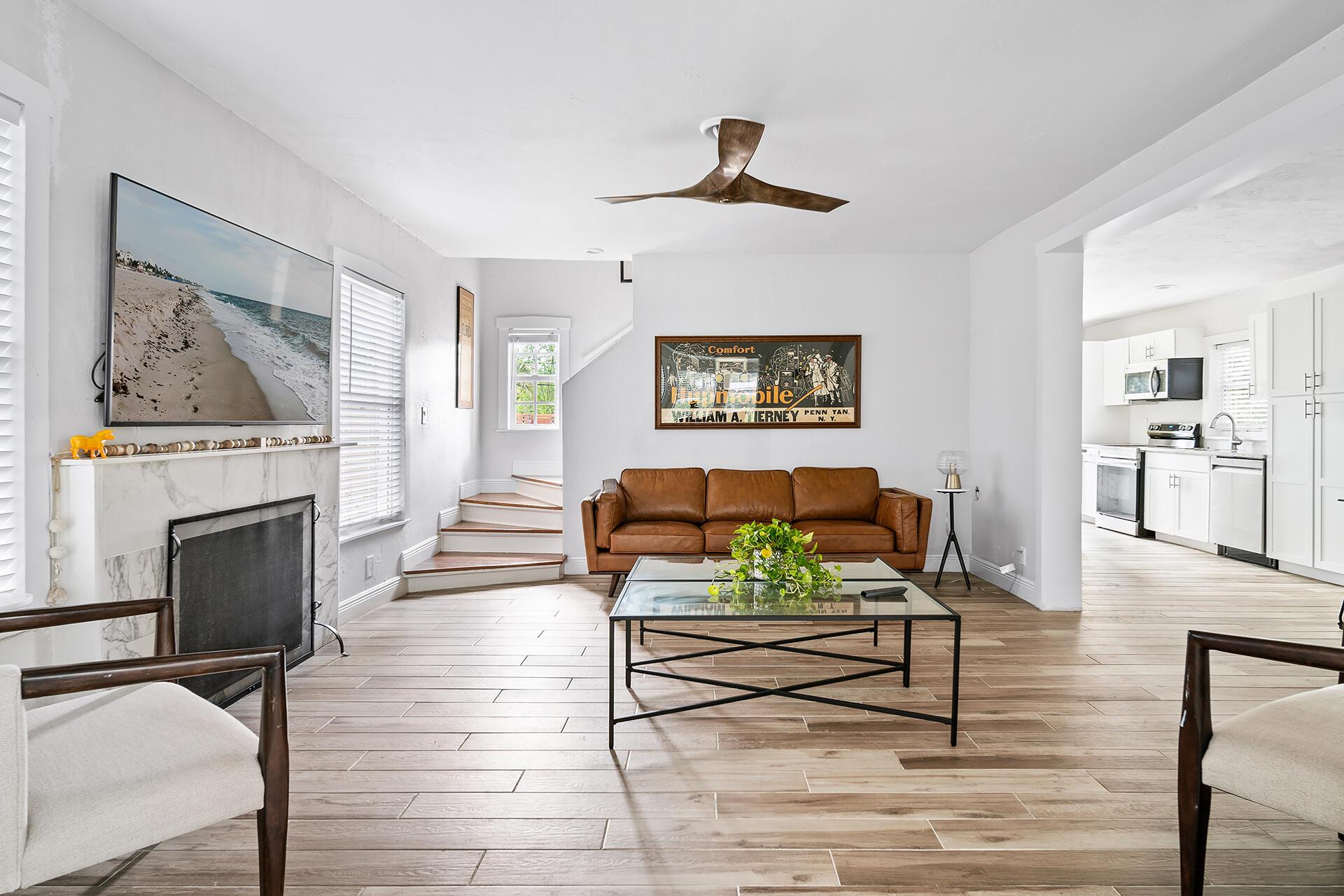 Classic 1920s Spanish Mission home high up in Northwood Hills. Living areas are light and bright. This home enjoys updates including tile flooring, modern fixtures and a gorgeous kitchen with white cabinetry, stainless steel appliances, granite countertops and an island with pendant lighting. There is an updated powder room on the main level for convenience. Upstairs, there are three bedrooms with laminate flooring, floating shelves and new ceiling fans. The bathroom boasts an updated vanity, combination tub and shower with marble surround and glass enclosure. The primary bedroom opens up to a second story balcony.Very rare for a 1920s home, this property has an over-sized two car garage that was added later and provides space for cars and more storage.