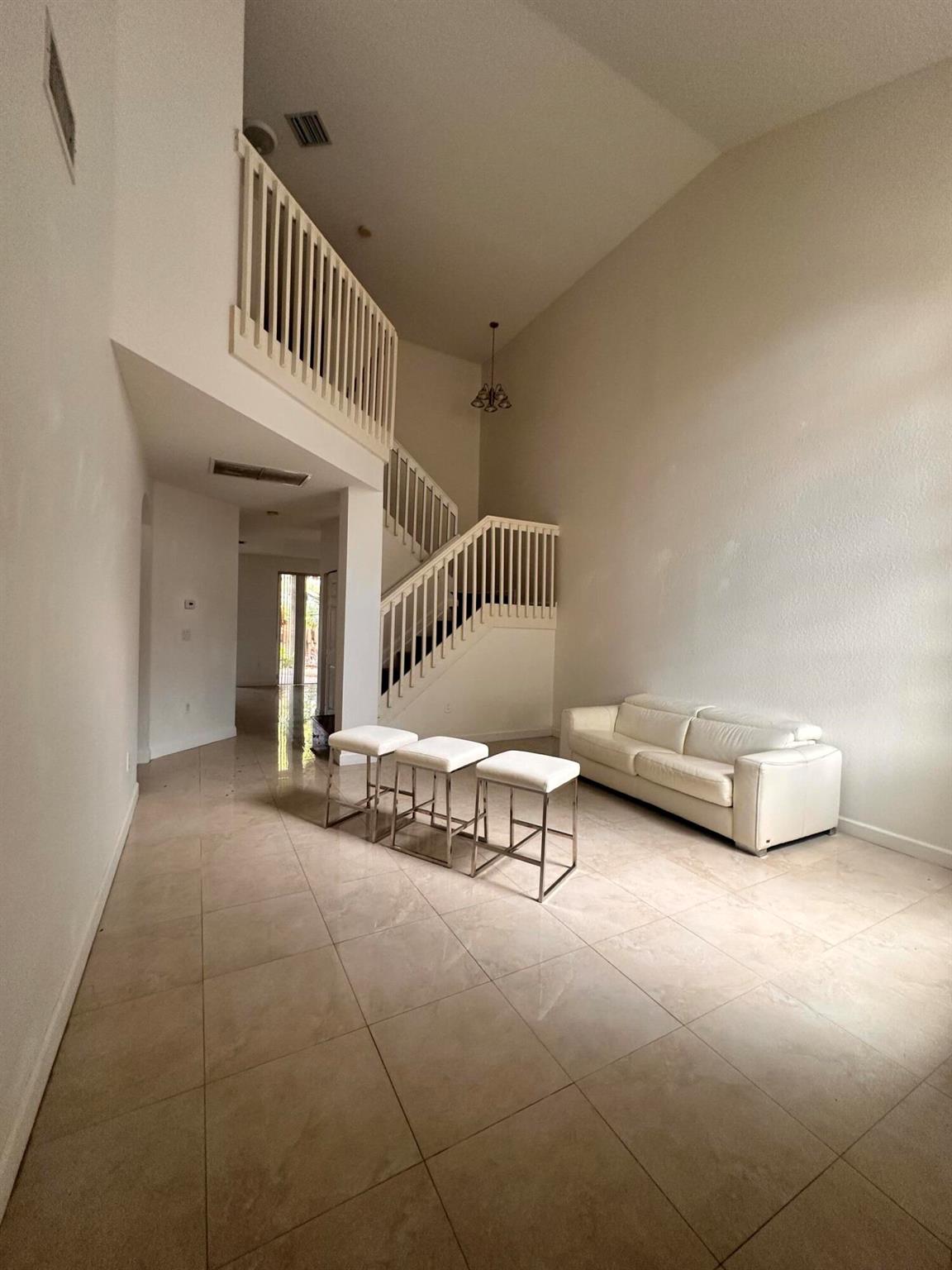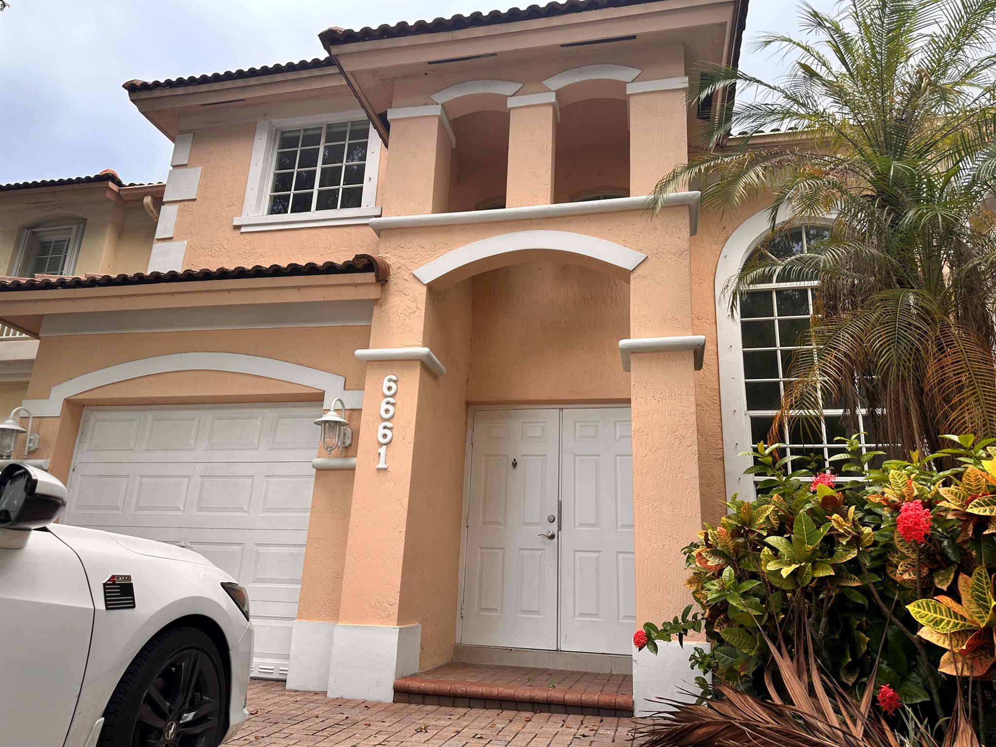 Ready to go, vacant St. Kitts model couch home, third home to the right entering St. Tropez subdivision, right after entering Doral Isles through the residential entrance on 107 Ave. 3 bedrooms, 2 bathrooms upstairs and half a bathroom downstairs, and 1 car garage, tile floors downstairs, wood floors upstairs and on the stairs. High ceilings, generous living areas, kitchen with lots of storage space, large patio with pavers, palm trees and no neighbors in the back, large grass common area behind the wood fence, accessible from your patio. Generous driveway for multiple vehicles. Doral Isles is located near top-rated schools, shopping centers, dining options, and major highways for easy commuting. Community includes swimming pools, fitness center, tennis, soft ball, and more!