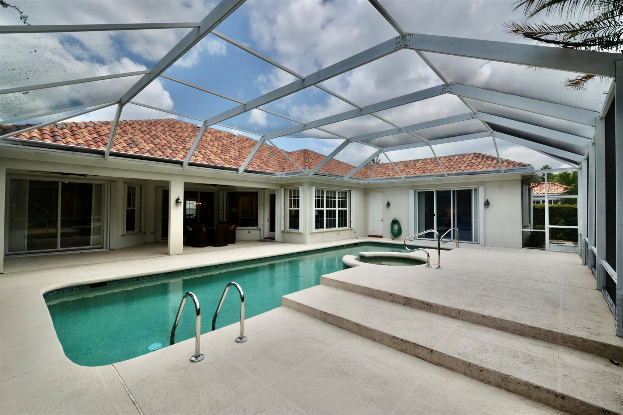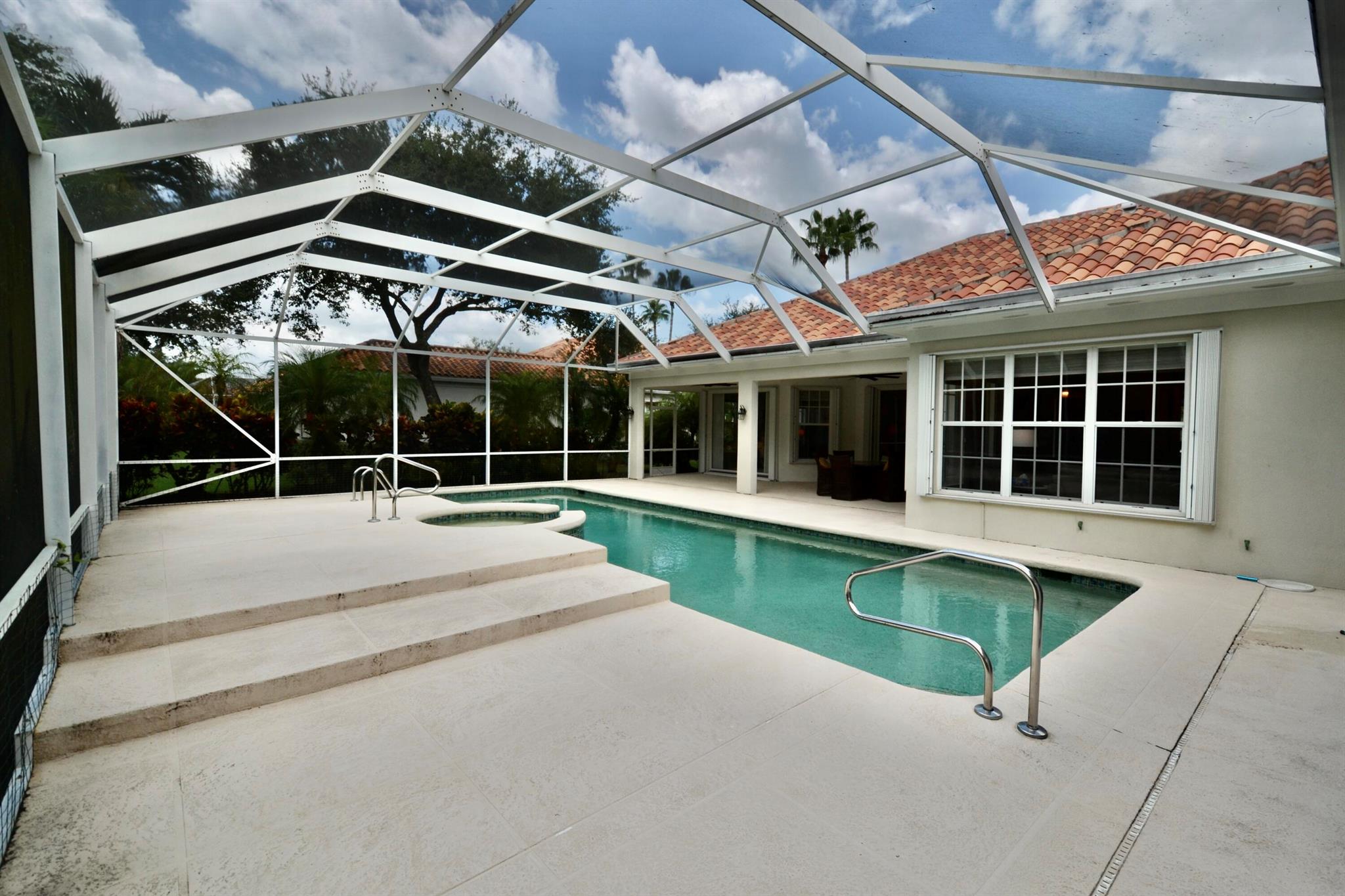 Elevate your living standards in this exceptional 4 bdr, den, 3.5 bath Breakers Pointe home, boasting new hardwood floors in the living, dining, and den areas. The open floor plan is bathed in natural light. The master features a luxurious his/her bath, separate tub/shower, and commodes. Three additional split bedrooms, one ensuite. Oversized screened pool and covered patio. New hurricane shutters. Call listing agent.