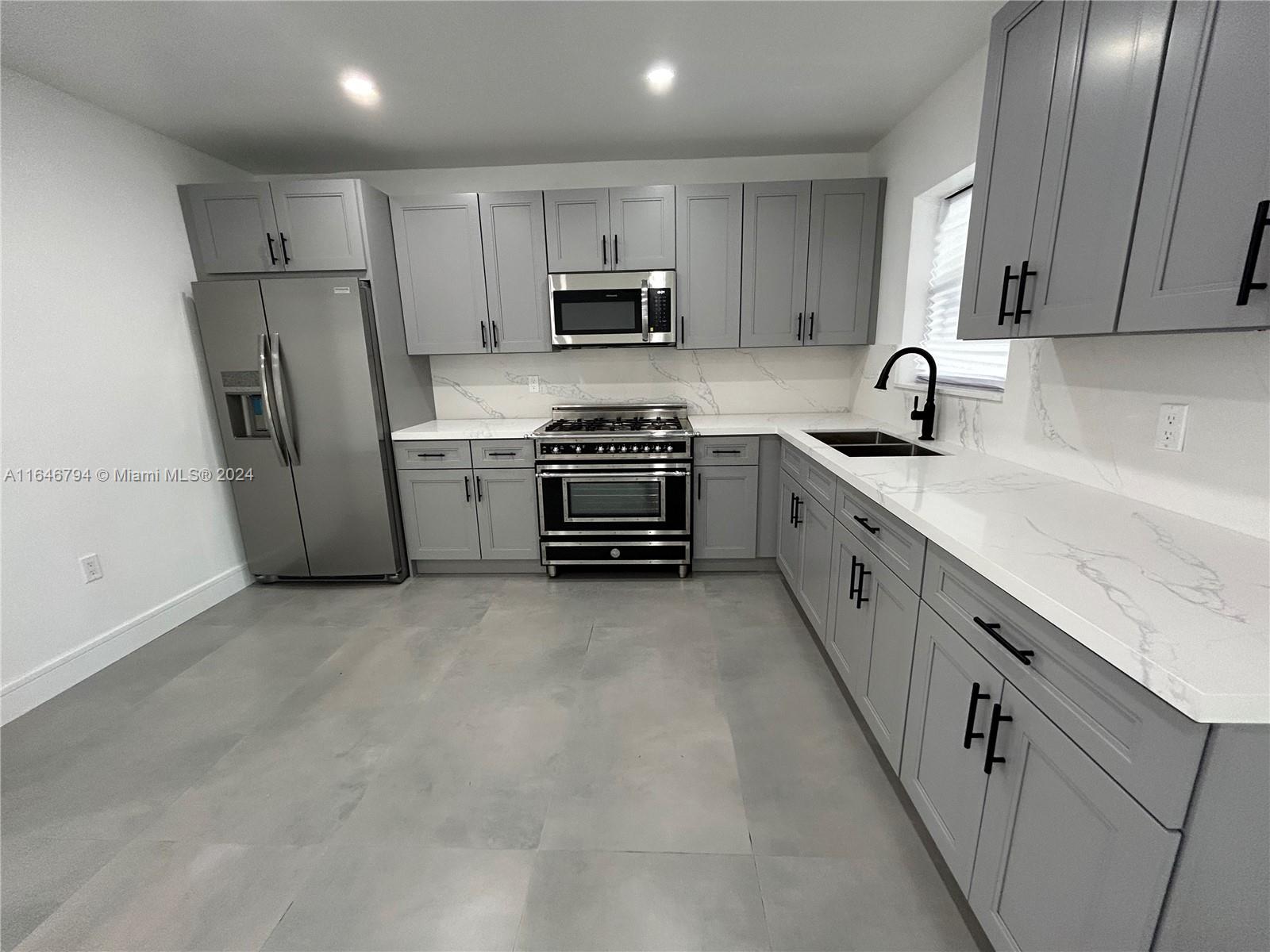 Beautiful property situated in a very quiet & centrally located neighborhood has been tastefully remodeled. Among many upgrades the house has a new roof. The kitchen fully equipped w/ stainless-steel appliances, new cabinets and quartz countertops. Impact sliding doors going into the patio. Updated bathrooms with beautiful tile & new cabinets. Two of the bedrooms have en-suites. The house also features modern tile throughout the house. New floorboards and newly painted interior and exterior. There is a separate utility room with washer/dryer hook up. The circular driveway ensures ample parking for several cars in addition to street parking. The yard is spacious enough to fit a pool with plenty of room leftover for other outdoor entertainment & is completely fenced in.