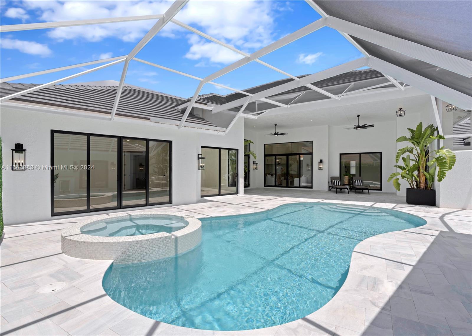 Welcome to the epitome of luxury country club living at Stonebridge CC! Just completed and permitted by Ridge Valley Contracting this BRAND NEW, 4-bedroom home has a guest house and office. Top-of-the-line upgrades include impact windows and doors, a new roof, new AC units, upgraded electrical panels and wiring, a chef kitchen with butler pantry, porcelain wood plank flooring, custom closets, and a new pool/spa with pavers and equipment. The designer kitchen includes a custom range hood, Bosch appliances, a Jenn air panel ready refrigerator, 2 dishwashers, 2 sinks, an ice maker, a wine cooler, a drawer microwave, a double wall oven, and an oversized island. Located on the 4th hole this home has the most beautiful views of the golf course and lake. Stonebridge CC has a mandatory membership.