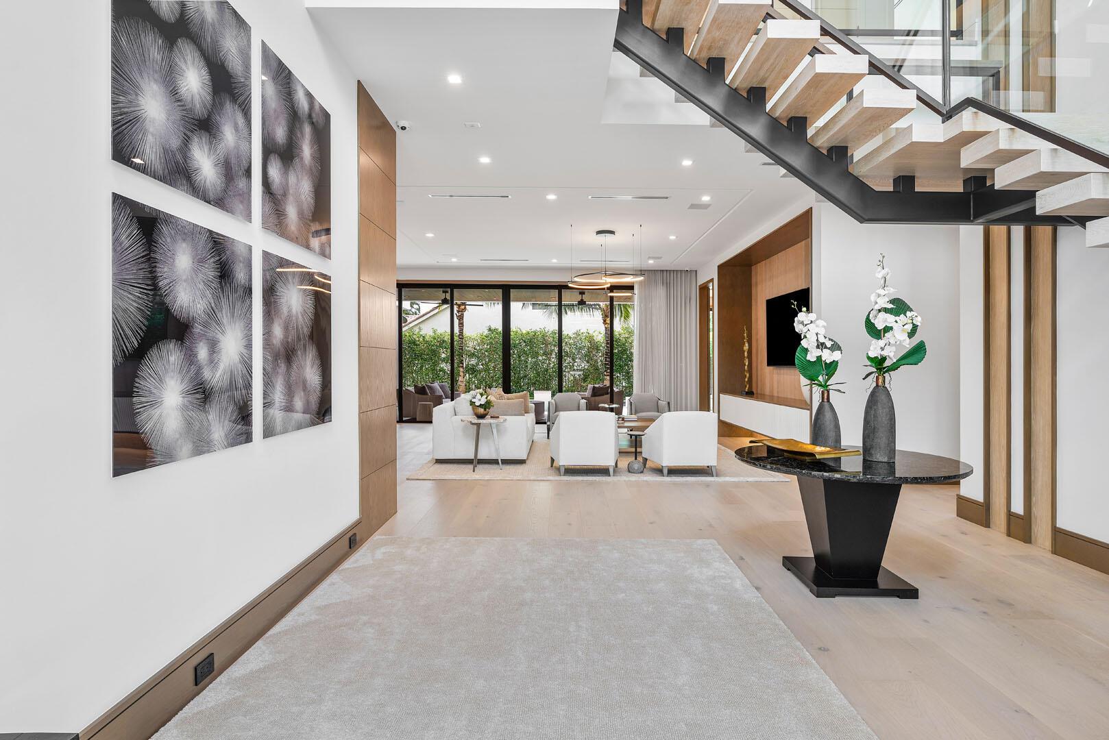 254 Fern Palm Road is an exceptional 5-bedroom Signature Estate built by renowned SRD Building Corp, offering 6,635 sf of contemporary, natural glam living on a corner interior lot in the Royal Palm Yacht & Country Club. An in-ground fountain styles the modern entry to a grand foyer, bathed in natural light via a glass-paneled entry door and double-height windows. European white oak floors flow throughout. Exquisite details include the stunning, dual-tone custom kitchen cabinetry, a large porcelain kitchen island, an equipped wet bar, a temperature-controlled wine room, fully collapsing sliding glass doors, Crestron smart home tech, and a full security system.