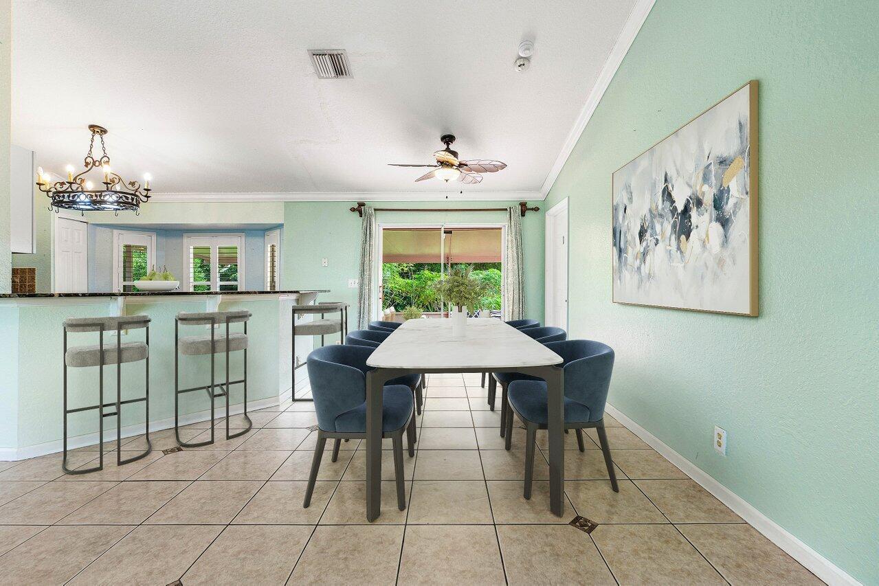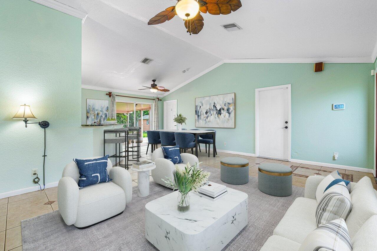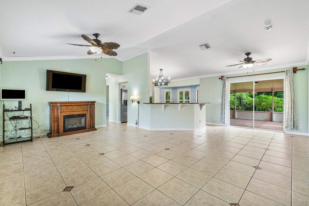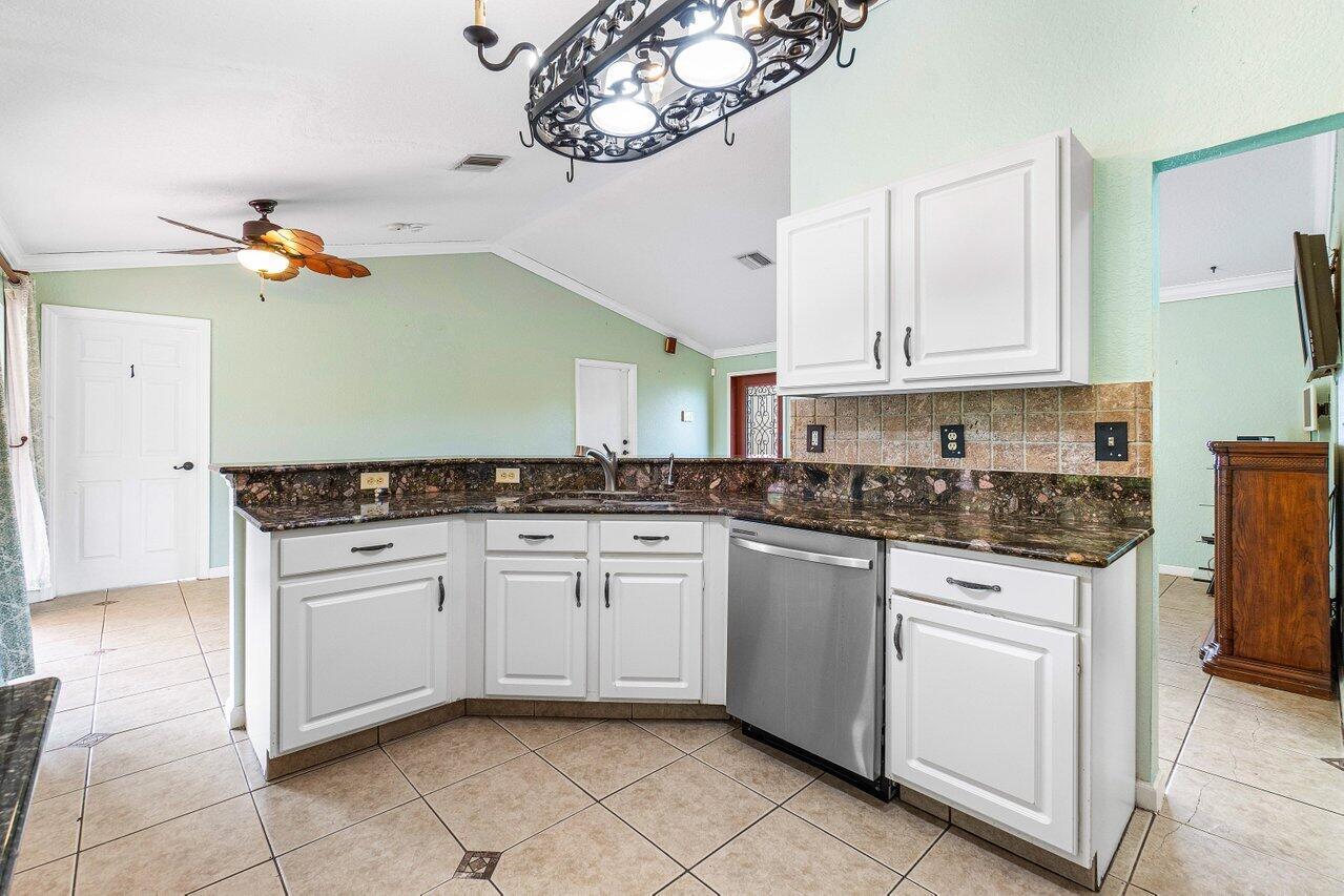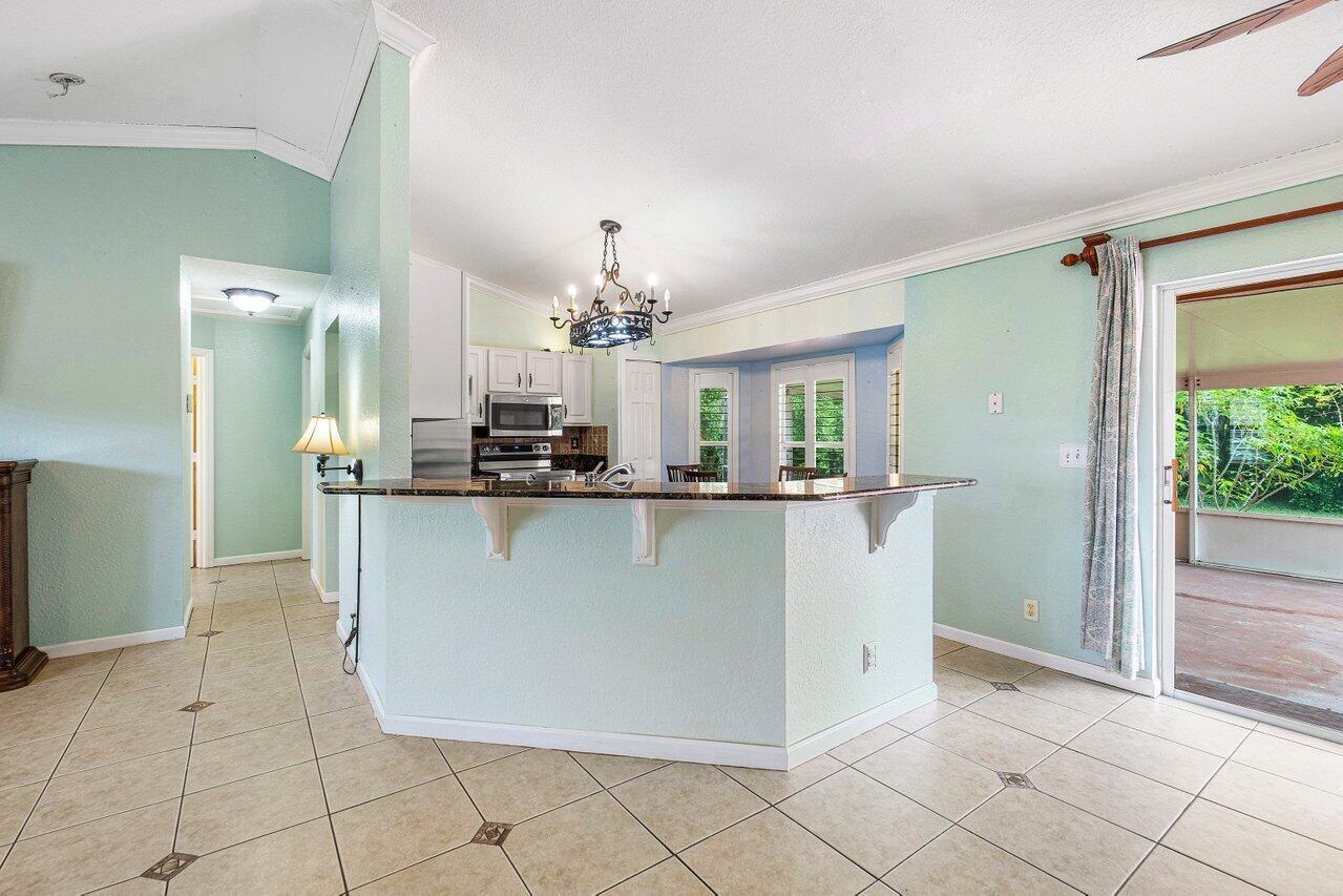 WELCOME HOME to serenity and (1.19) acres of country living! This beautiful CBS home features (3) bedrooms, (2) baths, (2) car garage, brand new 2024 roof, upgrades throughout and this beauty defines great commuting location! ENTERING you will discover that this gem is resting on a plush lot to include a vast food forest and the patio brings you into the front door where you are greeted by a abundance of natural lighting, 11' vaulted ceiling, crown molding, chair railing and plantation shutters and tile throughout. PASSING THROUGH you will find outstanding features such as a totally renovated kitchen boasting granite countertops, stainless steel appliance package, pantry, three person bar and lovely breakfast nook with a bay window overlooking the green space. And hello master (CLICK)