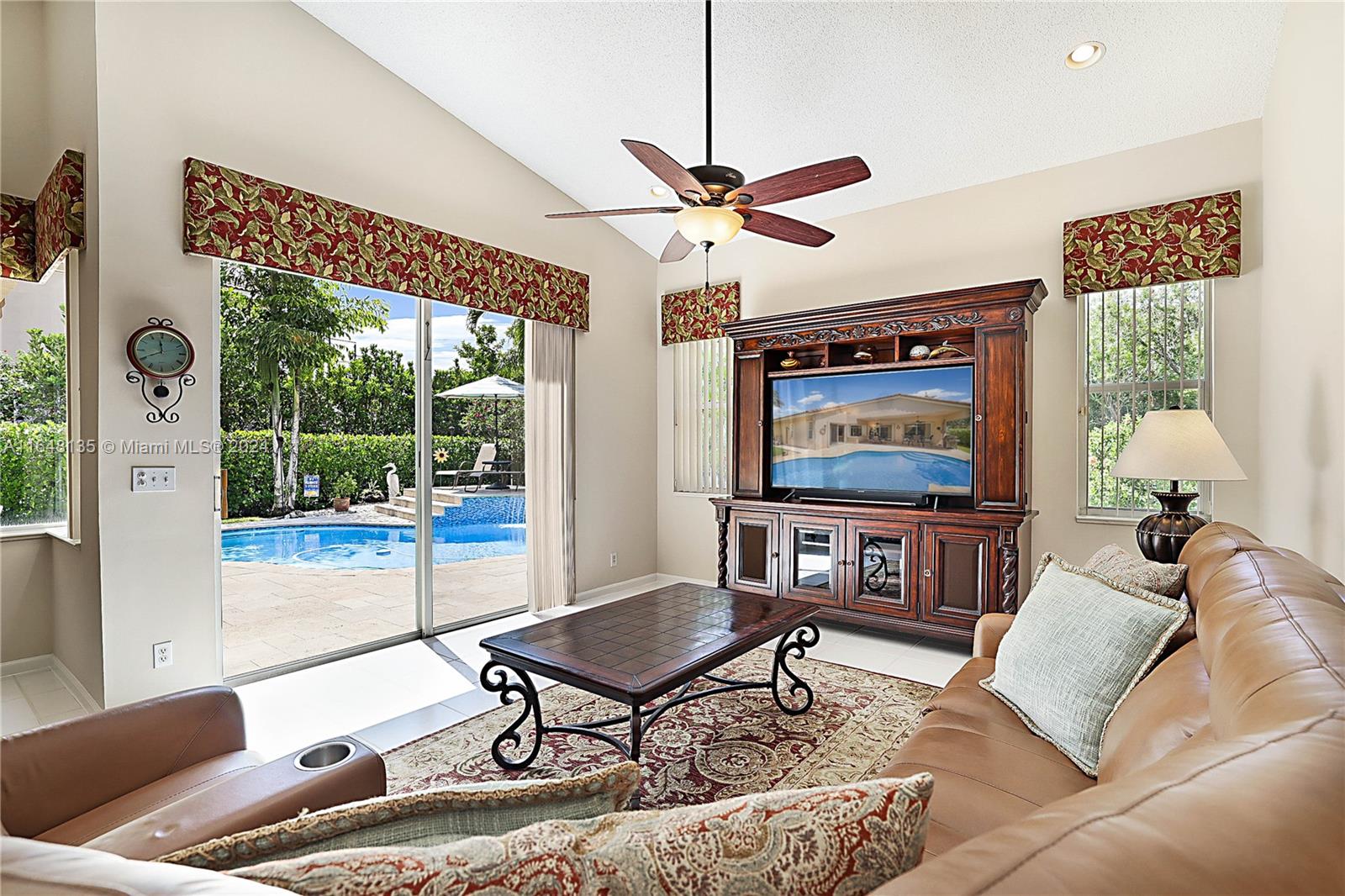 Located in the highly desired community of Kensington Glen and situated on a prime 10,487sq lot, located on a cul-de-sac with tranquil pool and wide water views! This 4 bedroom 3 bathroom home is immaculate! Enter through your covered lanai through the double doors and once you enter you are immediately greeted by the natural lighting, vaulted ceiling and expansive open triple split floor plan. Formal dining room, living rooms. Primary suite features two large walk-in closets, volume tray ceiling and spacious en-suite bath w/ dual sinks, soaking tub and shower. The kitchen is tastefully upgraded & has plenty of counter space and overlooks the breakfast nook & family rooms. Roof 2016. Accordion Shutters. 2 car garage. Walkable to parks & schools & much more!