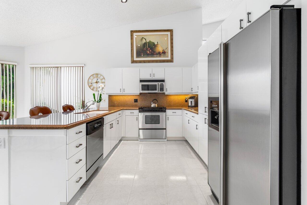 Step into this pristine 3-bedroom, 2-bath gem in the exclusive Villa del Sol community. Boasting soaring ceilings and an abundance of natural light, this residence exudes a light, bright ambiance that welcomes you in and makes every day feel like a sunny getaway.The spacious kitchen is a culinary haven, offering ample storage and stainless-steel appliances. The large kitchen windows showcase the gorgeous garden view and create the most serene backdrop for birdwatching or sipping morning coffee. One of the few homes in the subdivision with an in-home laundry setup, this residence comes with a brand new washer and dryer. Freshly painted interiors add to the home's immaculate condition.