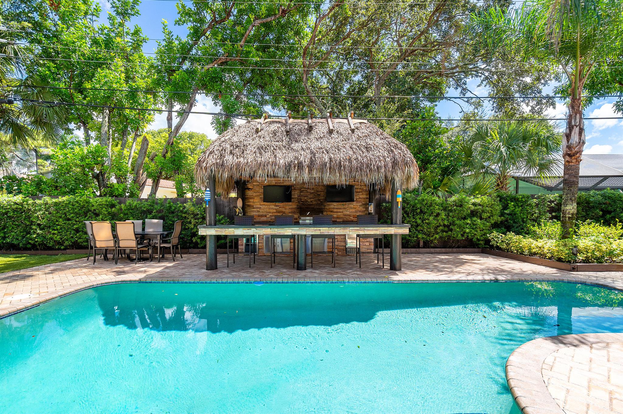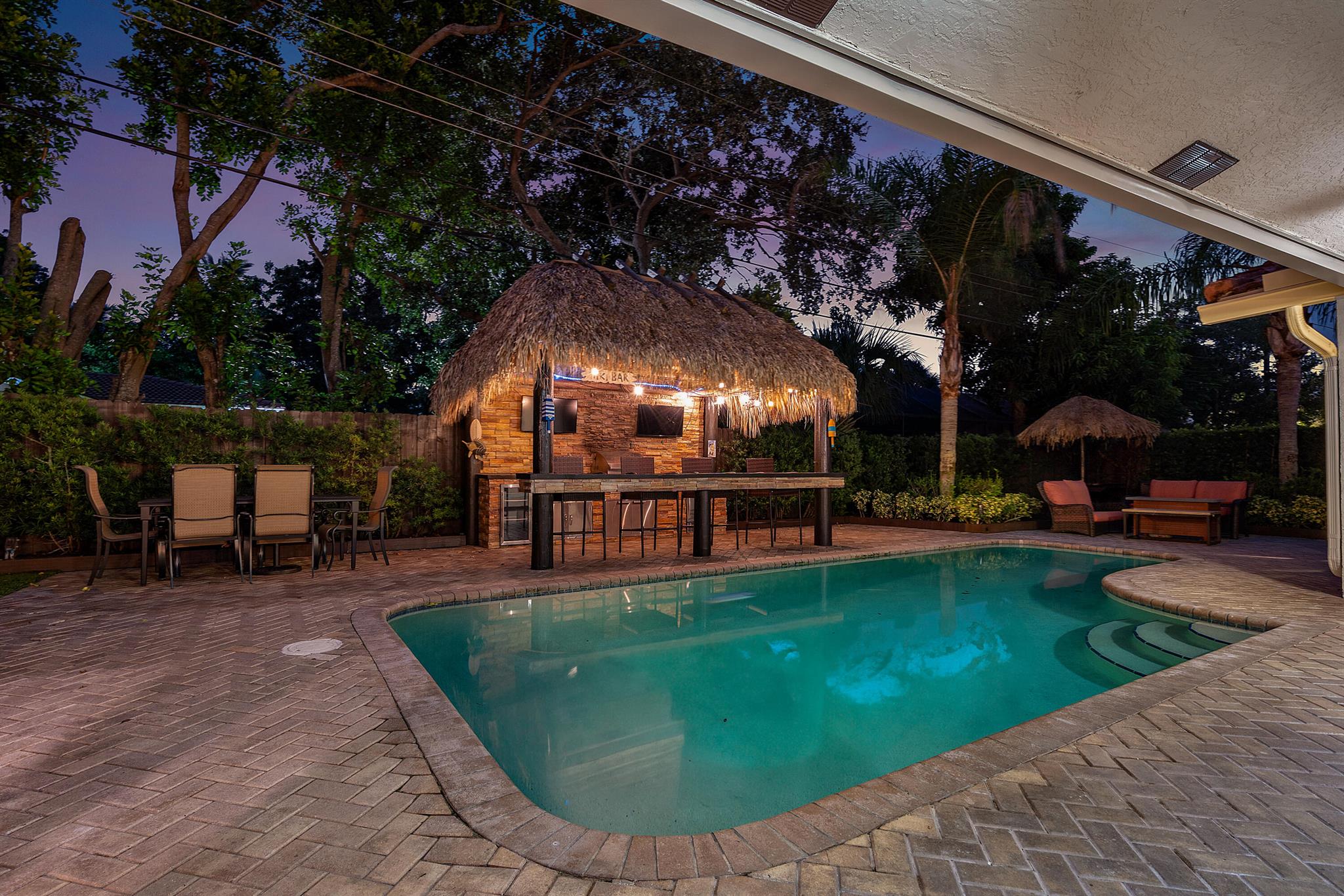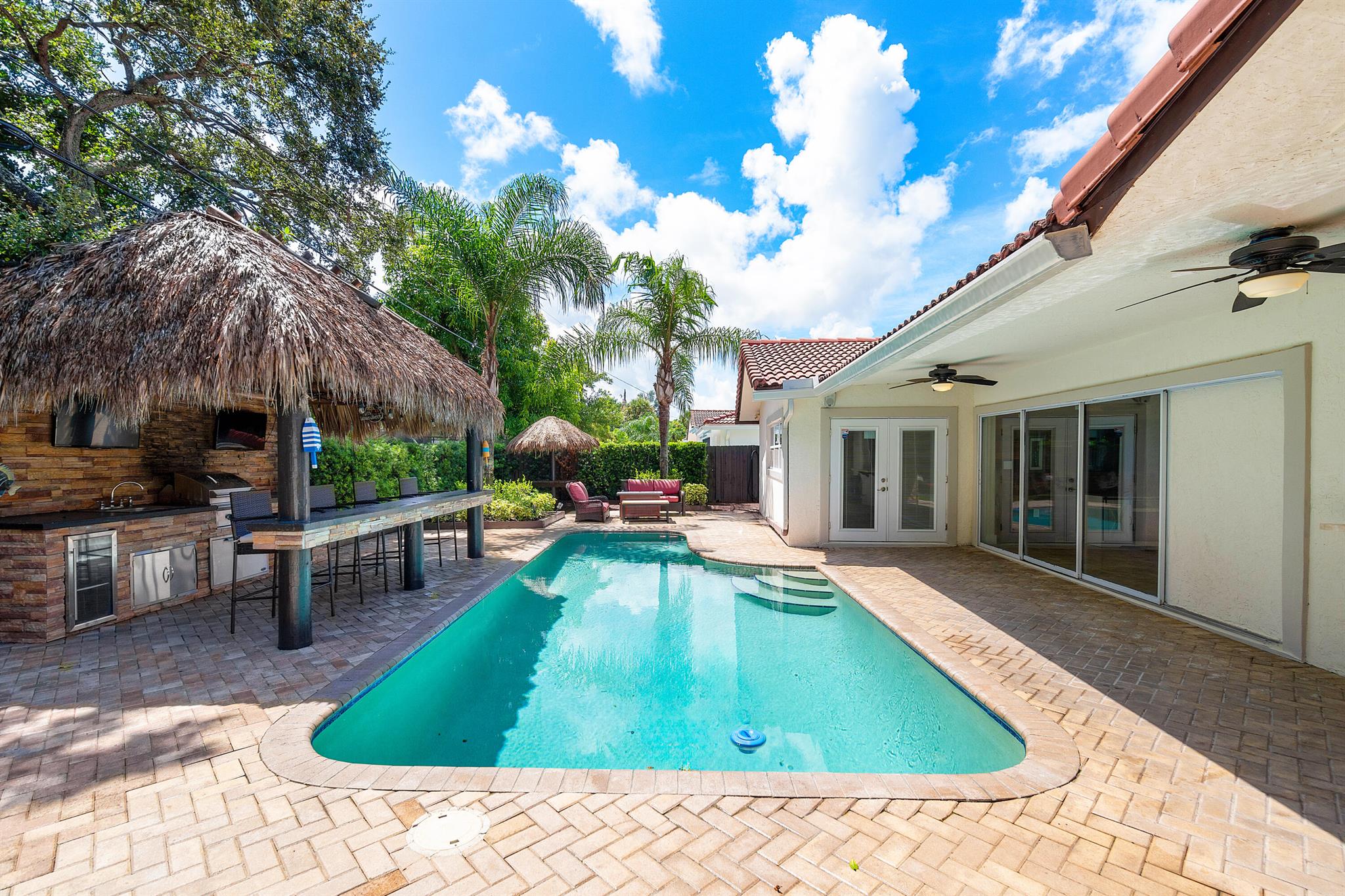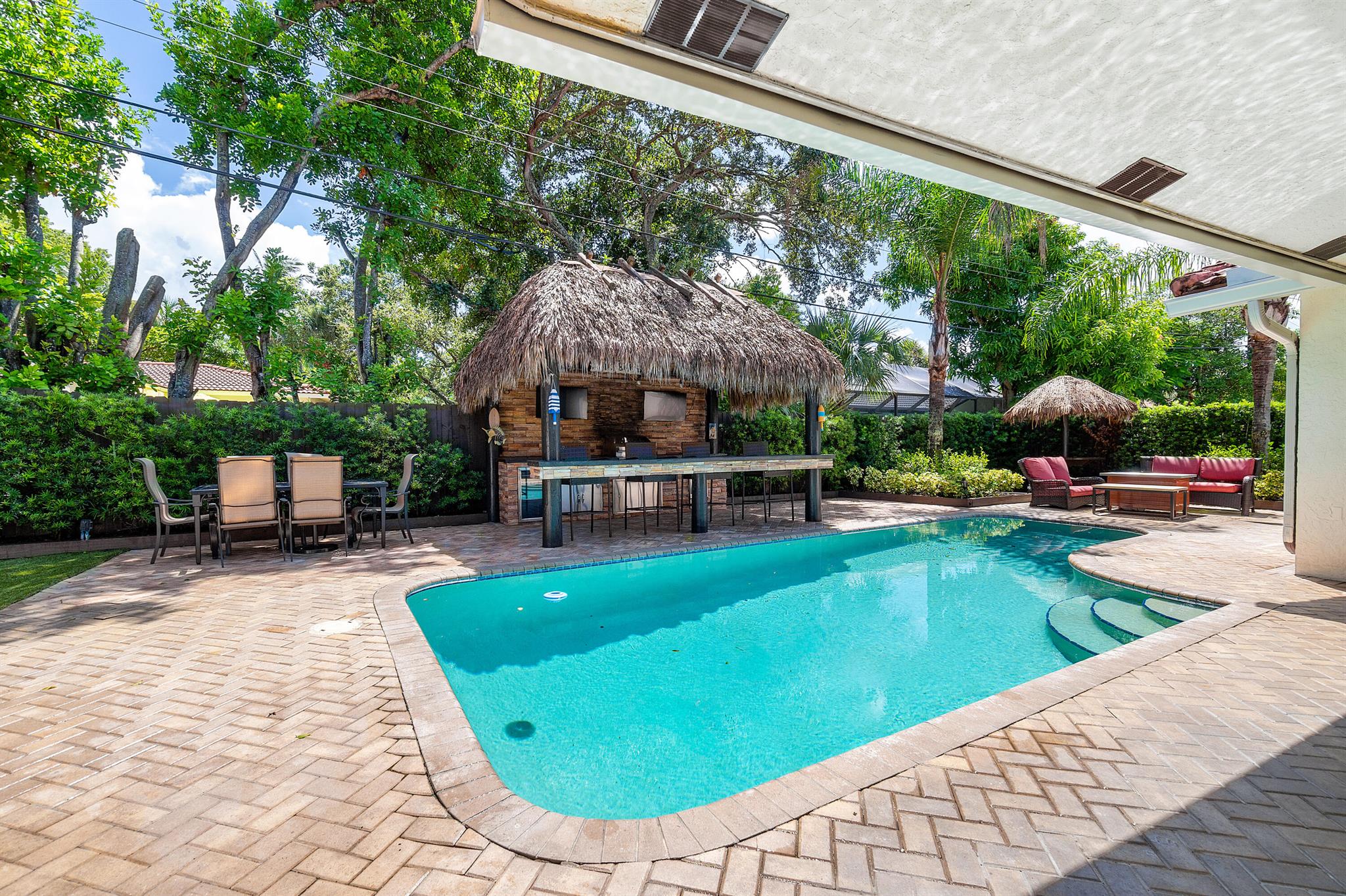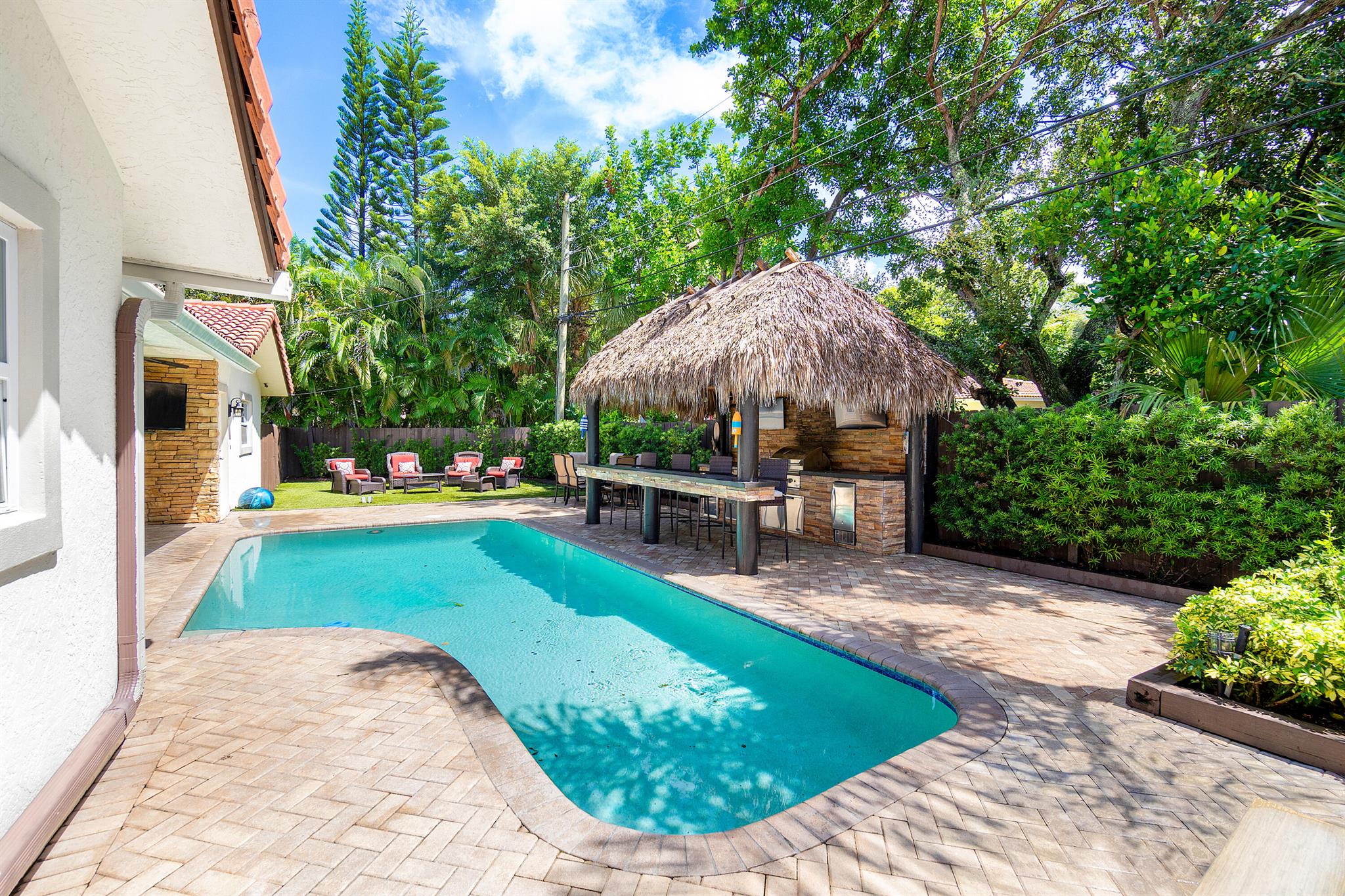 This East Boca Gem sited on an oversized 10,000 SF Lot is now available! You are greeted be a beautiful facade with a private, ultra-large circular paved driveway, stacked stone finishes and lush landscaping. Tons of natural light, updated kitchen with stone countertops, tons of cabinet and storage space and Stainles Steel appliances. Custom trims & coffered ceilings throughout, Resort style backyard with Southern exposure for sun all day long! Heated pool and great outdoor living spaces offer you the South Florida lifestyle you're looking for. Amazing outdoor tiki bar with a built-in summer kitchen, perfect for entertaining and outdoor security system in place. You absolutely cannot beat this location in the Tunison Palms / Old Floresta area, highly desirable, historic