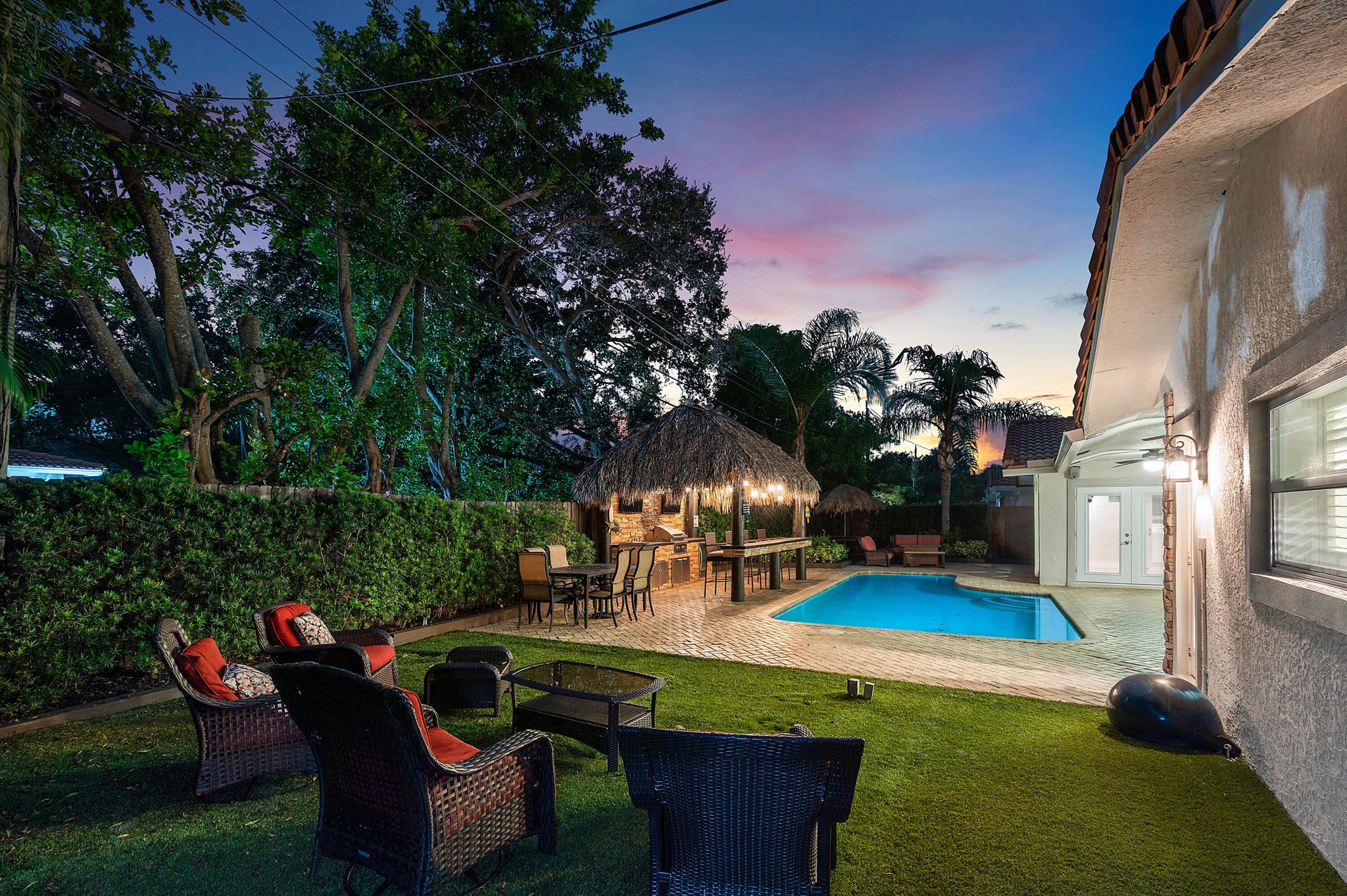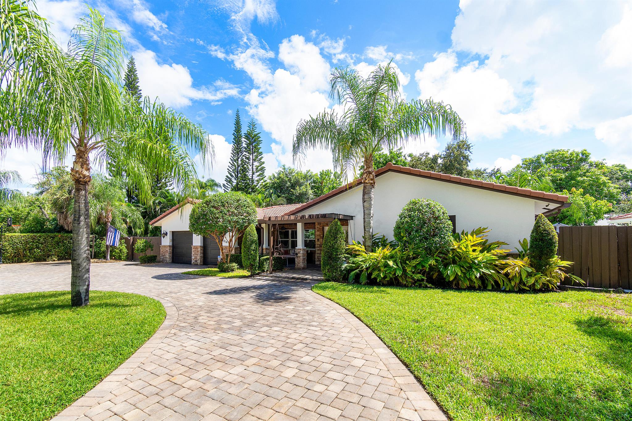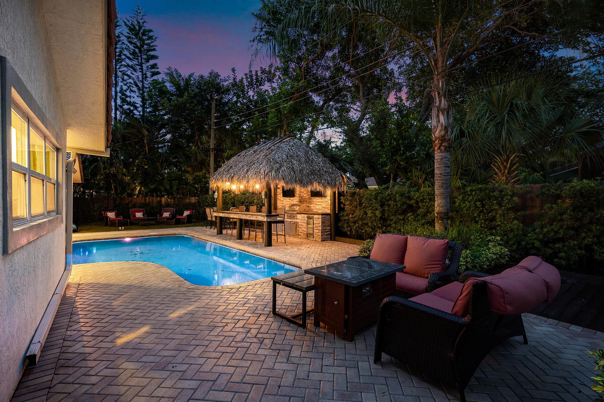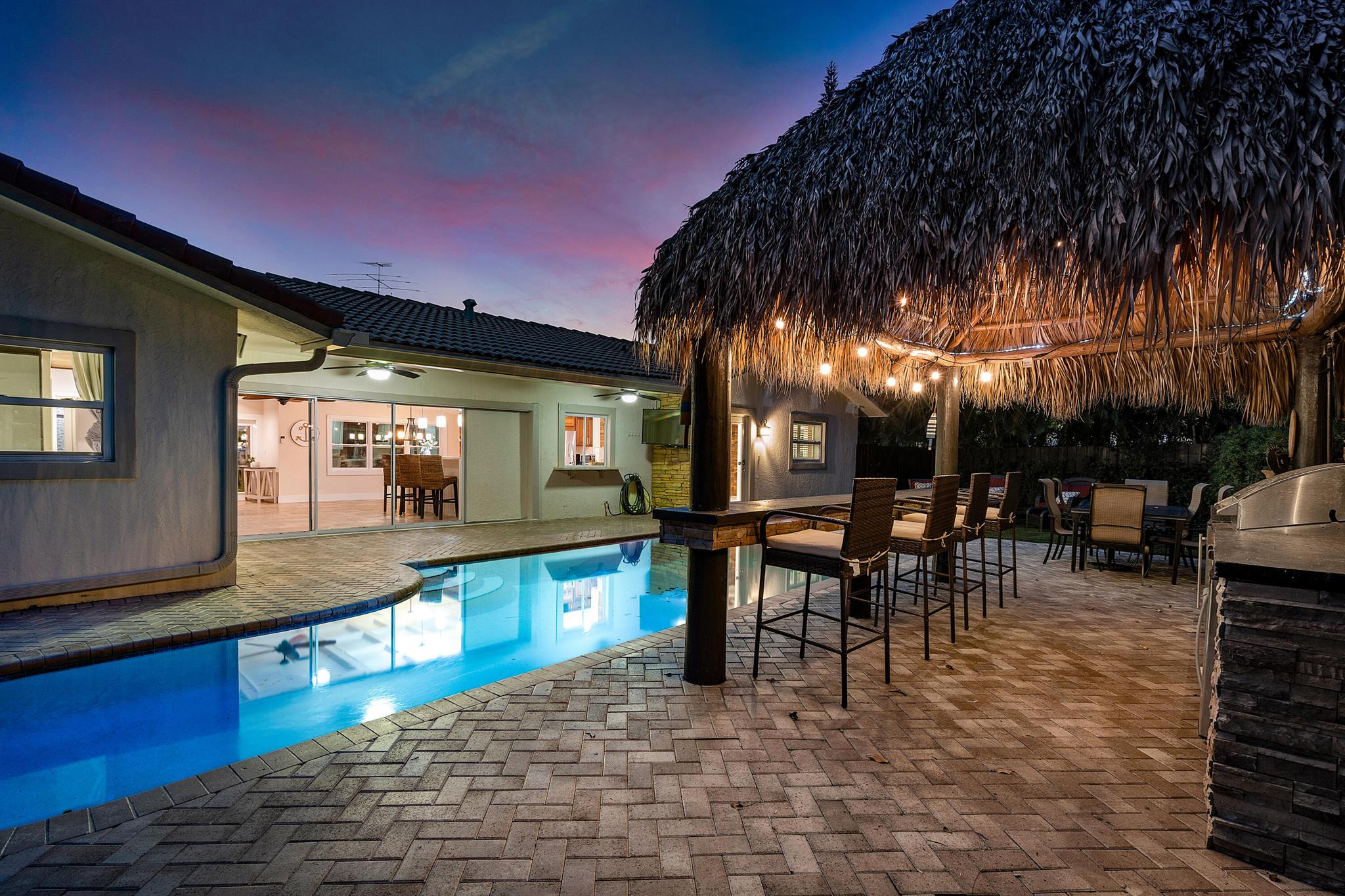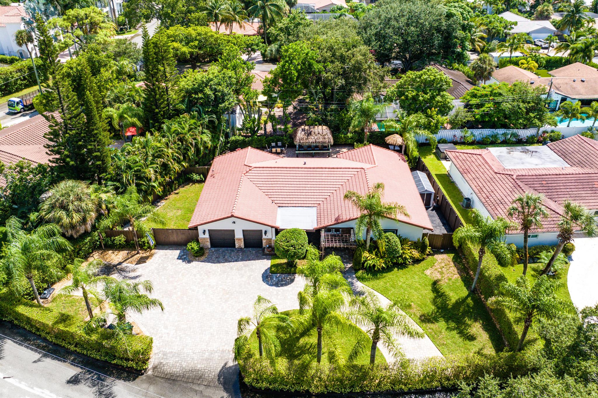 This East Boca Gem sited on an oversized 10,000 SF Lot is now available! You are greeted be a beautiful facade with a private, ultra-large circular paved driveway, stacked stone finishes and lush landscaping. Tons of natural light, updated kitchen with stone countertops, tons of cabinet and storage space and Stainles Steel appliances. Custom trims & coffered ceilings throughout, Resort style backyard with Southern exposure for sun all day long! Heated pool and great outdoor living spaces offer you the South Florida lifestyle you're looking for. Amazing outdoor tiki bar with a built-in summer kitchen, perfect for entertaining and outdoor security system in place. You absolutely cannot beat this location in the Tunison Palms / Old Floresta area, highly desirable, historic