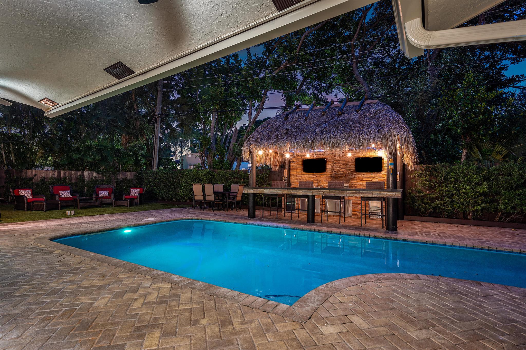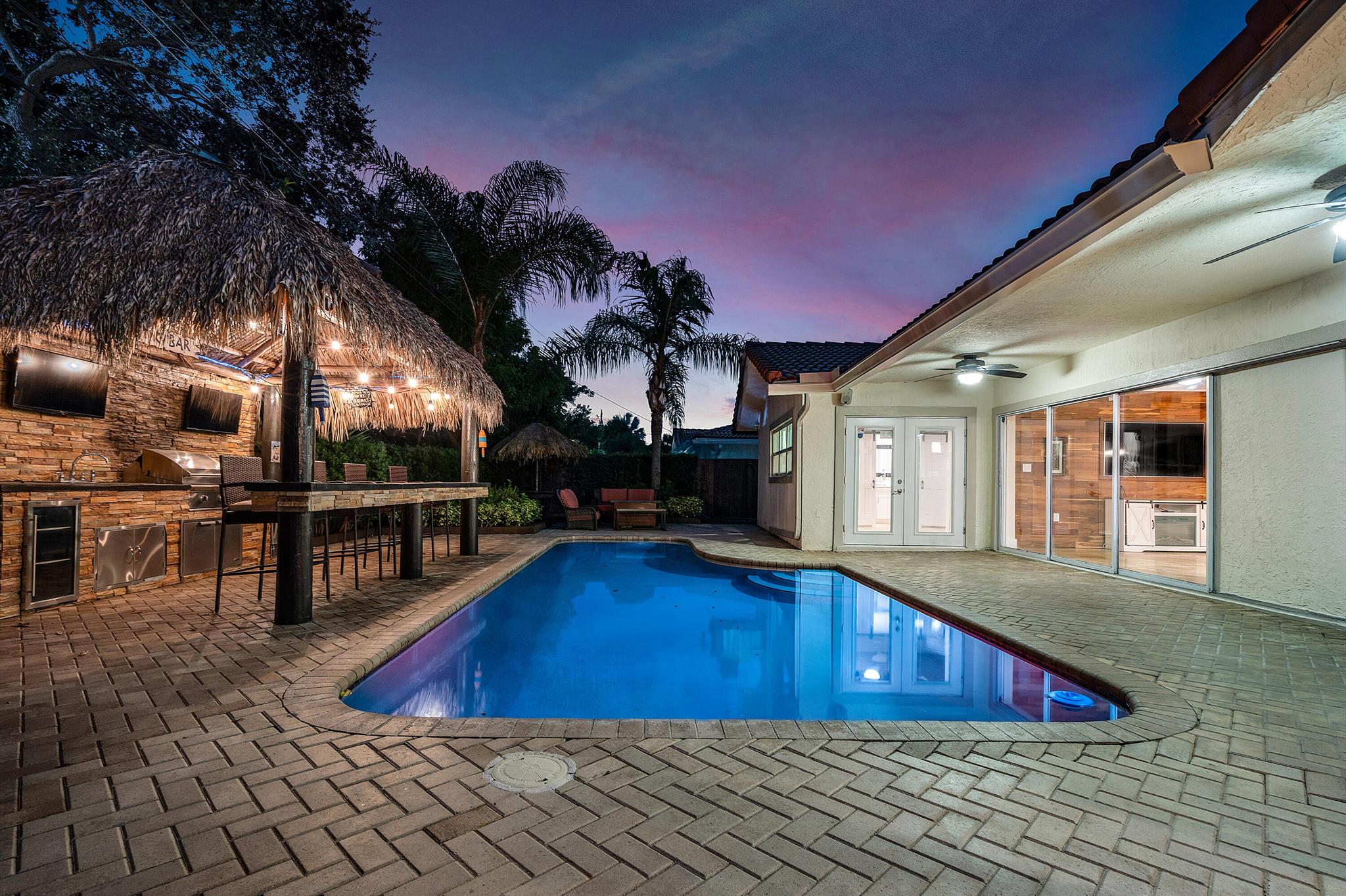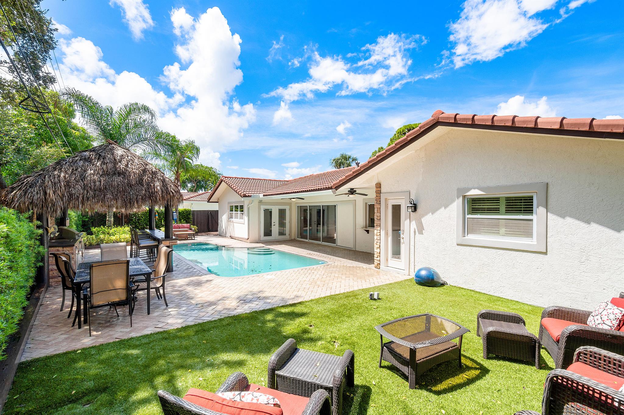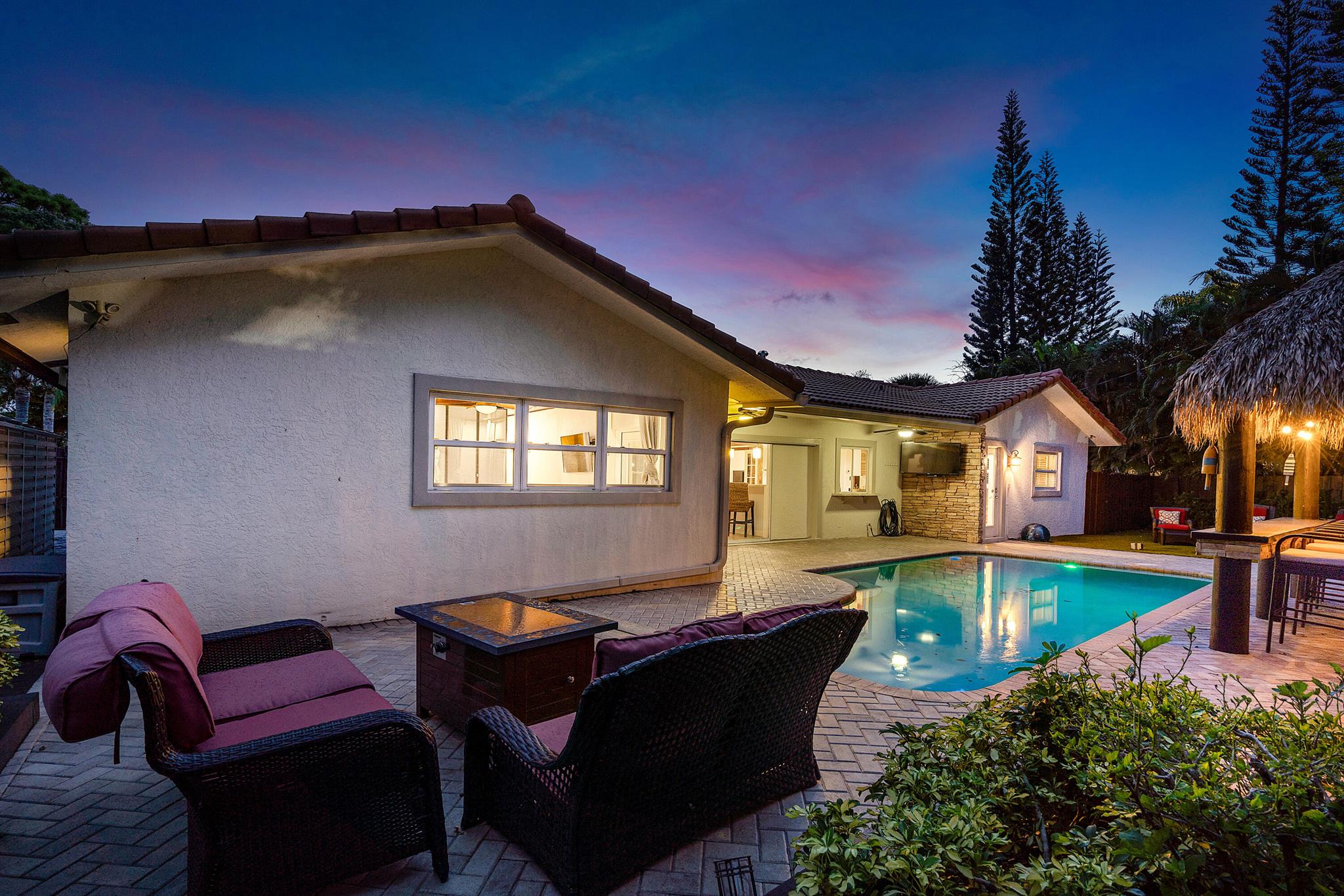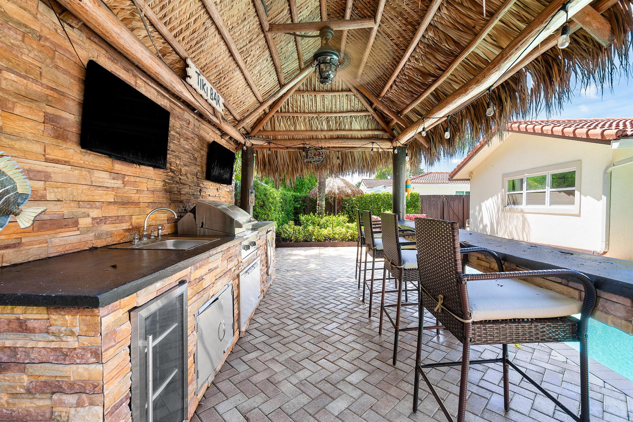 This East Boca Gem sited on an oversized 10,000 SF Lot is now available! You are greeted be a beautiful facade with a private, ultra-large circular paved driveway, stacked stone finishes and lush landscaping. Tons of natural light, updated kitchen with stone countertops, tons of cabinet and storage space and Stainles Steel appliances. Custom trims & coffered ceilings throughout, Resort style backyard with Southern exposure for sun all day long! Heated pool and great outdoor living spaces offer you the South Florida lifestyle you're looking for. Amazing outdoor tiki bar with a built-in summer kitchen, perfect for entertaining and outdoor security system in place. You absolutely cannot beat this location in the Tunison Palms / Old Floresta area, highly desirable, historic