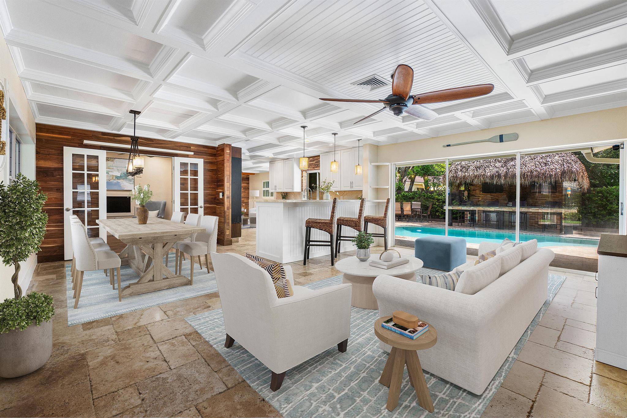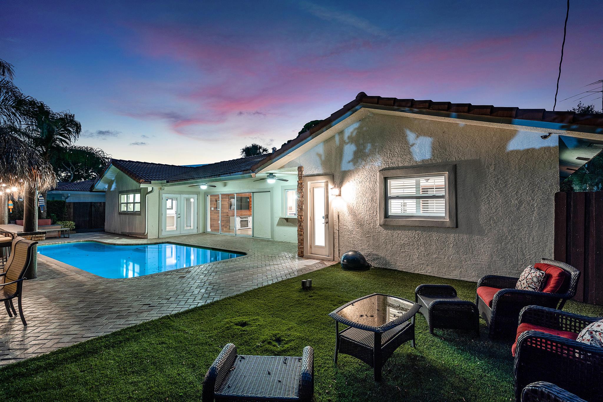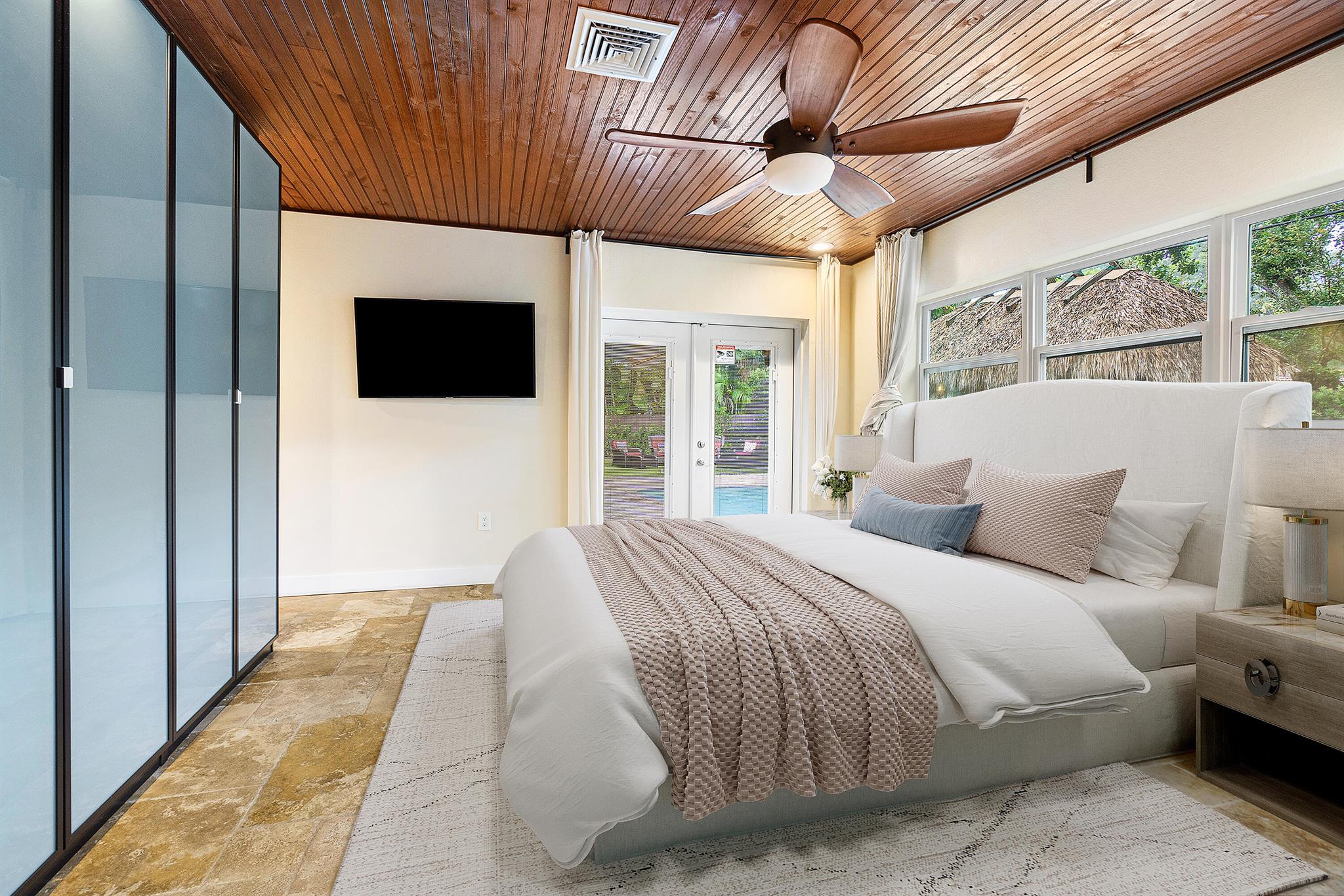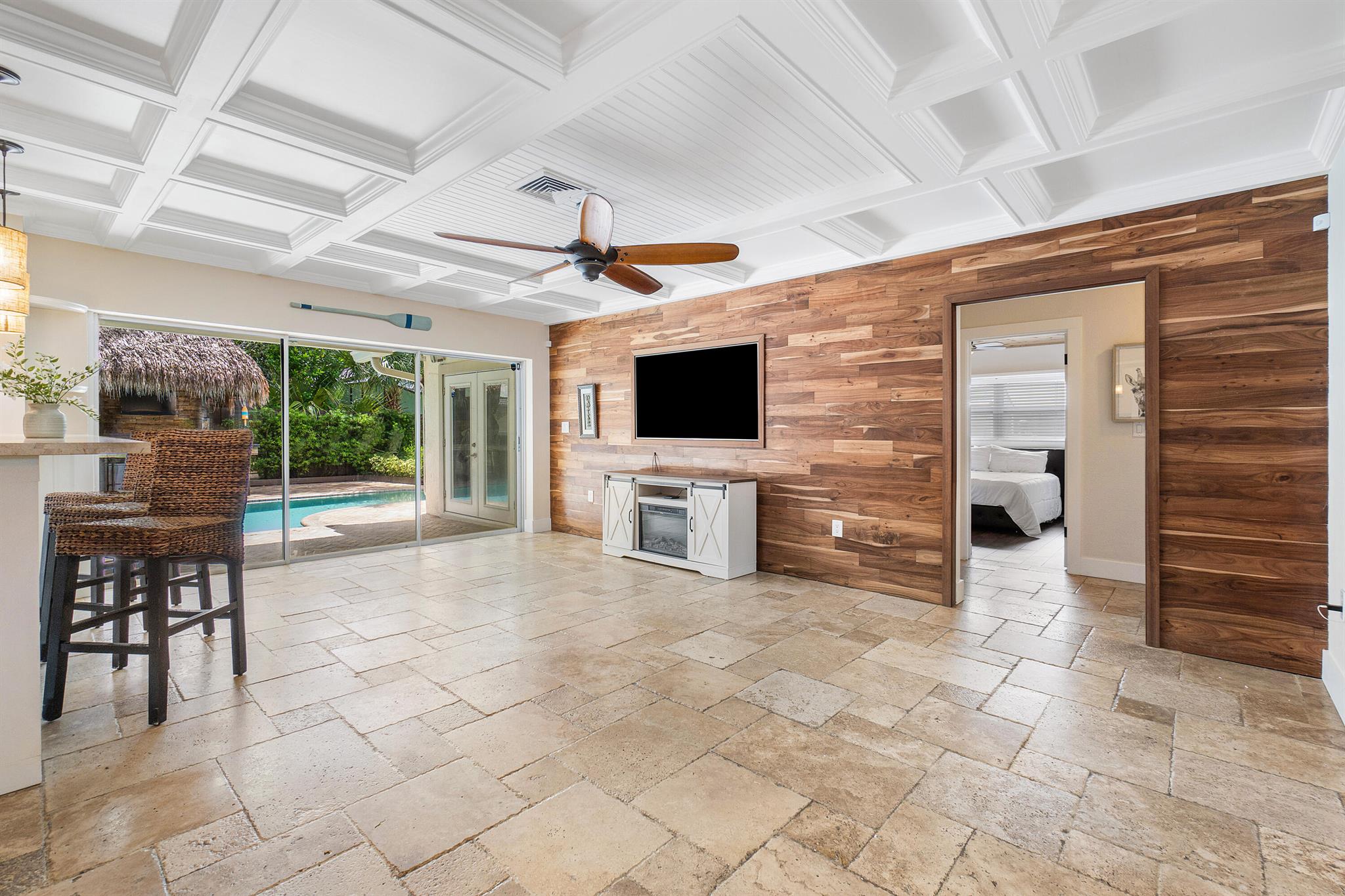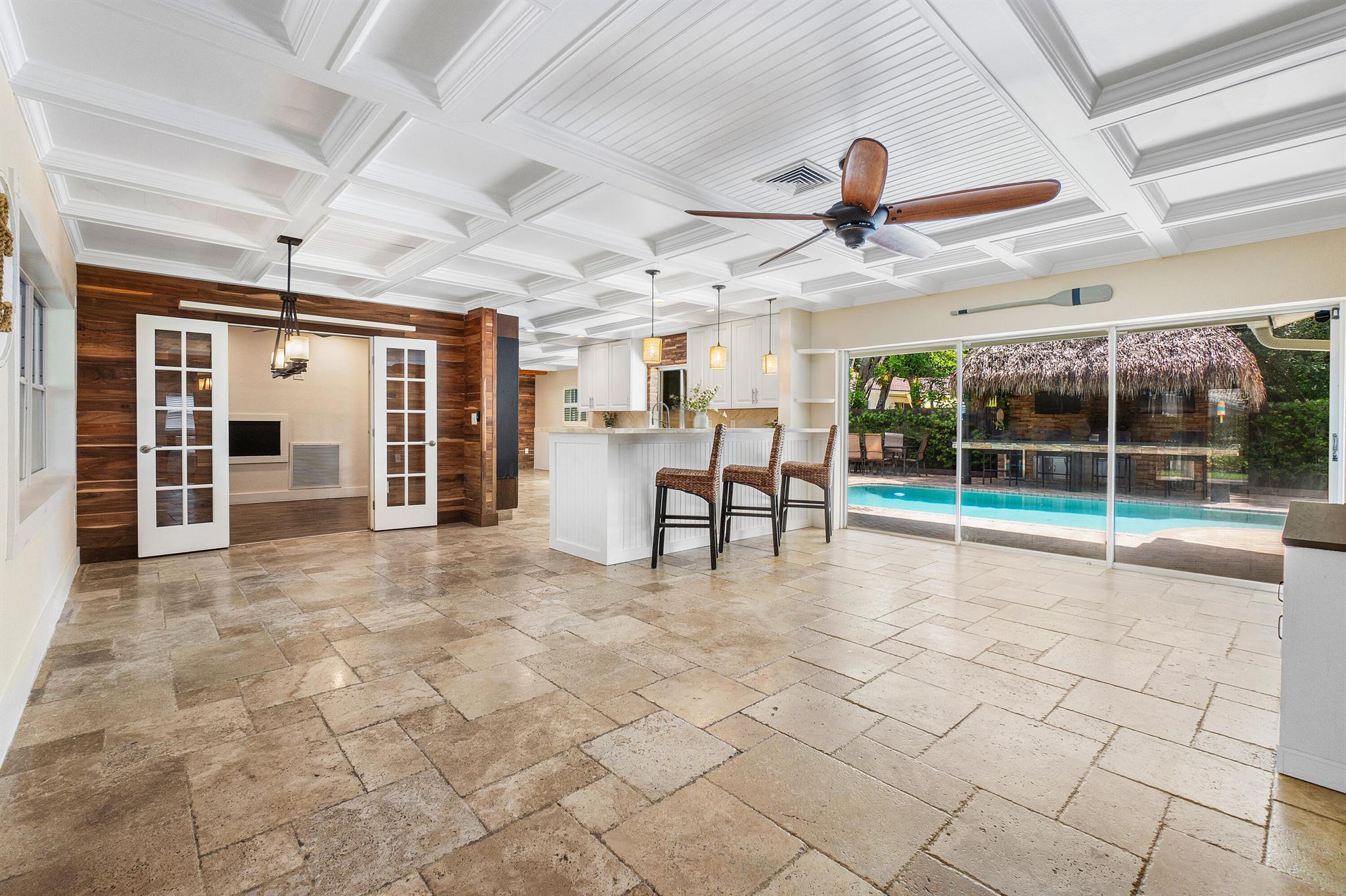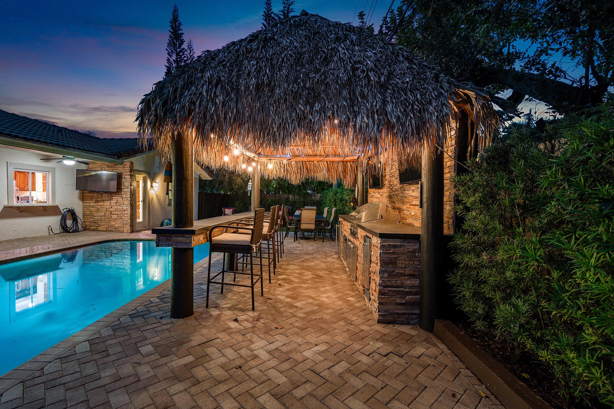 This East Boca Gem sited on an oversized 10,000 SF Lot is now available! You are greeted be a beautiful facade with a private, ultra-large circular paved driveway, stacked stone finishes and lush landscaping. Tons of natural light, updated kitchen with stone countertops, tons of cabinet and storage space and Stainles Steel appliances. Custom trims & coffered ceilings throughout, Resort style backyard with Southern exposure for sun all day long! Heated pool and great outdoor living spaces offer you the South Florida lifestyle you're looking for. Amazing outdoor tiki bar with a built-in summer kitchen, perfect for entertaining and outdoor security system in place. You absolutely cannot beat this location in the Tunison Palms / Old Floresta area, highly desirable, historic