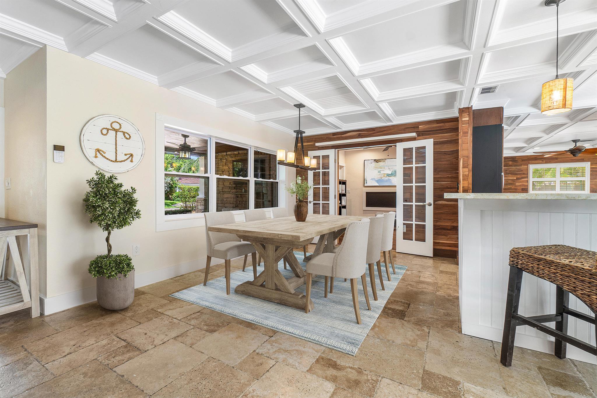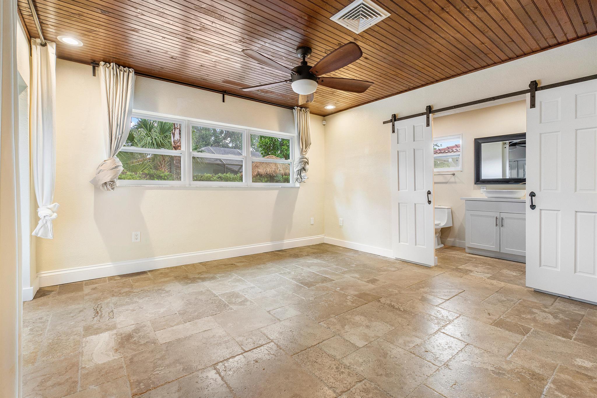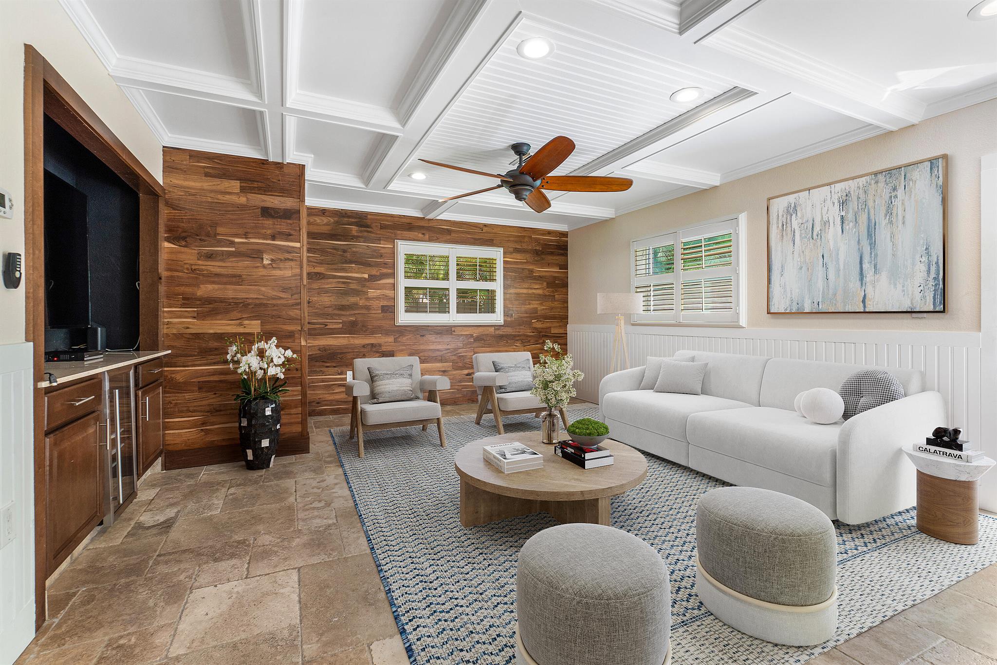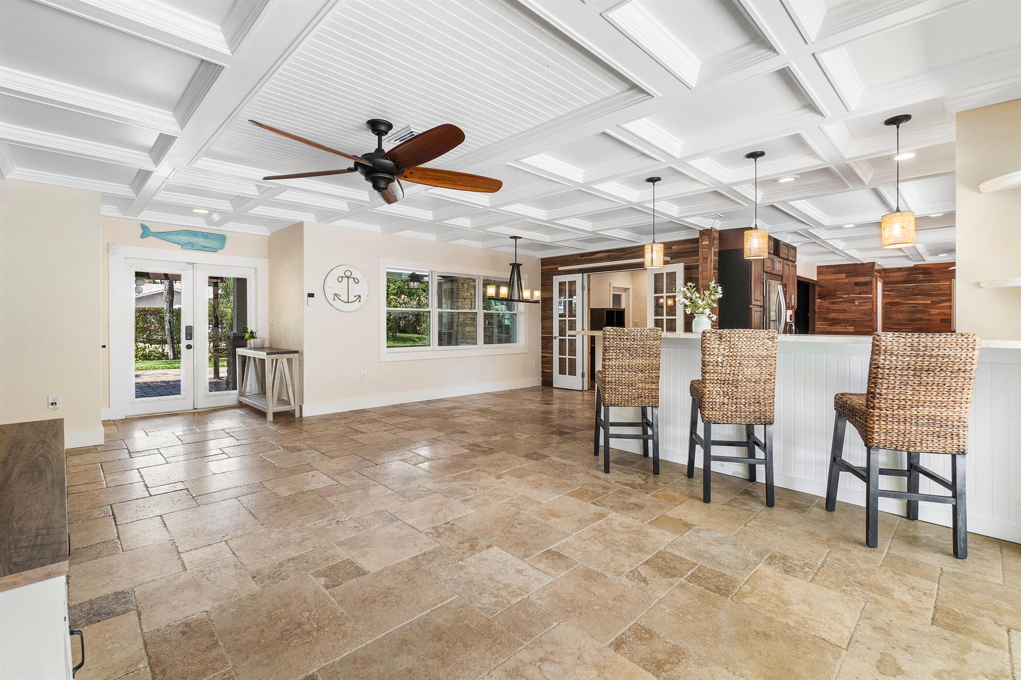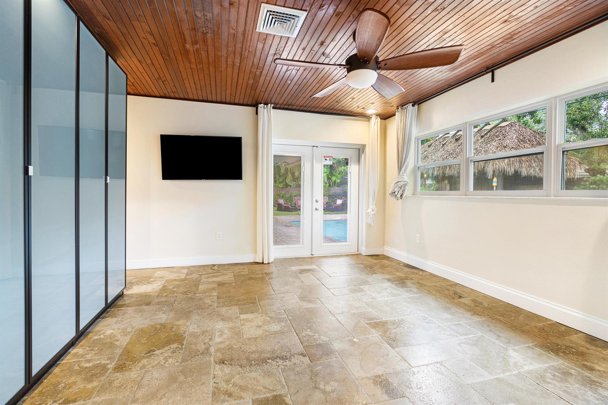 This East Boca Gem sited on an oversized 10,000 SF Lot is now available! You are greeted be a beautiful facade with a private, ultra-large circular paved driveway, stacked stone finishes and lush landscaping. Tons of natural light, updated kitchen with stone countertops, tons of cabinet and storage space and Stainles Steel appliances. Custom trims & coffered ceilings throughout, Resort style backyard with Southern exposure for sun all day long! Heated pool and great outdoor living spaces offer you the South Florida lifestyle you're looking for. Amazing outdoor tiki bar with a built-in summer kitchen, perfect for entertaining and outdoor security system in place. You absolutely cannot beat this location in the Tunison Palms / Old Floresta area, highly desirable, historic