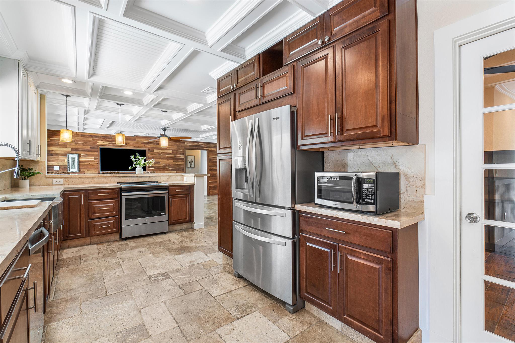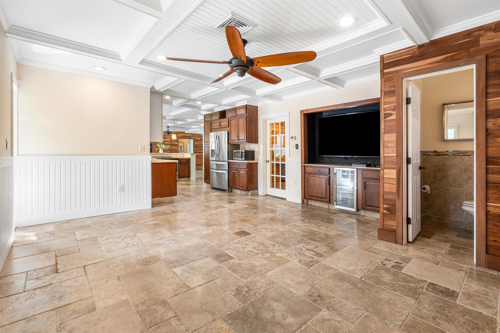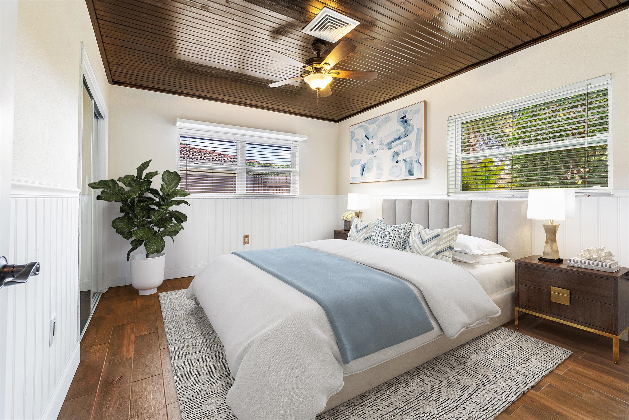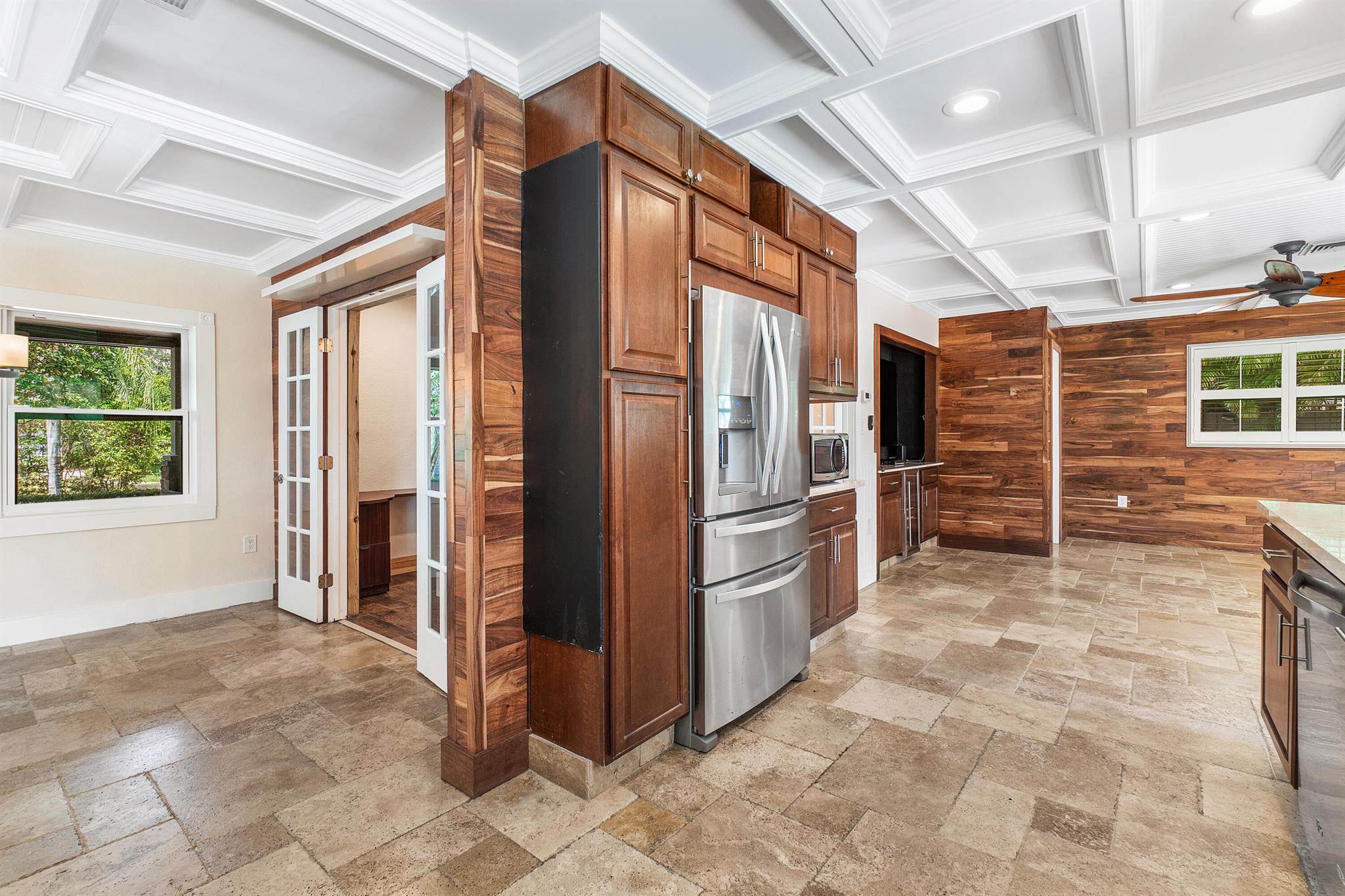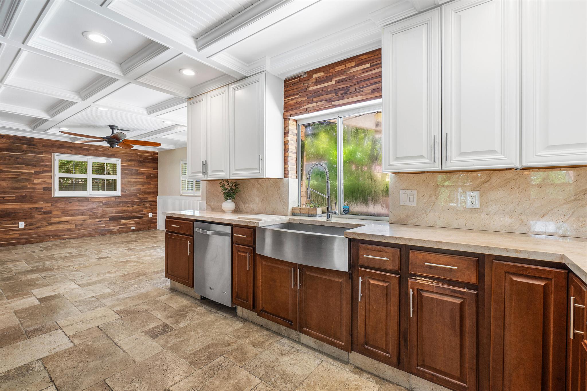 This East Boca Gem sited on an oversized 10,000 SF Lot is now available! You are greeted be a beautiful facade with a private, ultra-large circular paved driveway, stacked stone finishes and lush landscaping. Tons of natural light, updated kitchen with stone countertops, tons of cabinet and storage space and Stainles Steel appliances. Custom trims & coffered ceilings throughout, Resort style backyard with Southern exposure for sun all day long! Heated pool and great outdoor living spaces offer you the South Florida lifestyle you're looking for. Amazing outdoor tiki bar with a built-in summer kitchen, perfect for entertaining and outdoor security system in place. You absolutely cannot beat this location in the Tunison Palms / Old Floresta area, highly desirable, historic