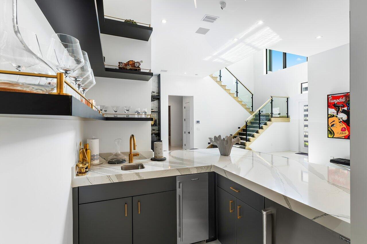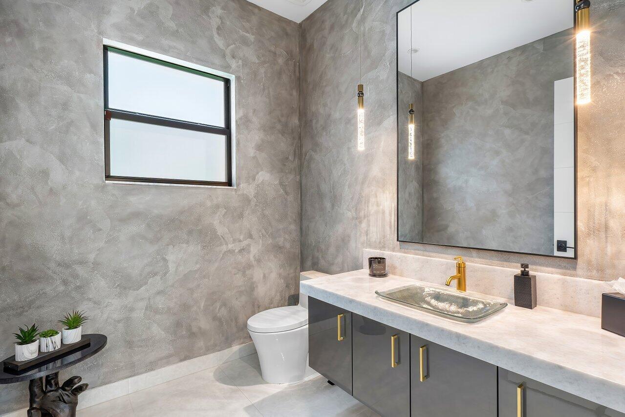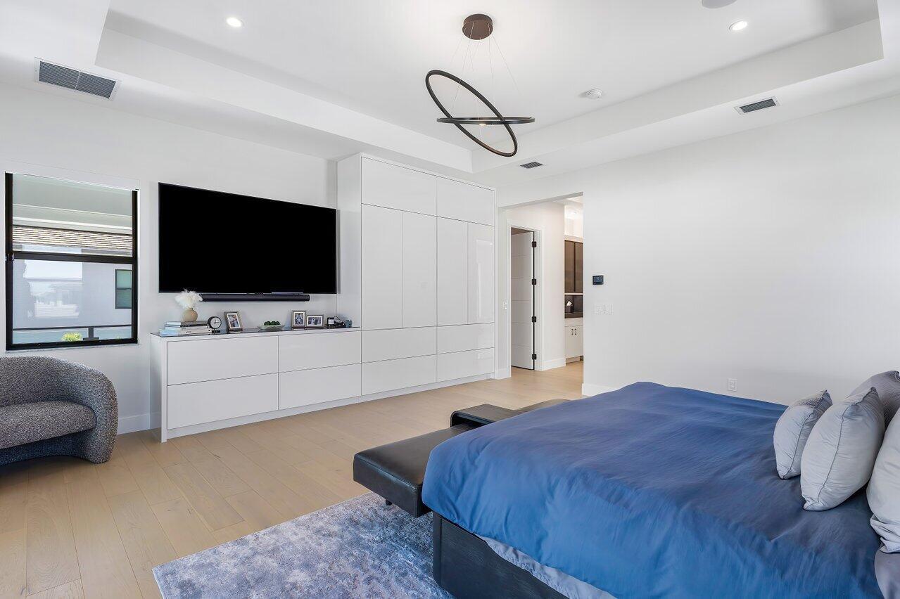 Welcome to a masterpiece of modern luxury in the exclusive Boca Bridges community. This custom-built Palermo Contemporary estate which is being sold Fully Furnished and Decorated transcends typical builder-grade homes, having been meticulously transformed by its visionary owners and designers. Every inch of this residence reflects unparalleled craftsmanship, with extensive customizations, designer finishes, and thoughtful enhancements throughout.This two-story estate boasts an array of lavish amenities, including 5 spacious bedrooms, 61/2 elegantly appointed baths, a club room, and a state-of-the-art home theater with professional soundproofing--a six-figure investment in entertainment. The upstairs primary suite offers a private oasis with a morning kitchen and a wrap-around veranda.