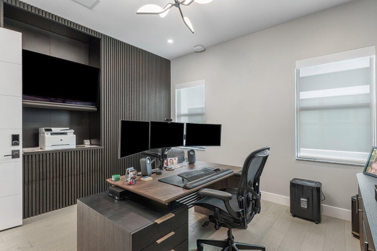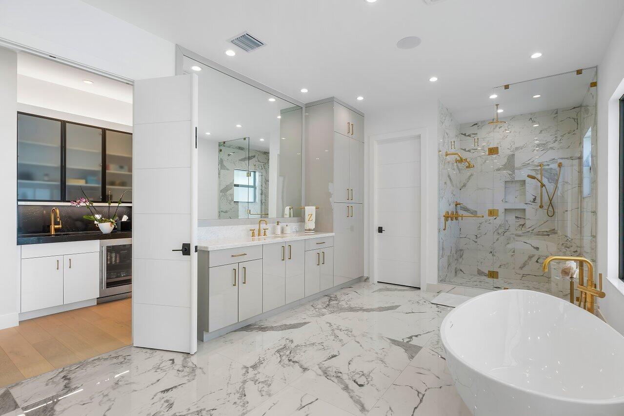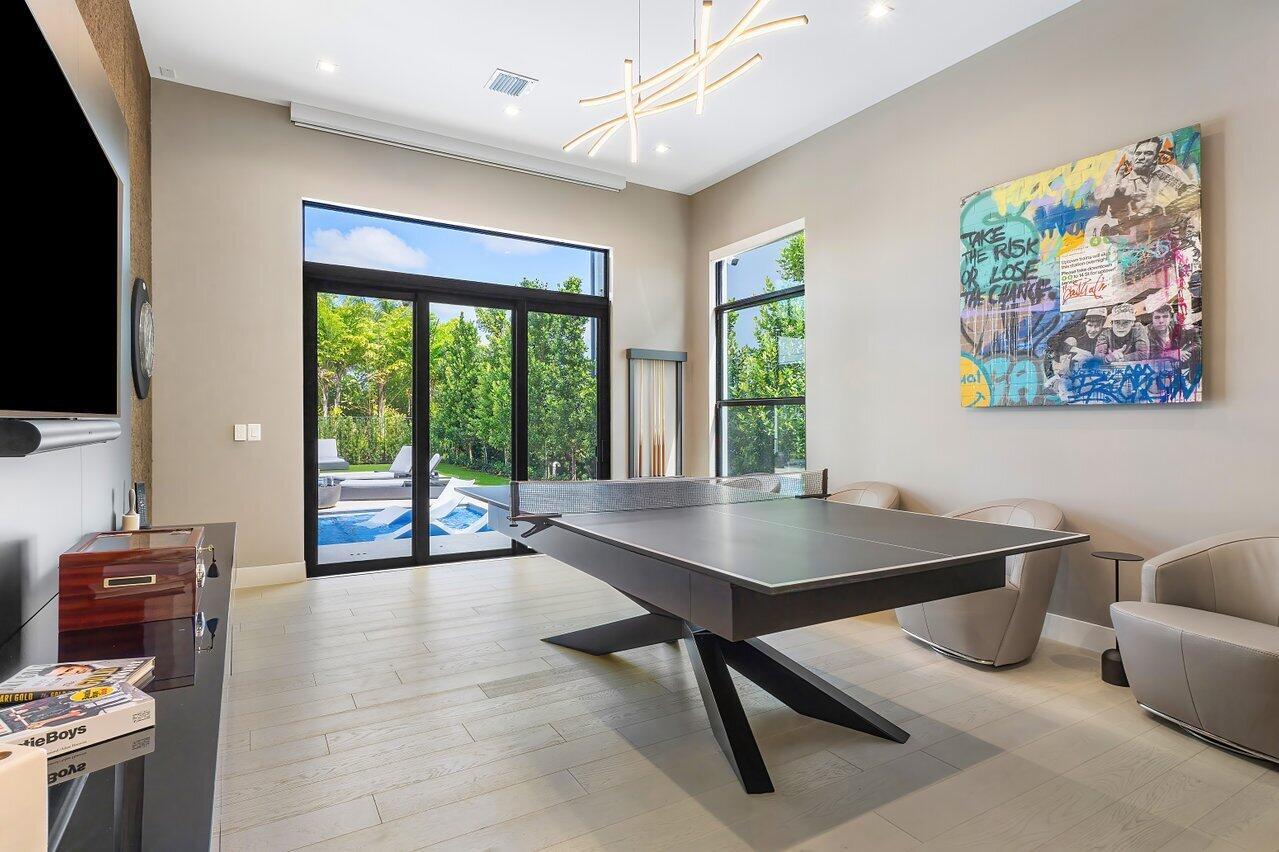 Welcome to a masterpiece of modern luxury in the exclusive Boca Bridges community. This custom-built Palermo Contemporary estate which is being sold Fully Furnished and Decorated transcends typical builder-grade homes, having been meticulously transformed by its visionary owners and designers. Every inch of this residence reflects unparalleled craftsmanship, with extensive customizations, designer finishes, and thoughtful enhancements throughout.This two-story estate boasts an array of lavish amenities, including 5 spacious bedrooms, 61/2 elegantly appointed baths, a club room, and a state-of-the-art home theater with professional soundproofing--a six-figure investment in entertainment. The upstairs primary suite offers a private oasis with a morning kitchen and a wrap-around veranda.