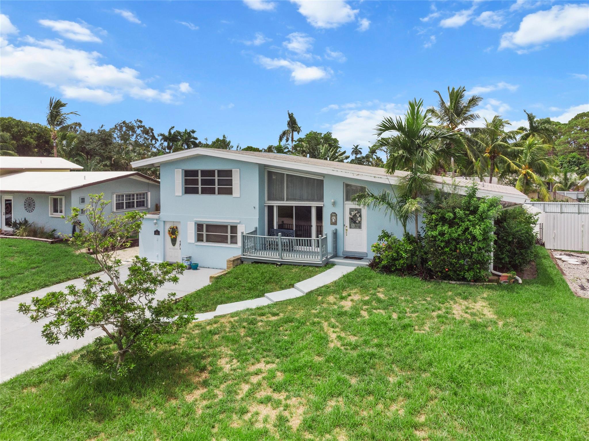 Welcome to this unique 3-bedroom, 2-bath multi-level home in the desirable Lauderdale Isles community. Full of original charm, this property is move-in ready or offers the opportunity to renovate and customize to your taste. Inside, you'll find a spacious layout with ample room for living and entertaining. The large Florida room is ideal for gatherings, while the expansive backyard with a wood deck provides plenty of outdoor space. There's room to add a pool and create your oasis! Two recently serviced AC units ensure year-round comfort. With ample storage, you'll have space to stay organized. Whether you're seeking a character-filled home or a canvas for your dream space, this Lauderdale Isles gem offers endless possibilities.