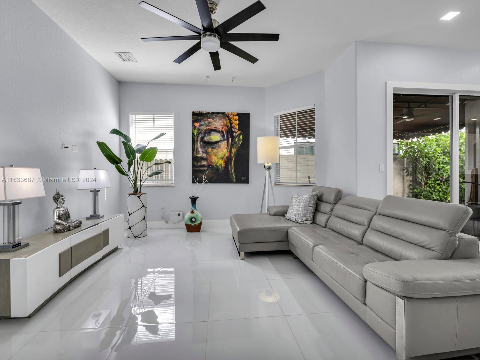 This 4 bedroom 3 bath home has been totally remodeled with white porcine tile flooring in all living areas, custom built-in dining room wall unit with custom lighting, custom built-in master closet with lighting features, custom recessed lighting, custom kitchen cabinets , 9' waterfall kitchen island with eight chairs, and 2 car garage with custom flooring and gym equipment. Best of all is the back yard with no construction for total privacy.