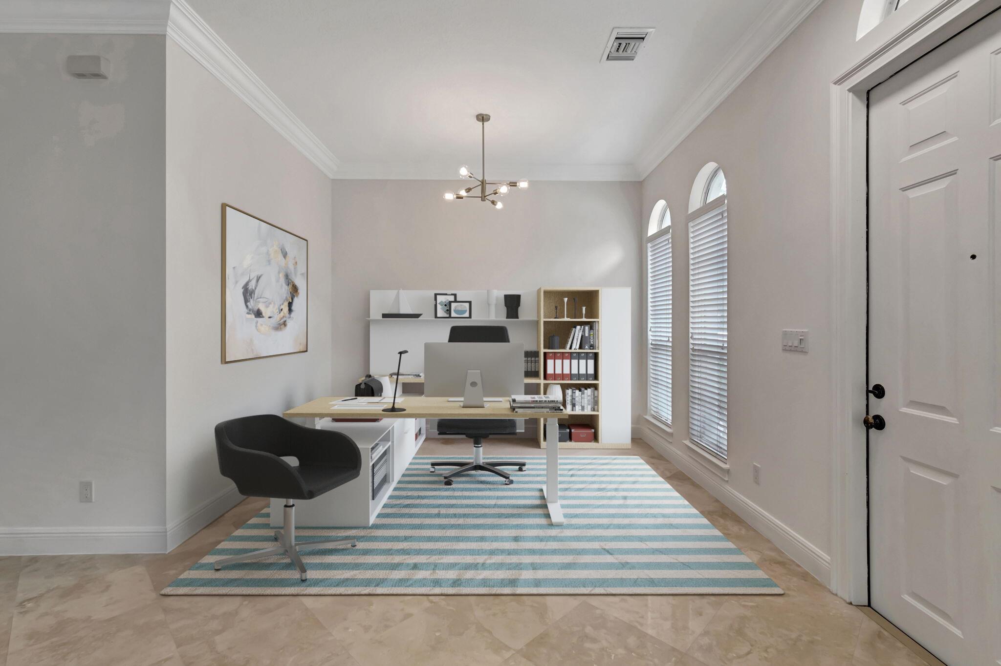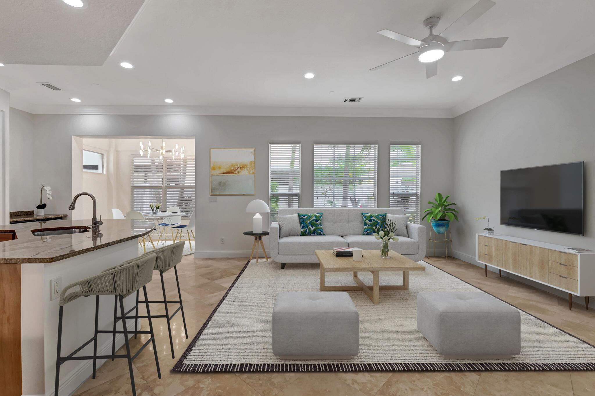 Welcome to 99 Via Poinciana, a beautifully updated townhome offering the privacy of a single-family home with no shared walls--only attached by garages. Nestled in the heart of East Boca Raton. Ride your bike to the beach, shops, and restaurants from this exquisite residence in the highly sought-after gated community of Royal Poinciana. The neighborhood is beautifully manicured, offering a warm community atmosphere with a heated pool and a dog-friendly environment.This semi-detached home boasts over 2,500 square feet of light-filled living space. It features three spacious bedrooms, each with its own ensuite bathroom, an additional powder room, and a charming home office. The tranquil backyard provides the perfect setting for relaxation or play. The open-concept kitchen seamlessly (MORE)