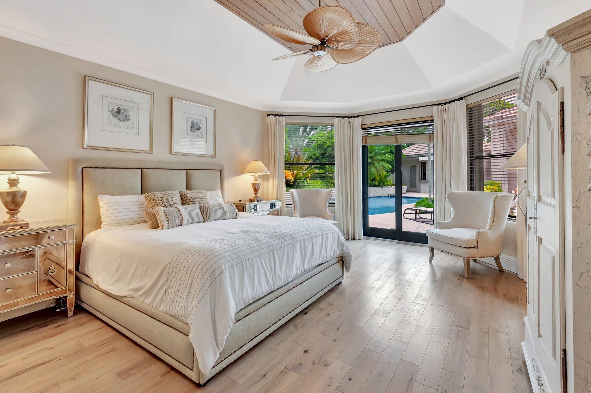 Welcome to this exquisite courtyard estate home located in the prestigious Village of Vintage Place within the Broken Sound Country Club. Nestled on a .35-acre corner lot, this stunning property spans over 4,200 square feet of luxurious living space. Featuring 4 spacious bedrooms, 4.5 beautifully appointed baths, and a private guest house, this home offers unparalleled comfort and style. The main house includes a recently added large den and office, perfect for work or relaxation. Step into your own private oasis with this stunning home, featuring a spacious courtyard that invites you to relax and entertain. The centerpiece is a sparkling heated pool, perfect for year-round enjoyment, surrounded by lush landscaping that enhances the tranquil atmosphere. A covered barbecue area completes