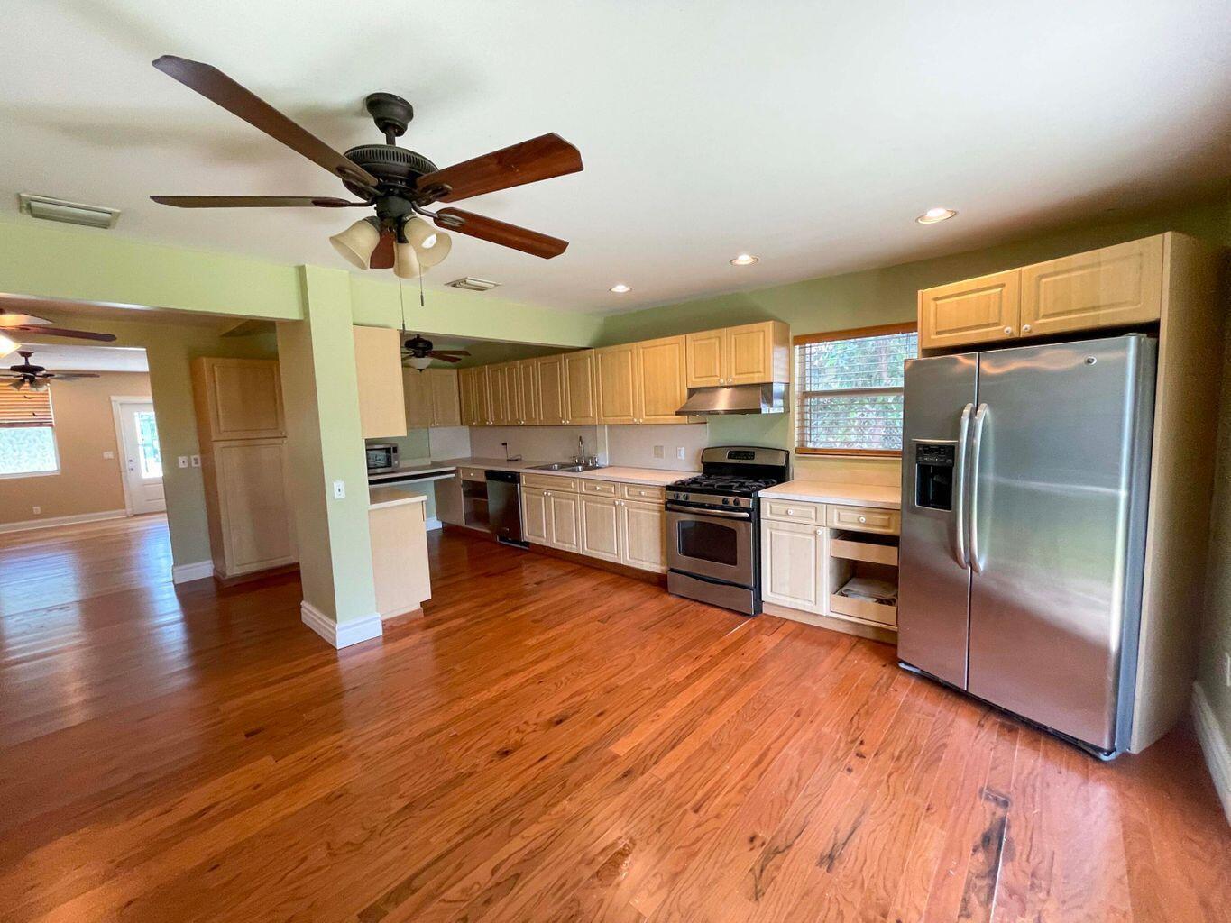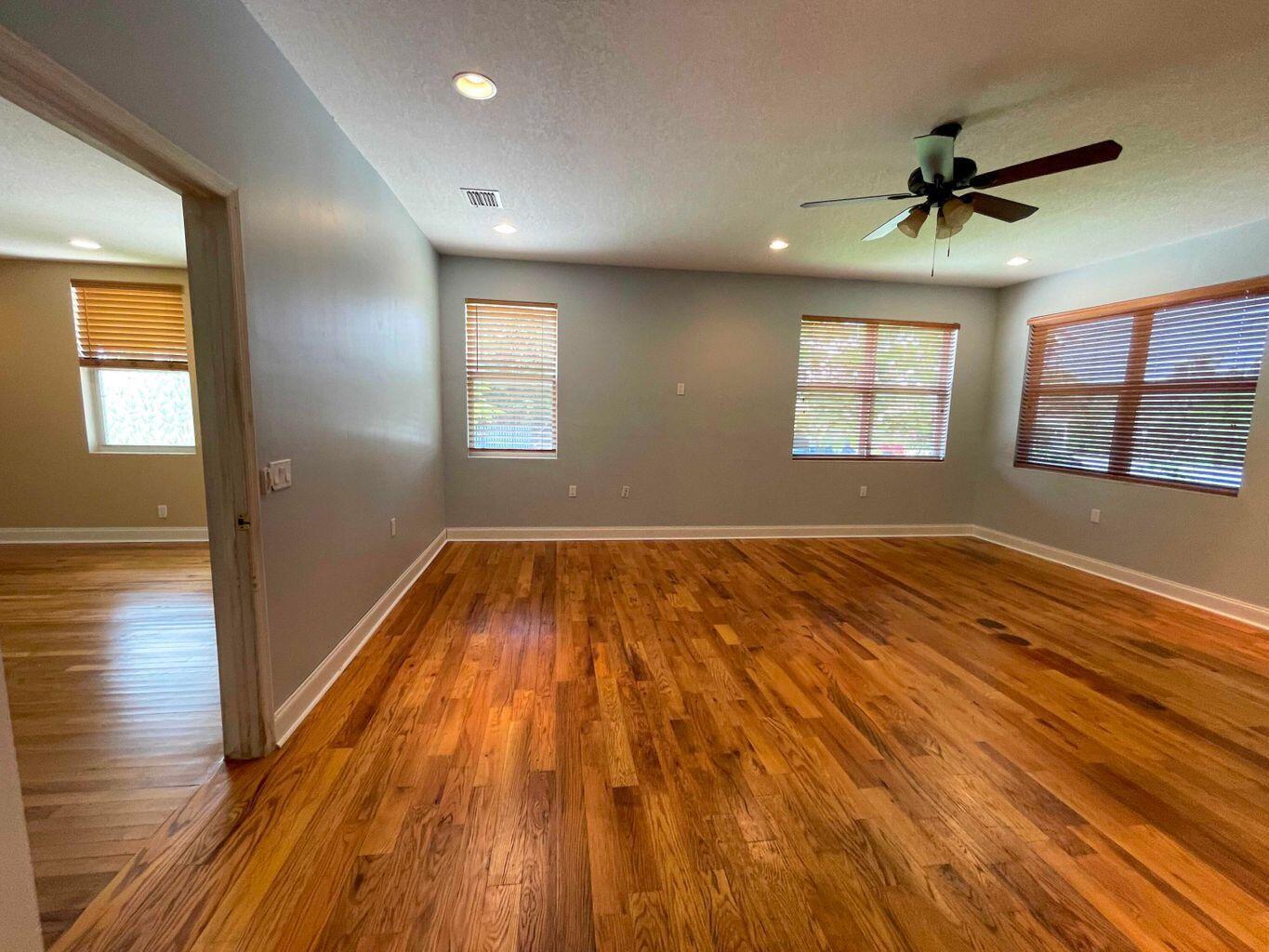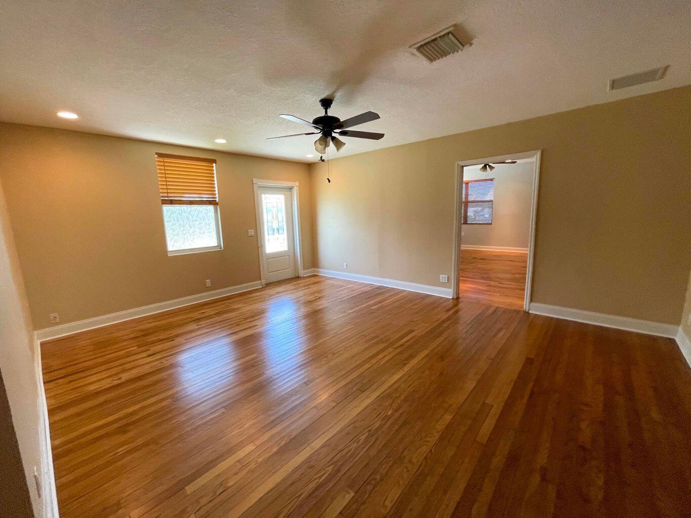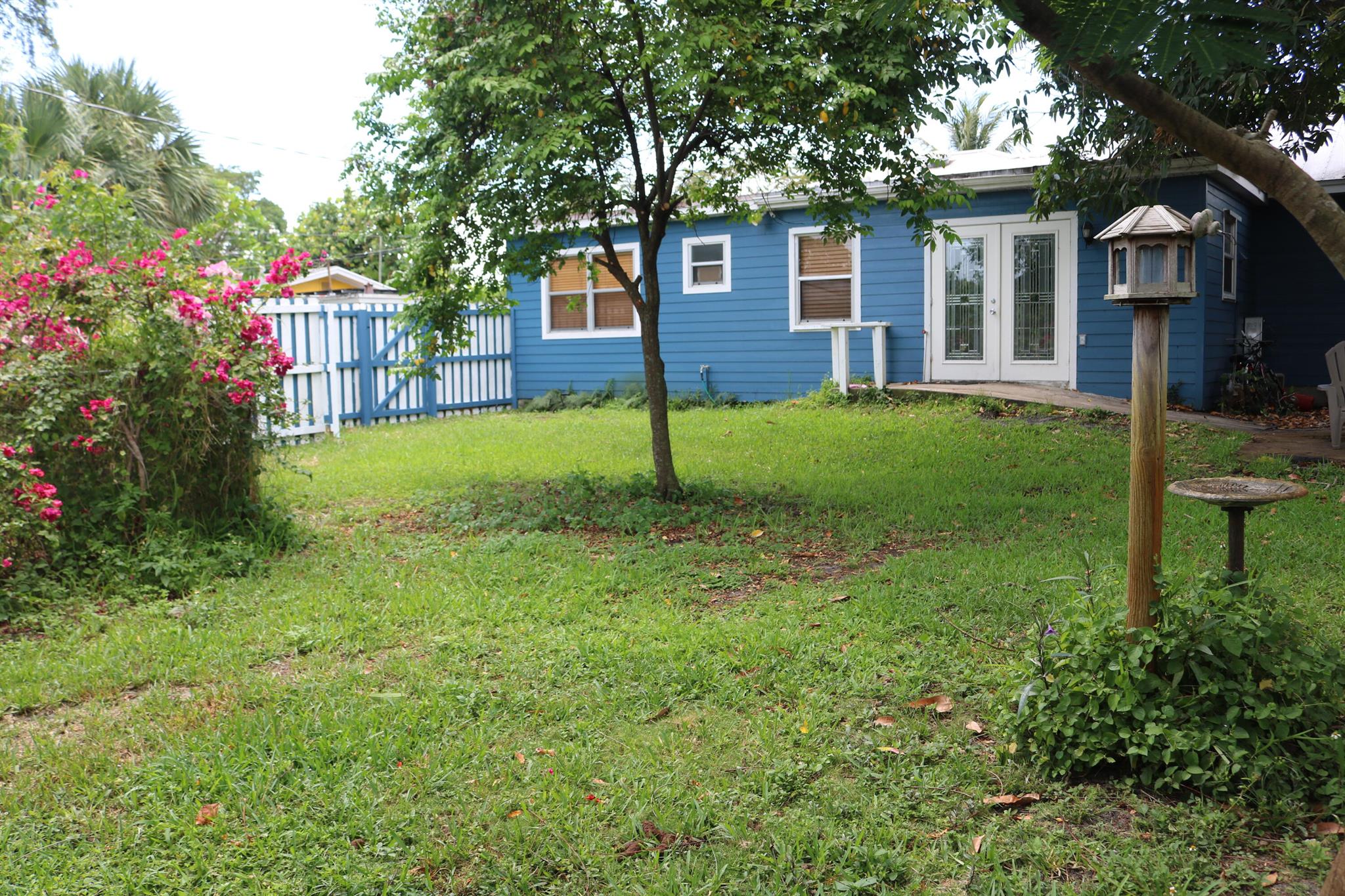 This adorable 3 bed/2 bath home with a huge convertible extra room and 1/1 mother-in-law suite is conveniently located and ADA-compliant. The oak hardwood floors, spacious rooms and private, fully-fenced yard with gorgeous trees and bougainvilleas (SO beautiful when in bloom!) make the property wonderfully appealing but the bonuses put it over the top as a potential home/investment. The separate 1 bed/1 bath suite is a detached efficiency and being rented out separately. It includes its own electric washer/dryer, but the appliances in the house use gas. 3 sheds included. Central A/C unit was replaced in 2023. Metal roof, tie-Downs and tankless heater. Impact rated windows on all but 2 windows, but those shutters are provided. Main house tenants had a lease @$3350 and recently vacated