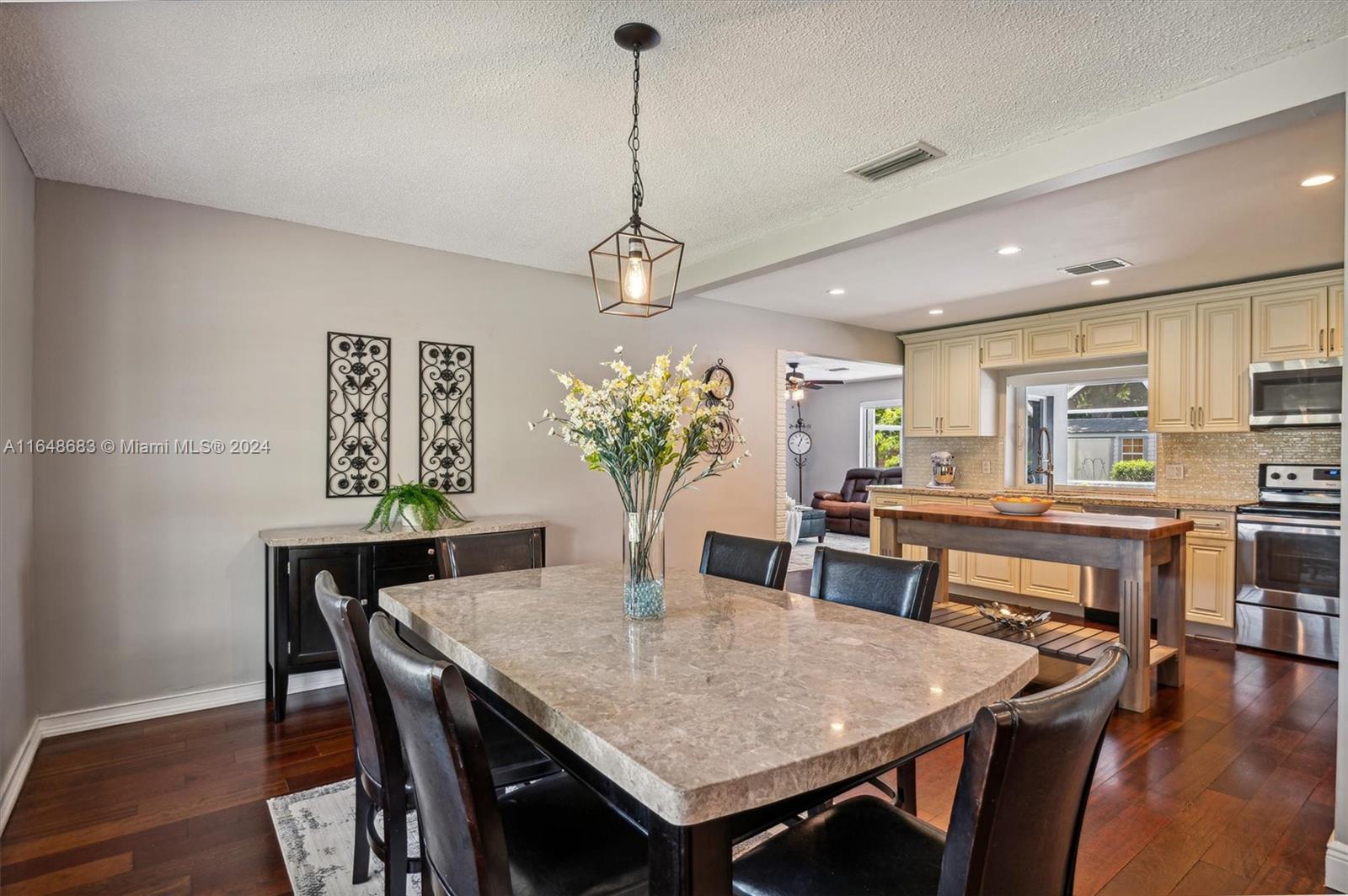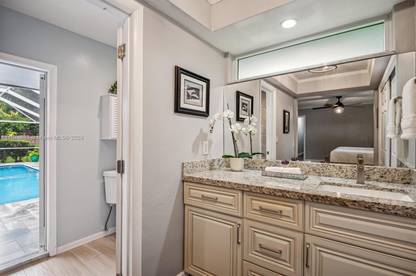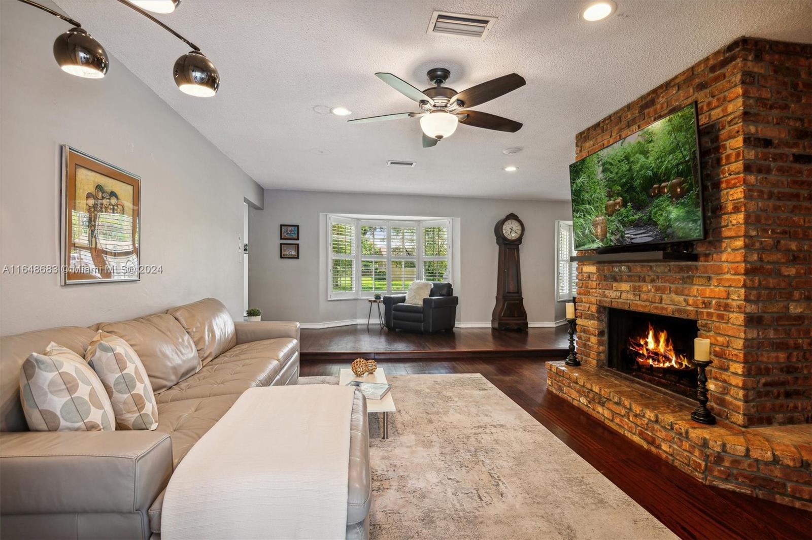 Spacious 3 bed/2 bath, 2 car garage pool home w/over 2,500 SqFt features all the updates you've been looking for. Sparkling salt water pool w/new marble pavers. IMPACT WINDOWS & DOORS throughout. Bright entry foyer leads to an open concept living area w/sunken living room, brick FIREPLACE, two bay windows, updated kitchen w/remote LED lighting, hardwood floors throughout, and generous family room that could convert to a 4th bedroom suite. Opposite the living areas you'll find two guest bedrooms & updated guest bath and an oversized primary suite all w/direct pool access. ROOF (2016), AC (2018), CAST IRON PIPES REPLACED (2021), shed w/drywall & electric (2021), fully fenced yard, NEW GUTTERS w/leaf filter, IRRIGATION & WATER HEATER all within last 3 years.
