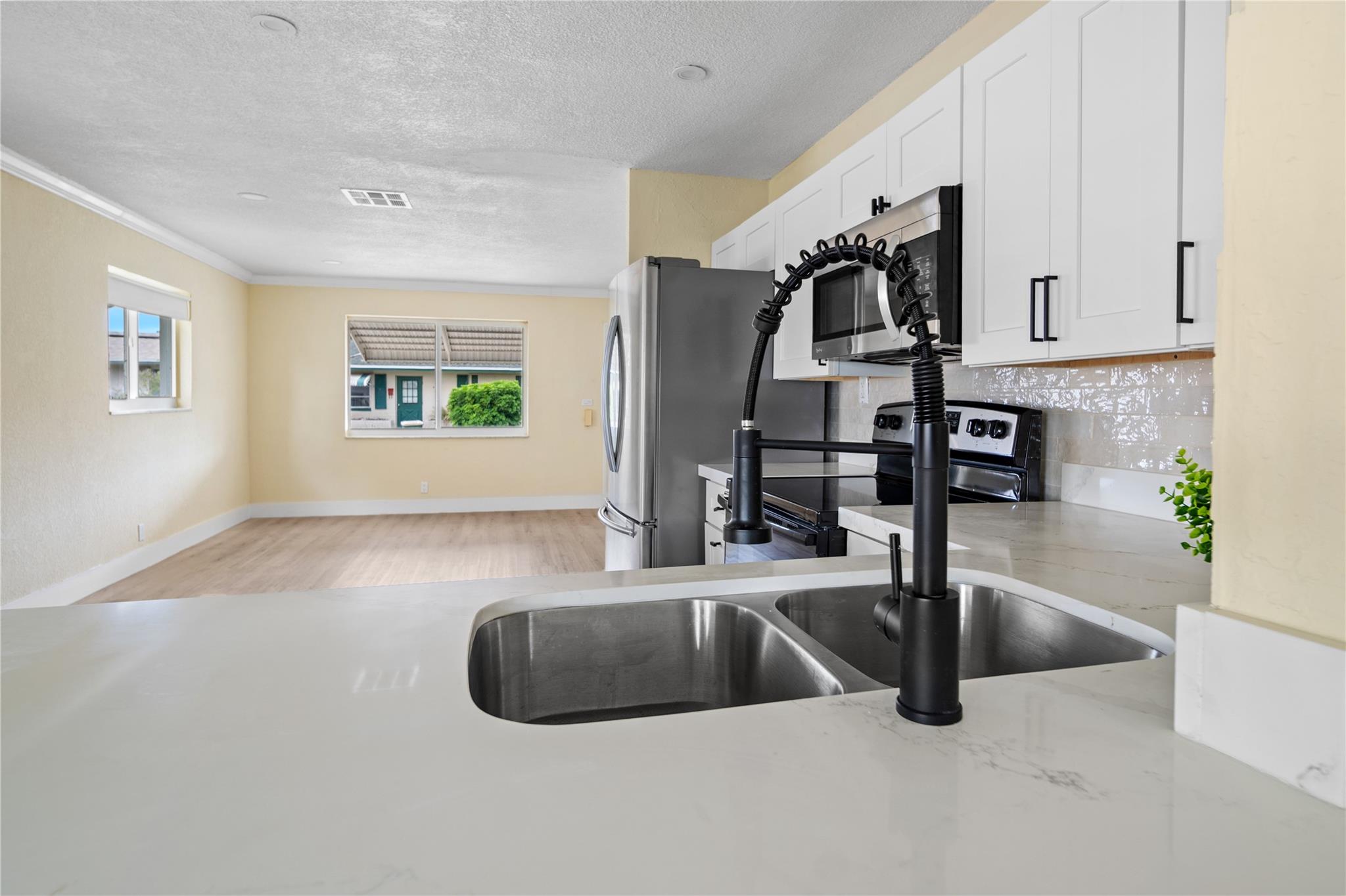 Priced below appraisal value! Very quiet street in the Mainlands of Tamarac. 55+ community. One occupant must be 55 and over. Home has a newer roof, newer attic insulation and new AC ducts. One full bath and the other bathroom does not have a shower. The kitchen is GORGEOUS - soft close cabinets and drawers, quartz countertops, recessed LED lighting, and a modern subway tile backsplash. The entire home has luxury vinyl plank flooring which is 100% waterproof. – the flooring is beautiful! Home has a transferable Termite warranty! New gutters, updated electric panel, and IMPACT windows. Stacked washer and dryer unit is located on the outside covered patio area. Monthly HOA fee is $100. No Children under 18. Yes, the HOA does require a 730 Credit Score(TransUnion). See MLS attachments.