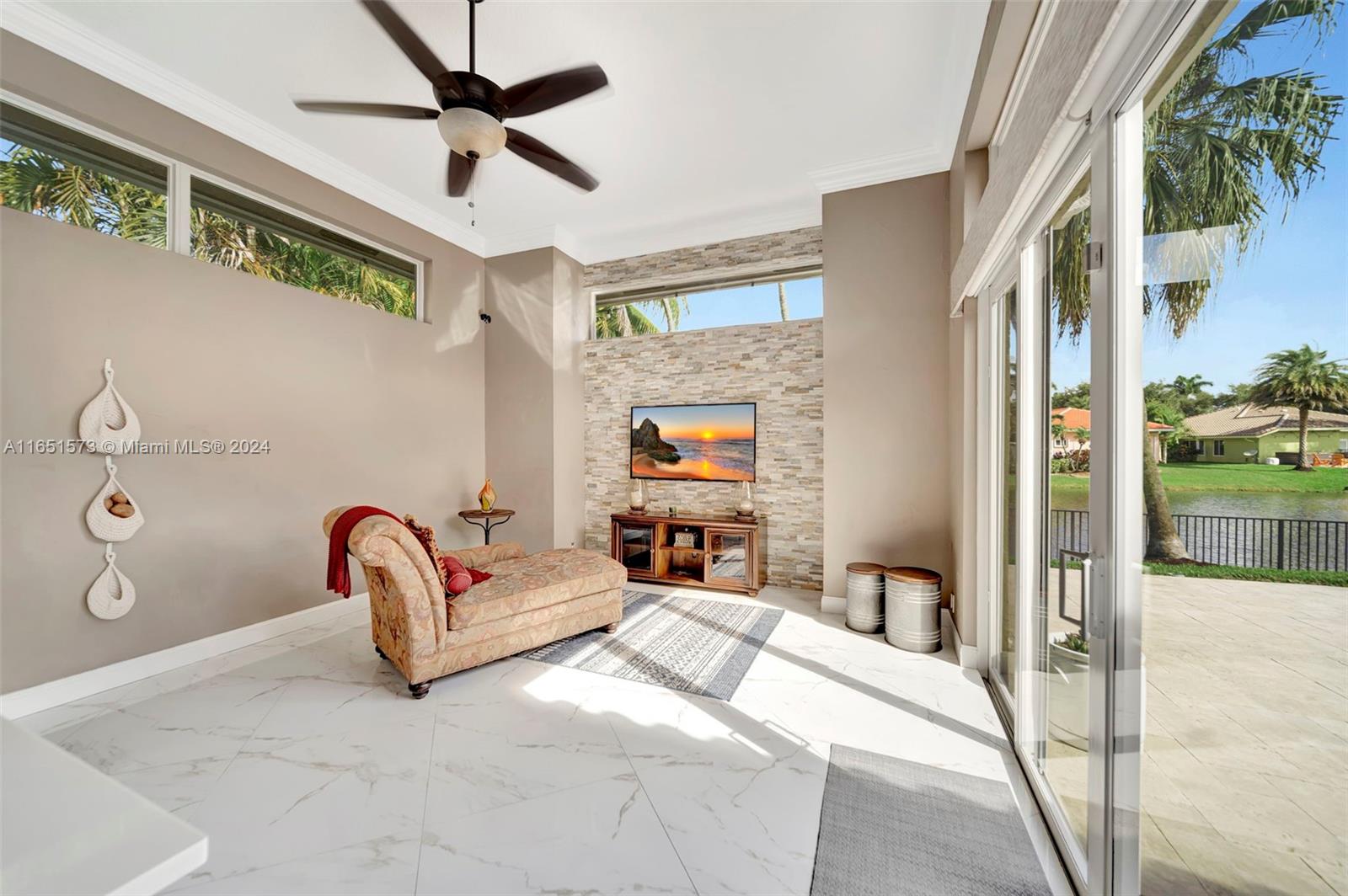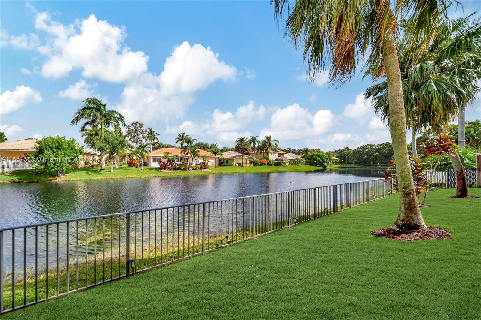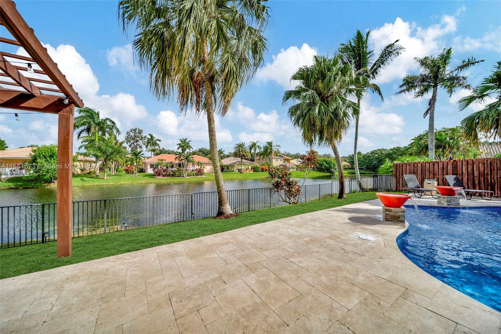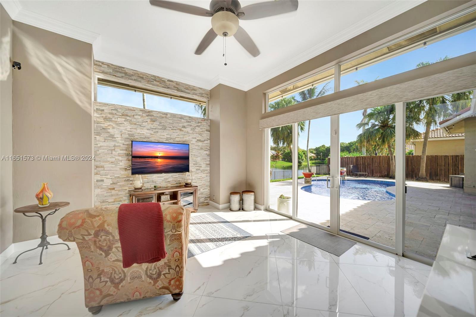 This stunning four-bedroom, two-and-a-half-bath single-family home offers breathtaking views of a serene lake, complemented by a luxurious pool surrounded by elegant travertine pavers. The interior is bathed in natural light, highlighting the elegant bamboo wood & porcelain tile flooring throughout. The chef's dream kitchen is a masterpiece, featuring high-end Thomasville cabinets, sleek quartz countertops, and monogram SS appliances. Every corner of the home showcases thoughtful upgrades such as hurricane impact windows/doors,stacked natural stone wall, new lighting, crown molding adding to its luxurious appeal. With the added benefit of an assumable mortgage at 1.99% and low HOA, this property truly has it all and much more! For a private showing, call TODAY!