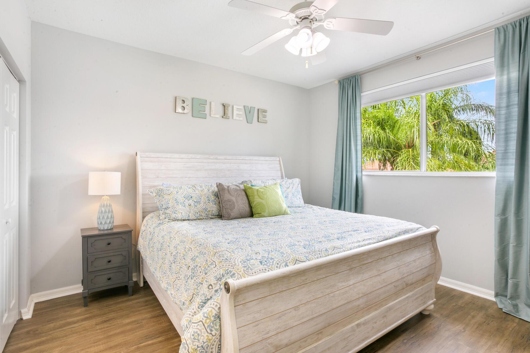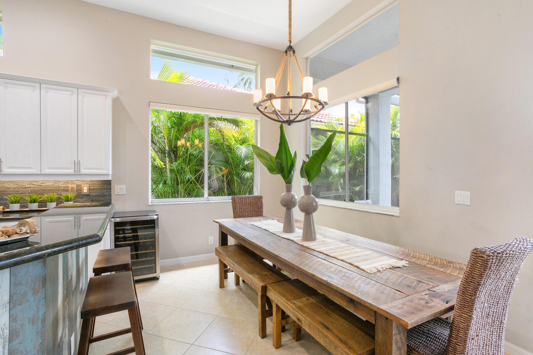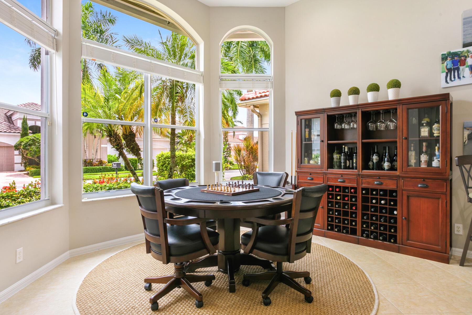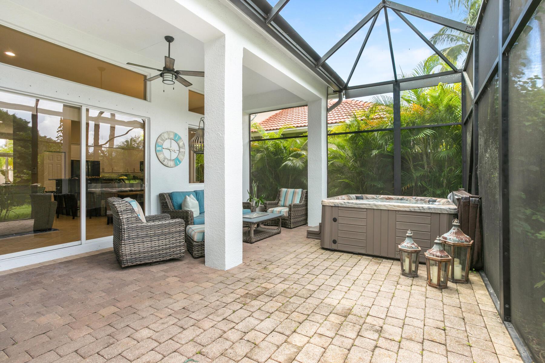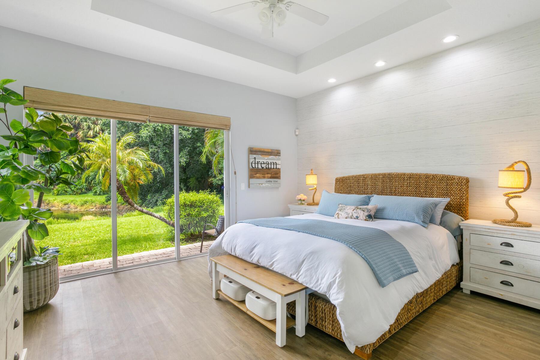 PRIVATE LAKE VIEWS and lush tropical greenery surround this lovely 3BR/2.5BA+Den home. With a NEW ROOF, new gutters and freshly painted exterior in 2024 - the hard work is done for you! Move in and enjoy the Ibis experience in this lovely open floor plan home from day-one! The formal living and dining area has been reimagined as a game room perfect entertaining family and friends. The soaring ceilings, spacious foyer and expansive windows in this area allow this versatile space to easily accommodate a more formal and elegant vibe if desired. The kitchen has newer black stainless appliances, a casual dining space, counter seating and an adjoining family room with plank feature wall. Stacked slider provides a generous opening to access your screened lanai with private spa (cont)