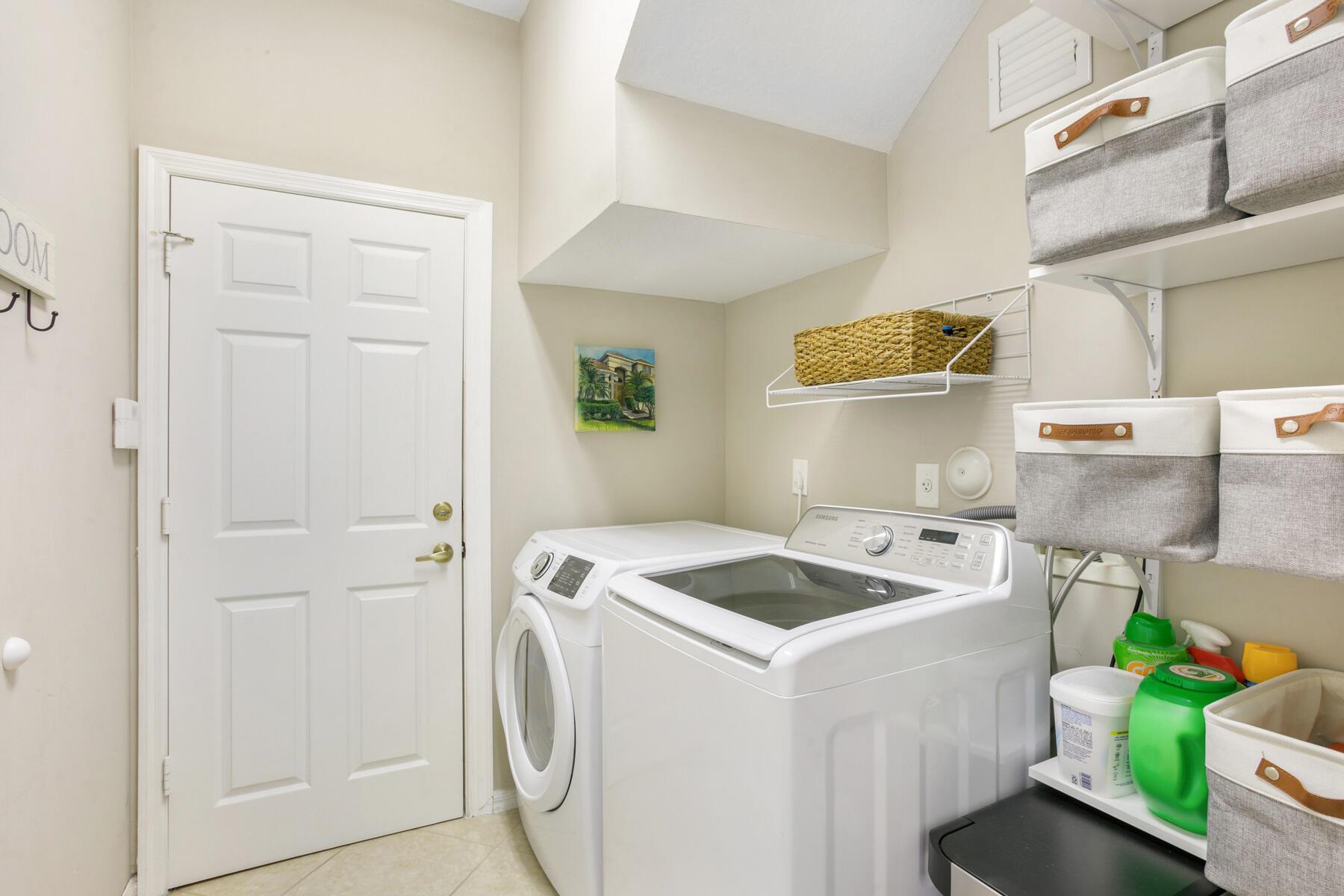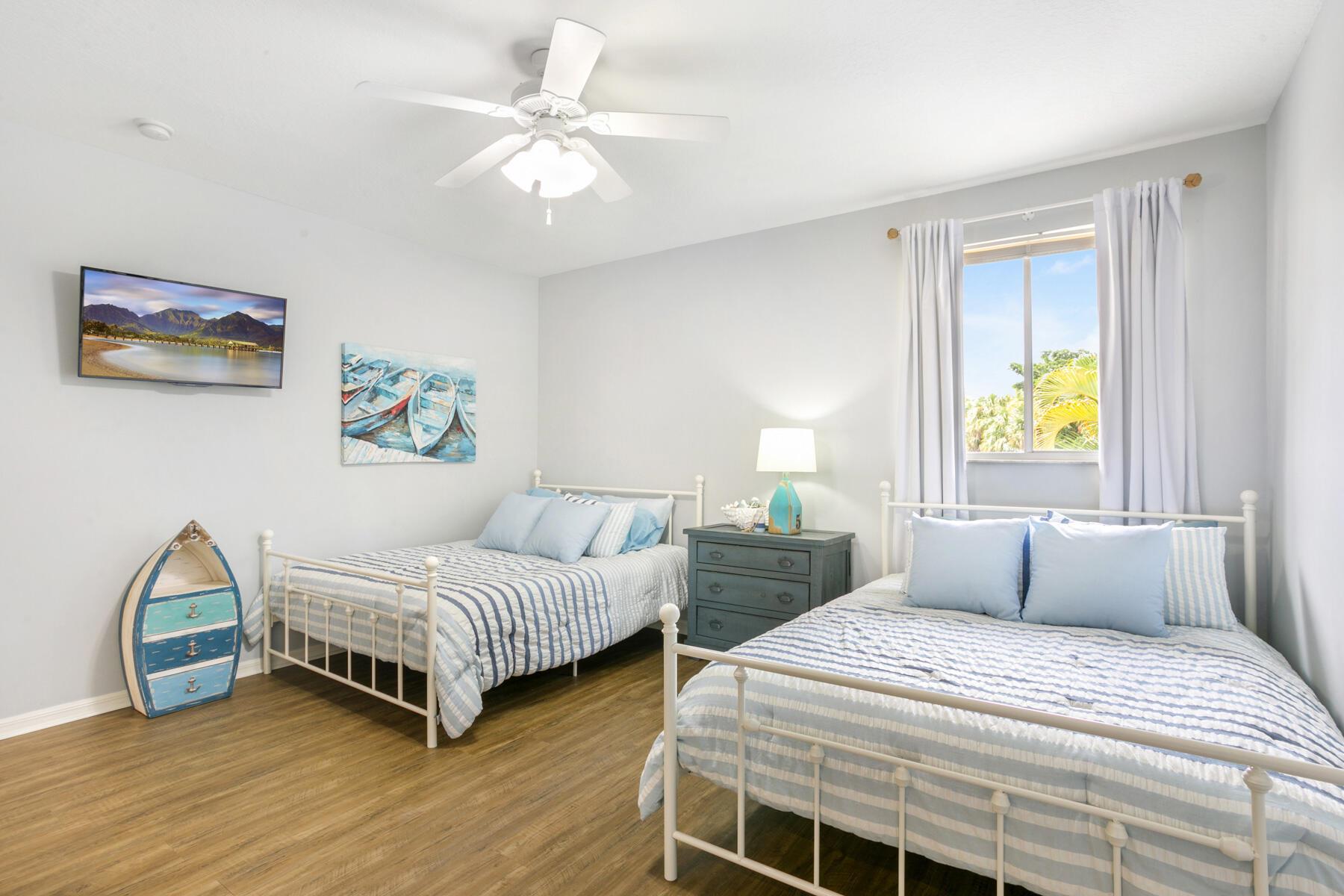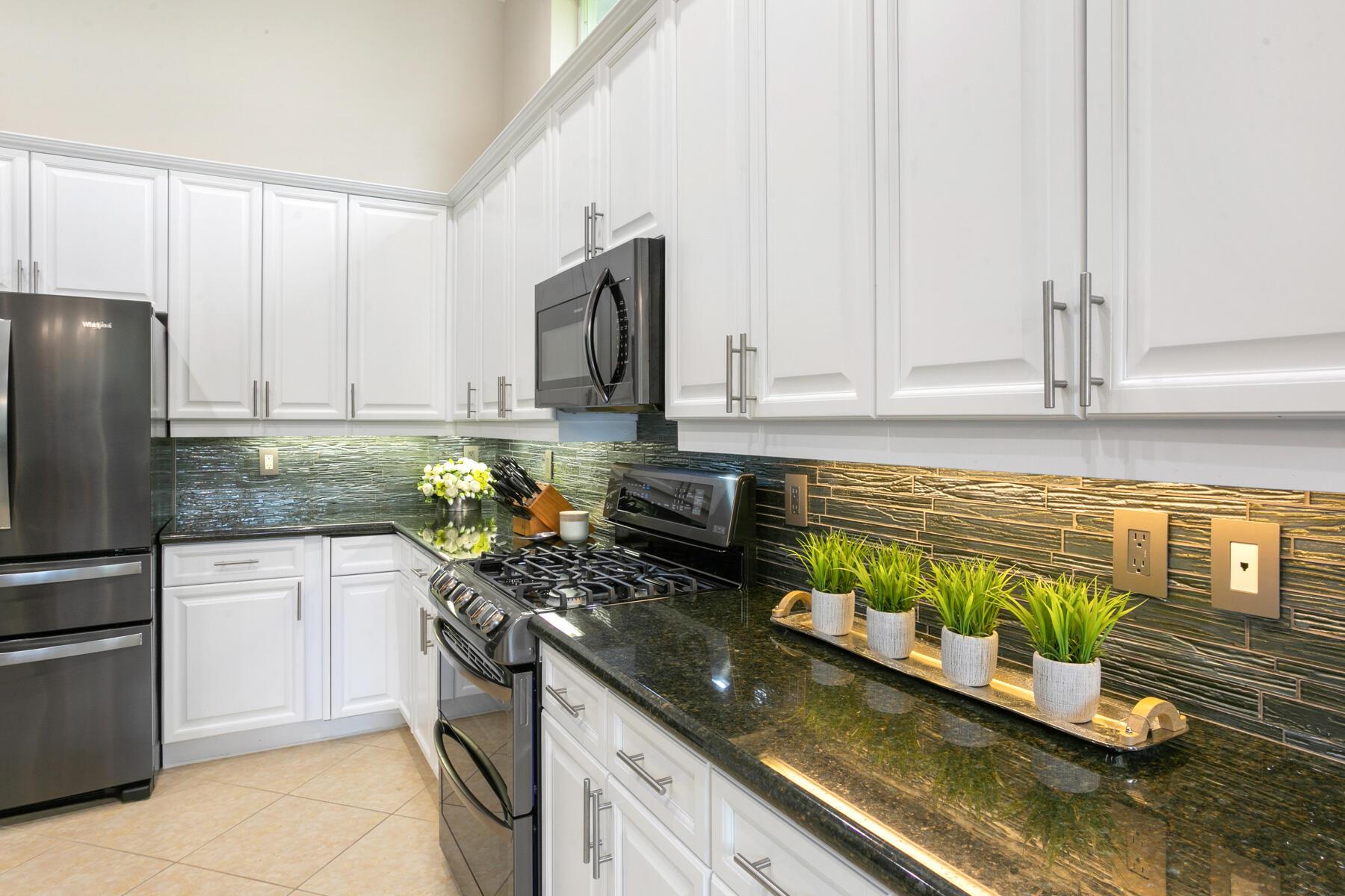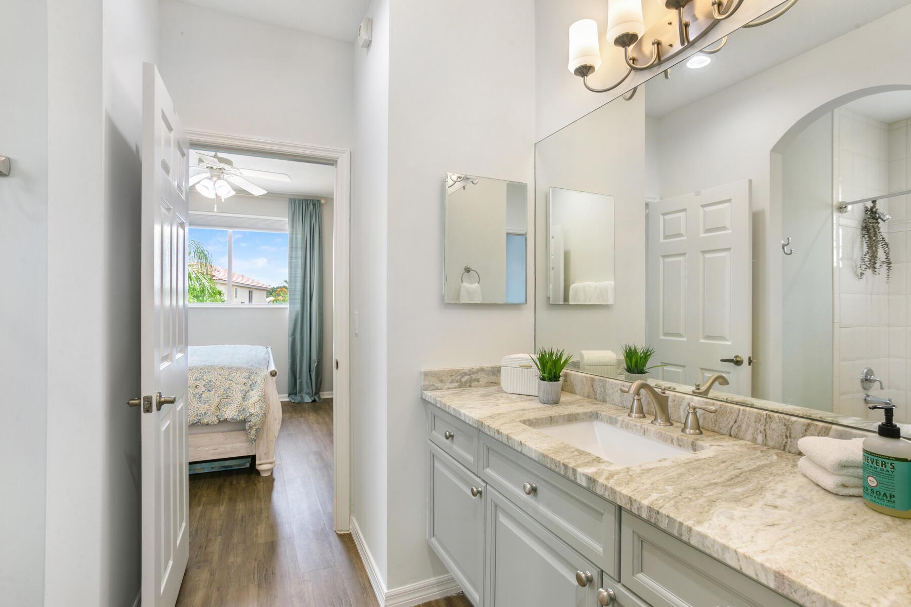 PRIVATE LAKE VIEWS and lush tropical greenery surround this lovely 3BR/2.5BA+Den home. With a NEW ROOF, new gutters and freshly painted exterior in 2024 - the hard work is done for you! Move in and enjoy the Ibis experience in this lovely open floor plan home from day-one! The formal living and dining area has been reimagined as a game room perfect entertaining family and friends. The soaring ceilings, spacious foyer and expansive windows in this area allow this versatile space to easily accommodate a more formal and elegant vibe if desired. The kitchen has newer black stainless appliances, a casual dining space, counter seating and an adjoining family room with plank feature wall. Stacked slider provides a generous opening to access your screened lanai with private spa (cont)