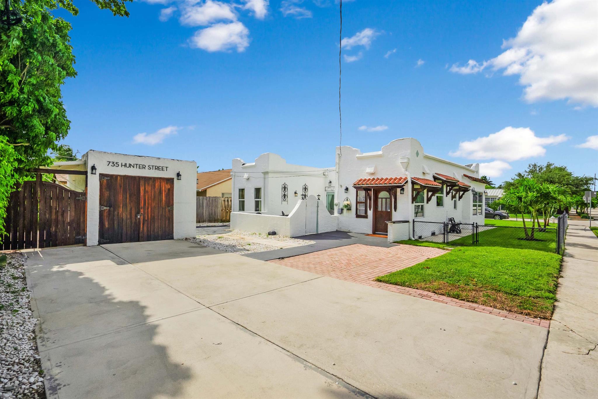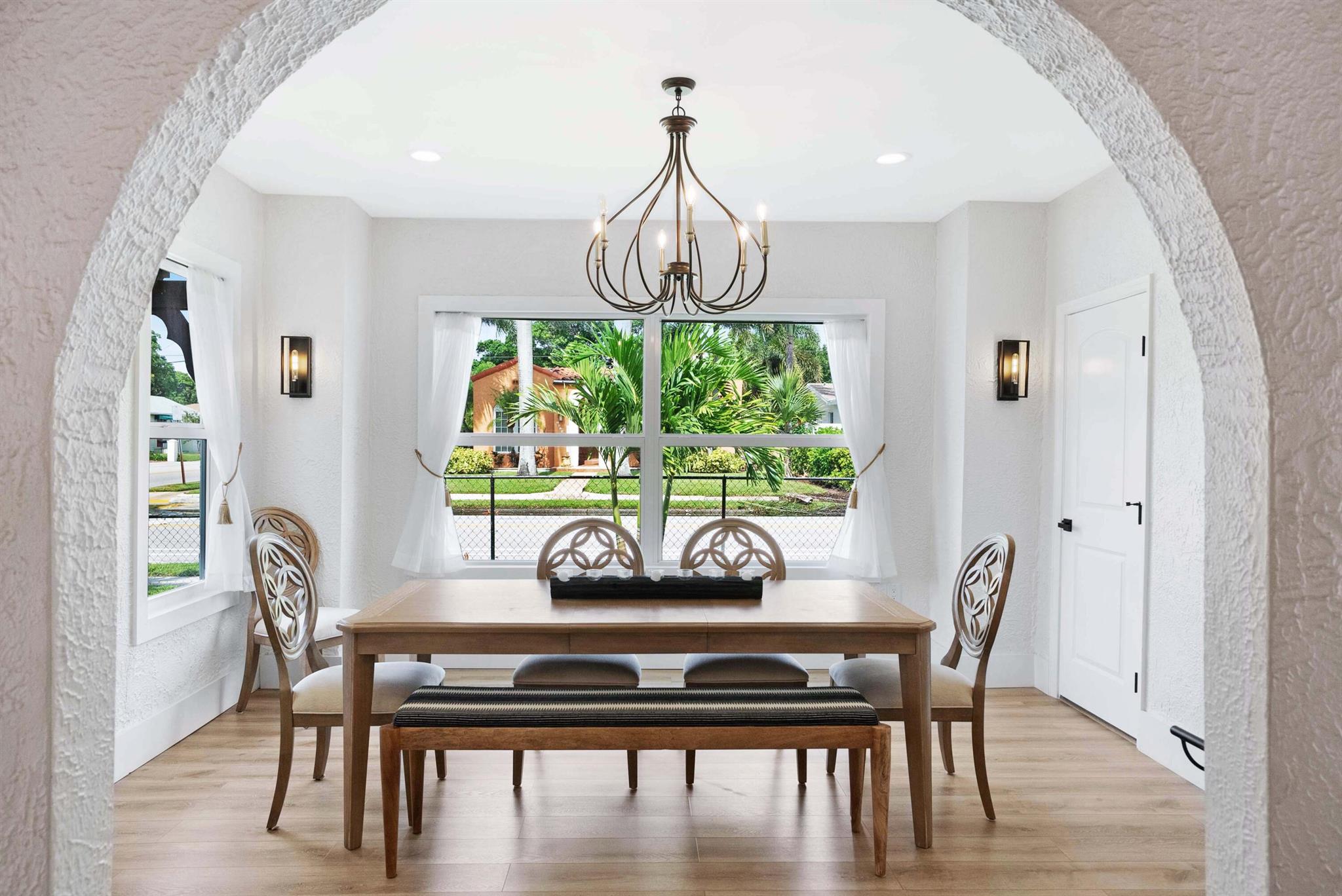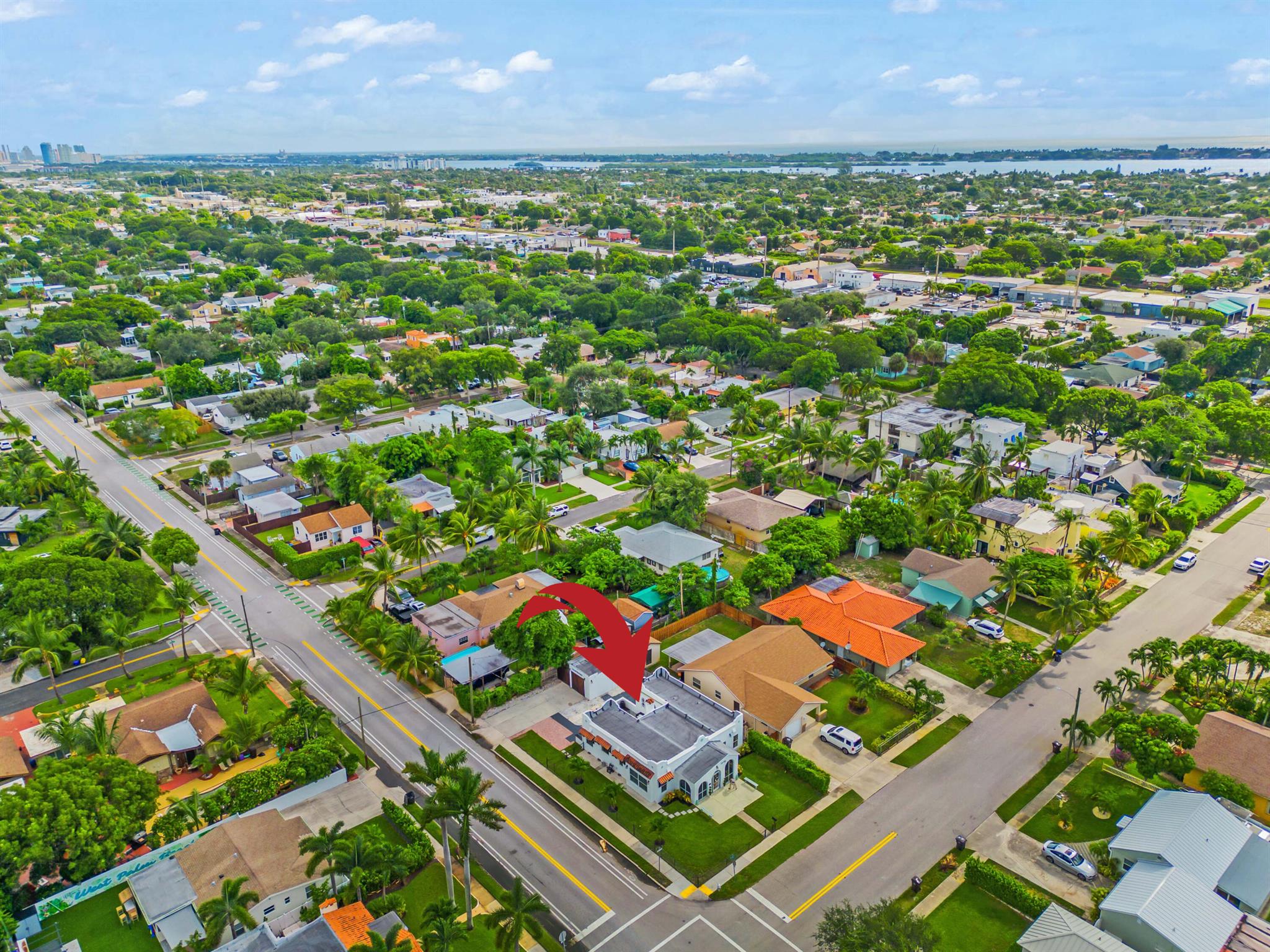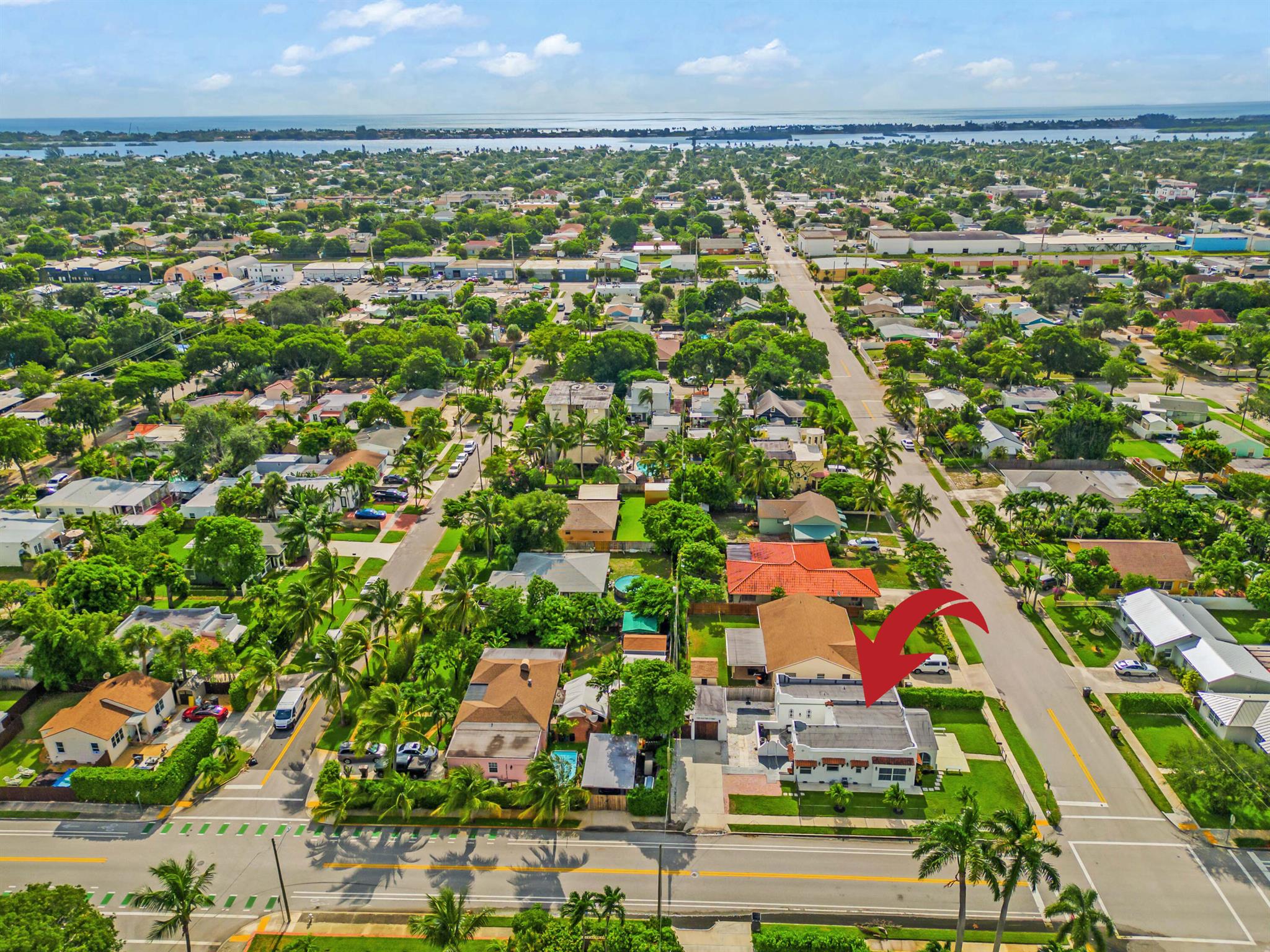 Step into this 1927 West Palm Beach treasure, meticulously renovated to blend historic charm with modern luxury. The home features new plumbing, electrical, A/C systems, and Hurricane Impact Windows and Doors. Situated on a spacious corner lot, it boasts a large courtyard and a garage with electricity, offering potential for a guest suite, creative studio, or home office. Located right off Antique Row in the coveted SoSo neighborhood, one of the hottest areas in West Palm Beach, this home is just minutes from The Park Golf Course, Palm Beach Island, the beach, downtown, and top dining and shopping. Inside, the elegant Pecky Cypress Ceiling complements the expansive living areas, while the kitchen and bathrooms shine with high-end finishes. This gem is waiting for you!