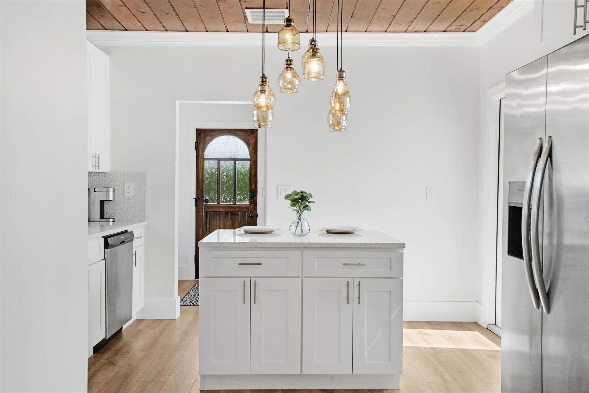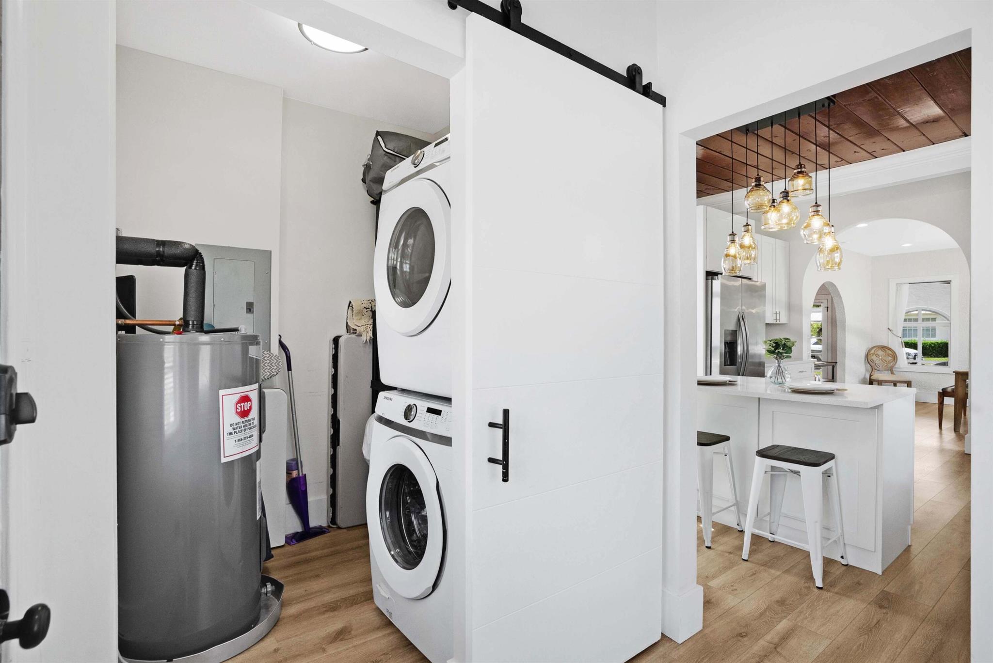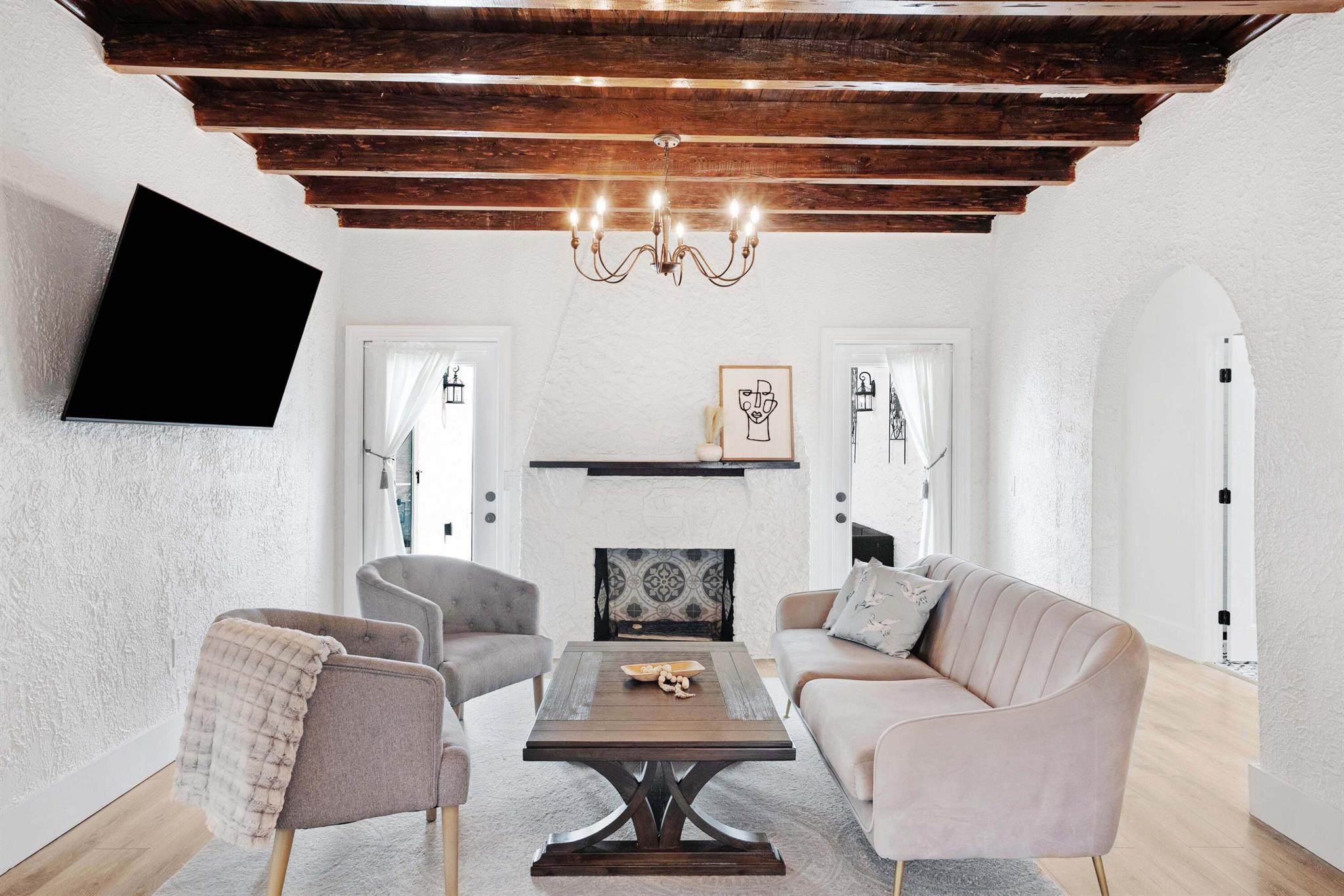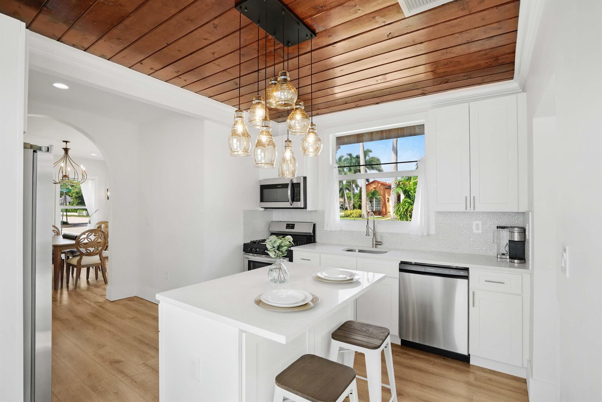Step into this 1927 West Palm Beach treasure, meticulously renovated to blend historic charm with modern luxury. The home features new plumbing, electrical, A/C systems, and Hurricane Impact Windows and Doors. Situated on a spacious corner lot, it boasts a large courtyard and a garage with electricity, offering potential for a guest suite, creative studio, or home office. Located right off Antique Row in the coveted SoSo neighborhood, one of the hottest areas in West Palm Beach, this home is just minutes from The Park Golf Course, Palm Beach Island, the beach, downtown, and top dining and shopping. Inside, the elegant Pecky Cypress Ceiling complements the expansive living areas, while the kitchen and bathrooms shine with high-end finishes. This gem is waiting for you!