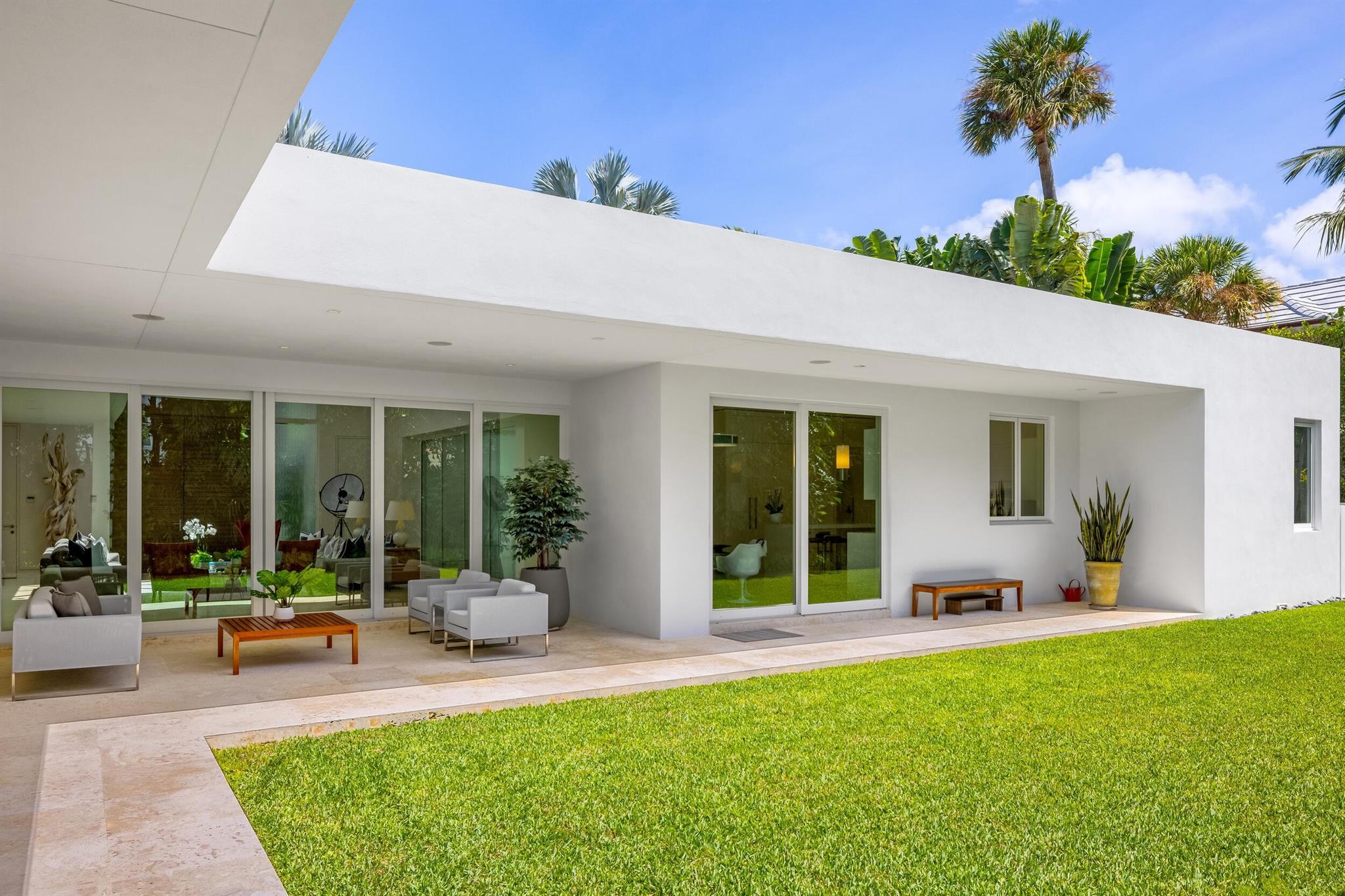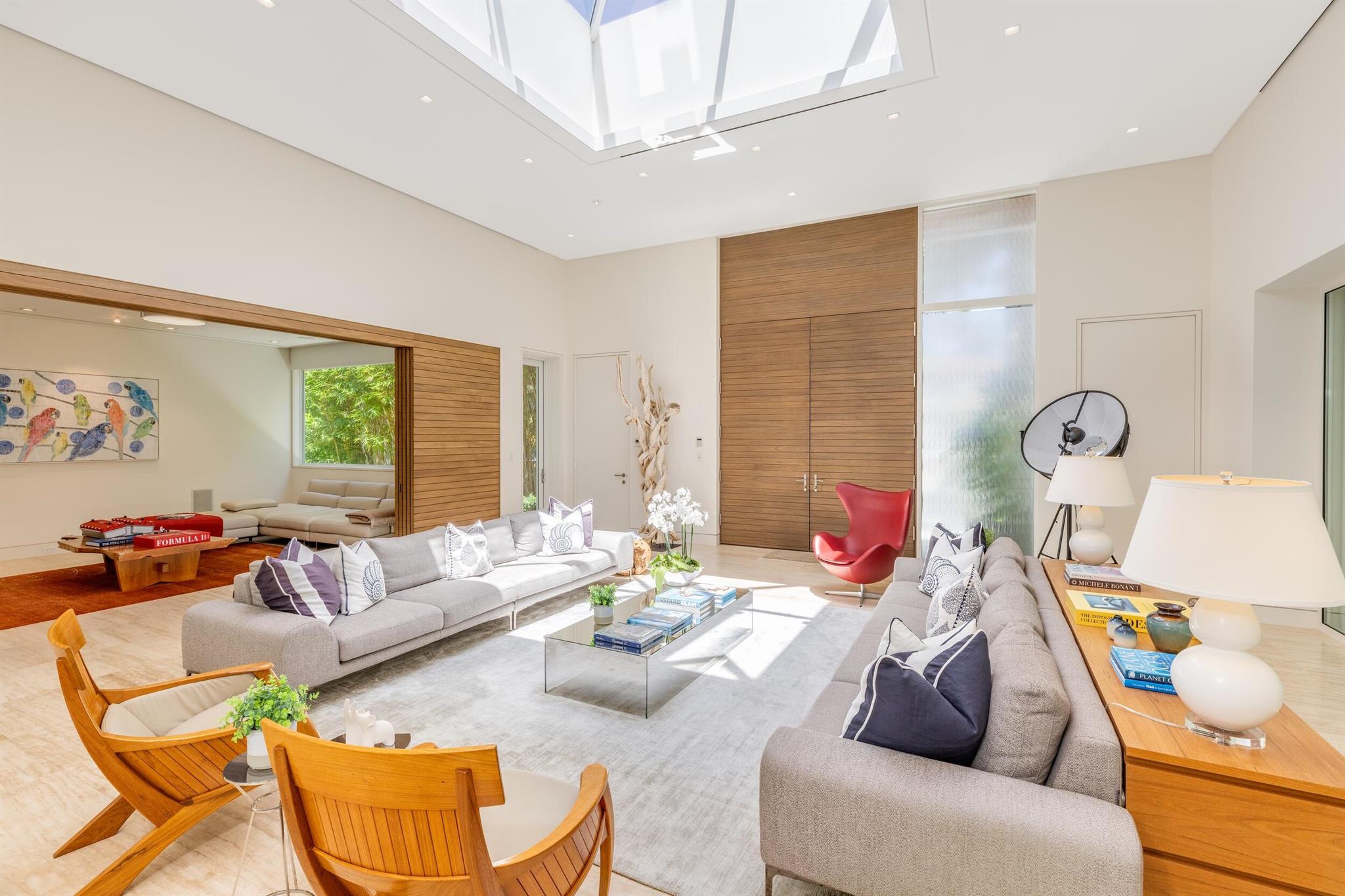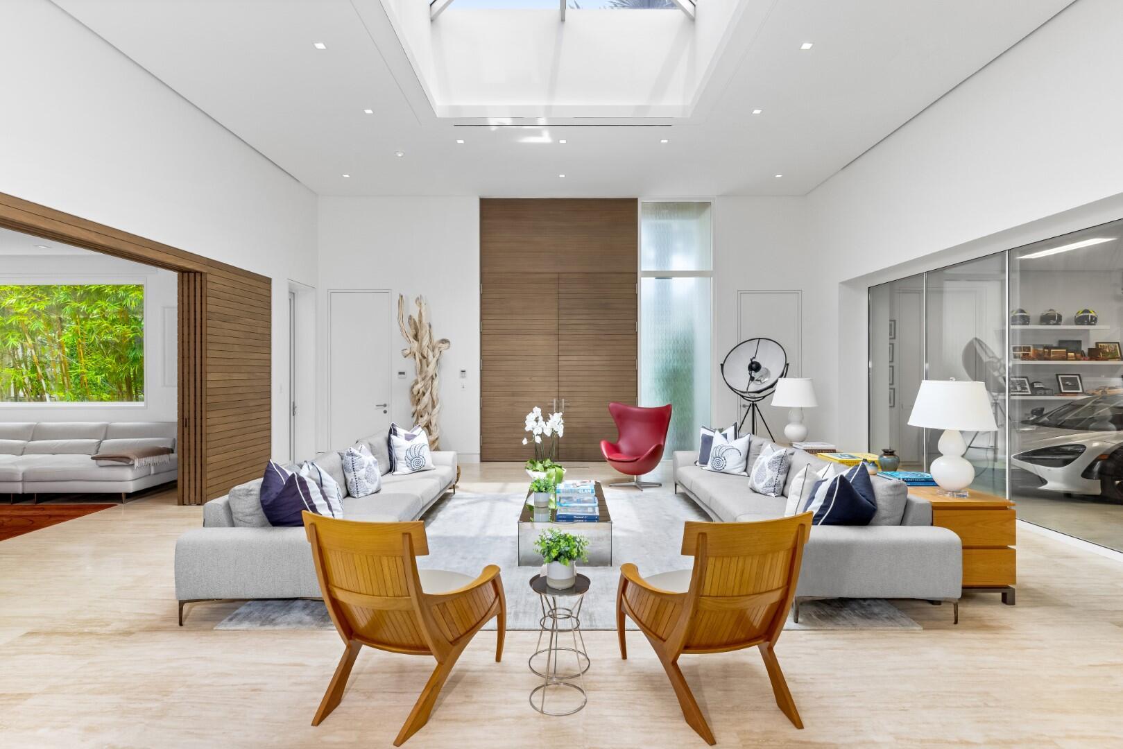 Stunning, custom contemporary home designed by award-winning architect Daniel Kahan of Smith and Moore Architecture. This home is an auto-enthusiasts dream property! This pristine 3 bedroom + den, 3.2 bathroom home is situated on a fantastic south side Sea Street lot in the center of town. Features fabulous 4-car garage and automobile showroom. Light filled formal living room with dramatic skylight overlooks the showroom with retractable blinds. Eat-in kitchen with expansive island, top-of-the-line appliances, walk-in pantry, and breakfast room. Beautiful primary suite with walk-in closet and primary bath with dual sinks and oversized shower. Expansive covered loggia and meticulously maintained grounds. No detail has been overlooked with pristine finishes and gorgeous marble and hardwood